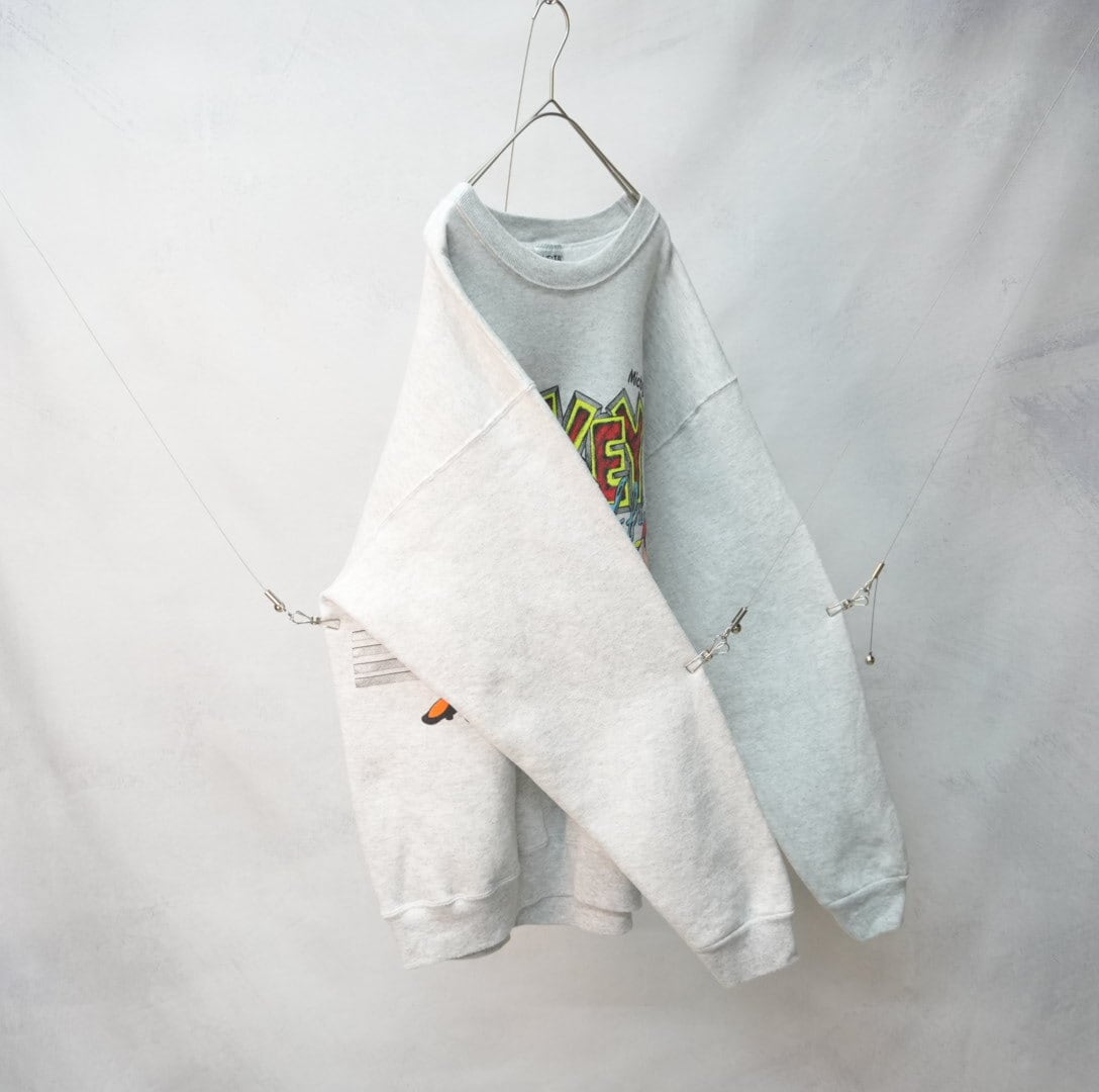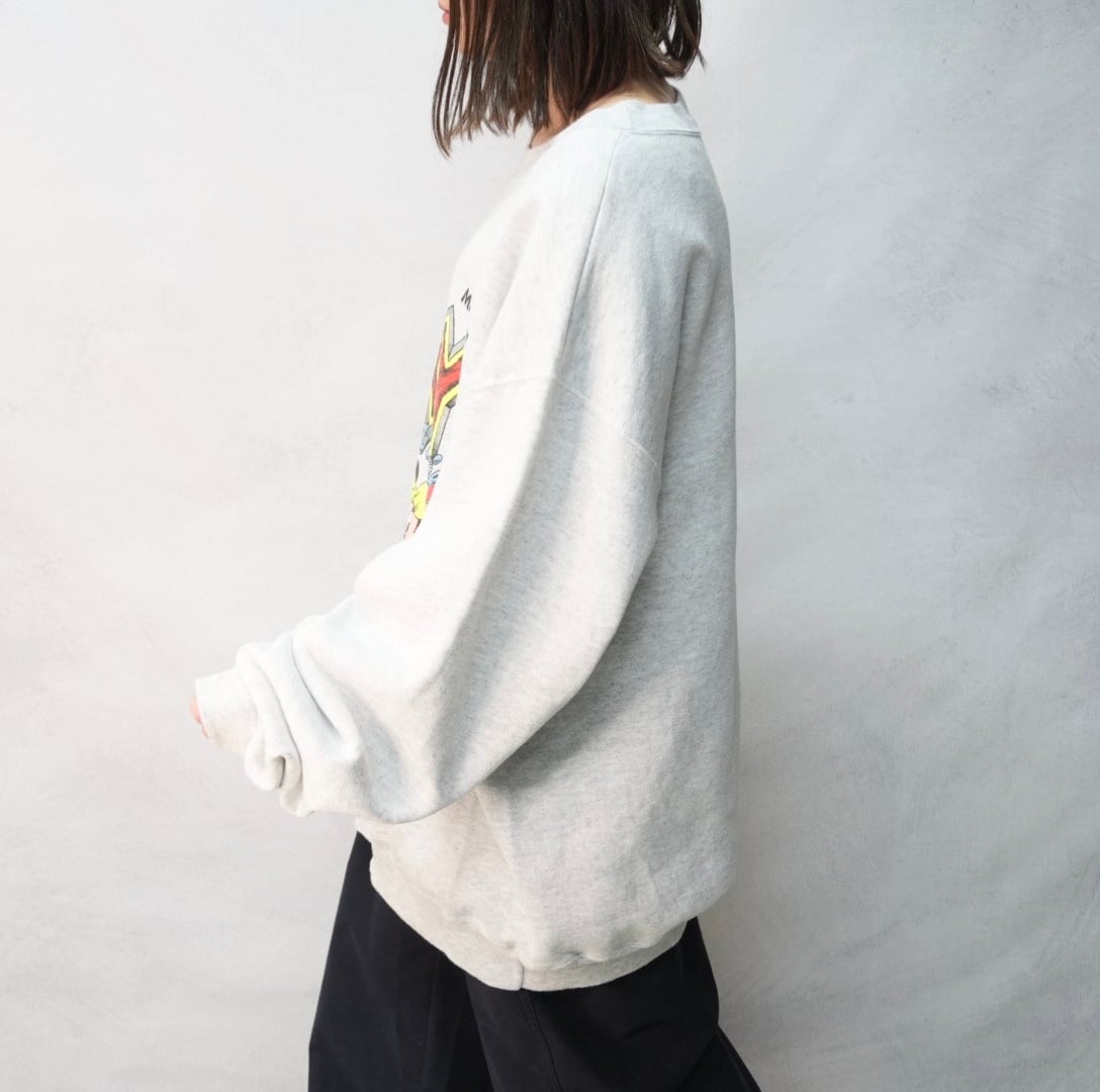 " '90s ONEITA' over silhouette gray color disney character design sweat pullover"
