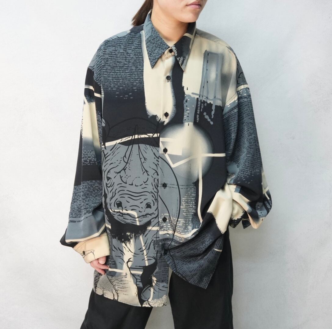 " 'KOMAN sport' all-over pattern rhino design long shirt"