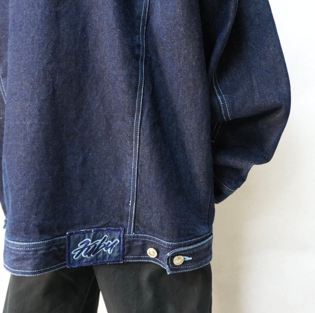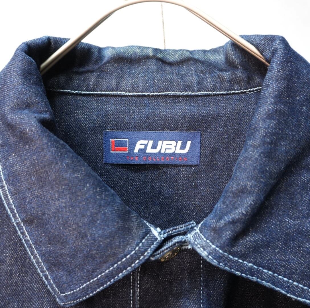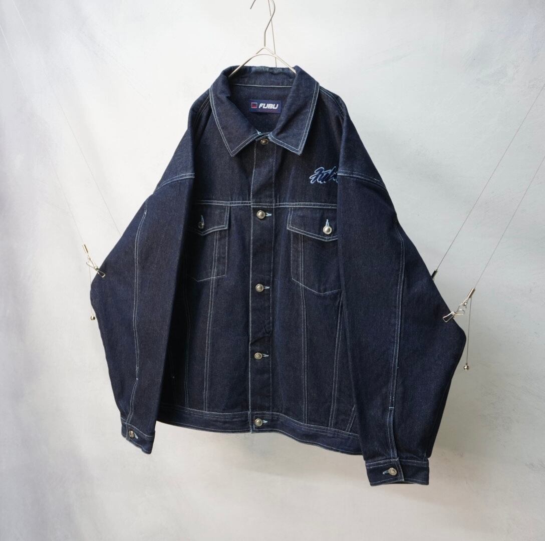 " 'FUBU' over silhouette indigo blue color denim jacket"
