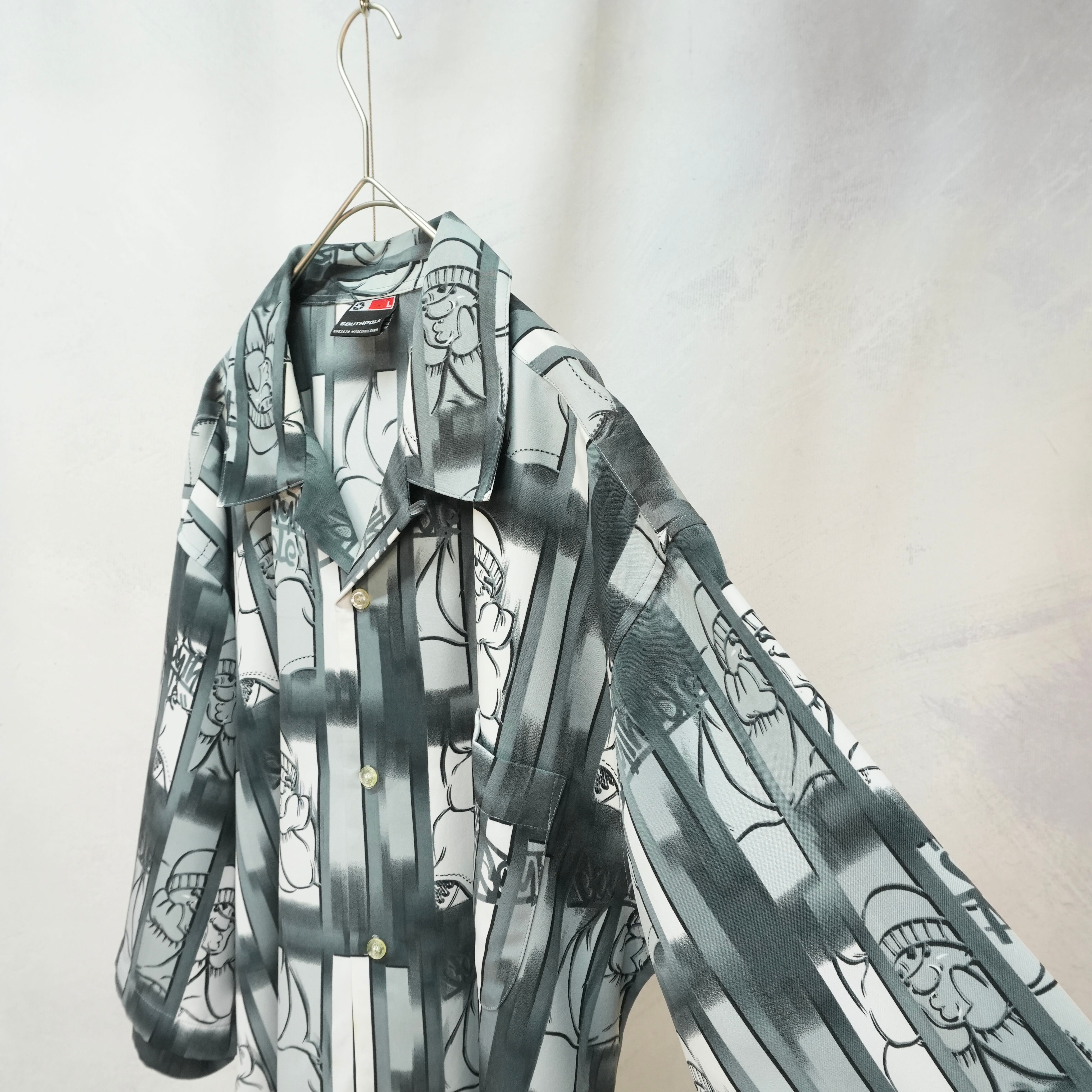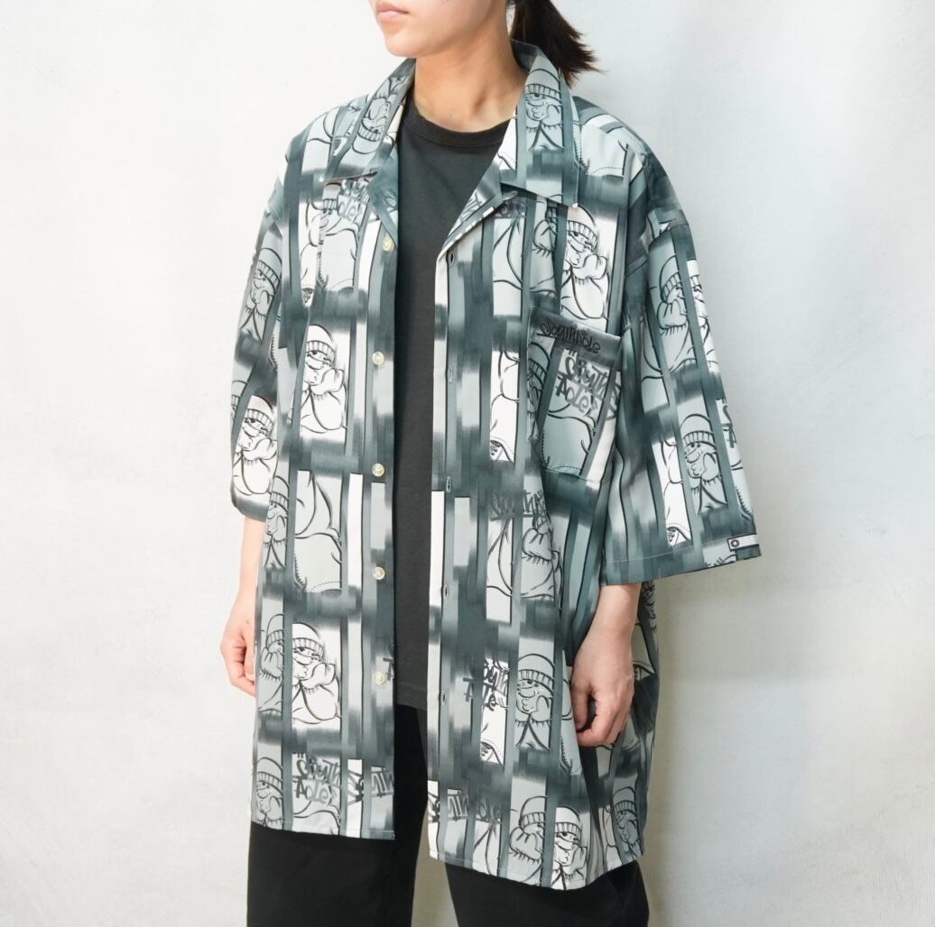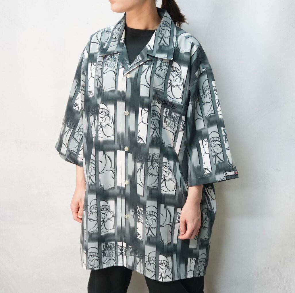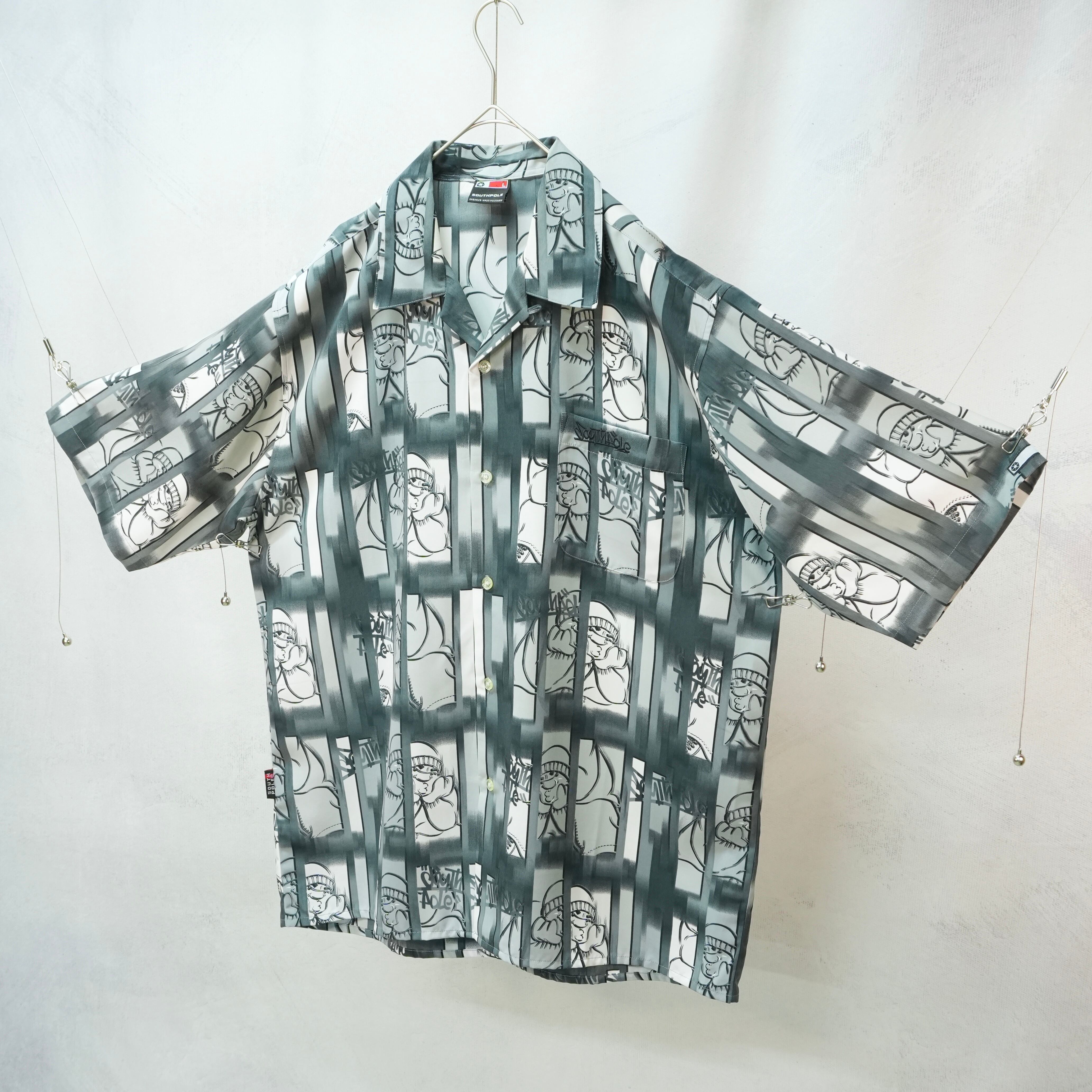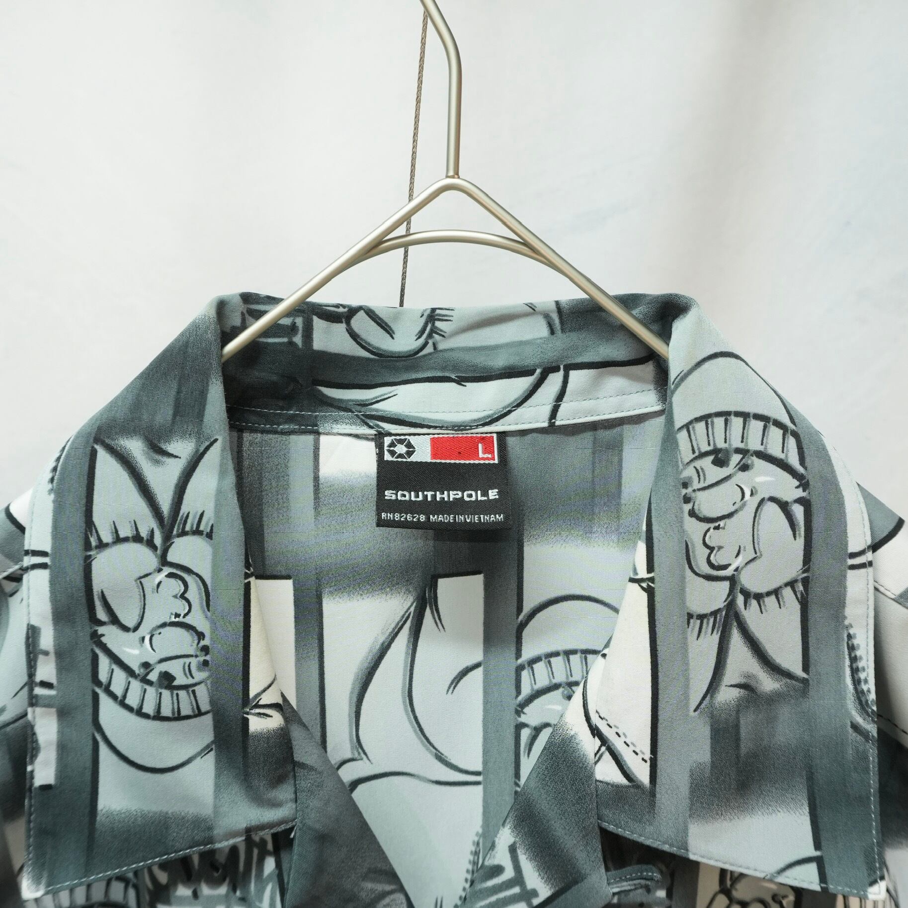 独特のグラフィックが目を引く、SOUTHPOLEのオープンカラーシャツ.