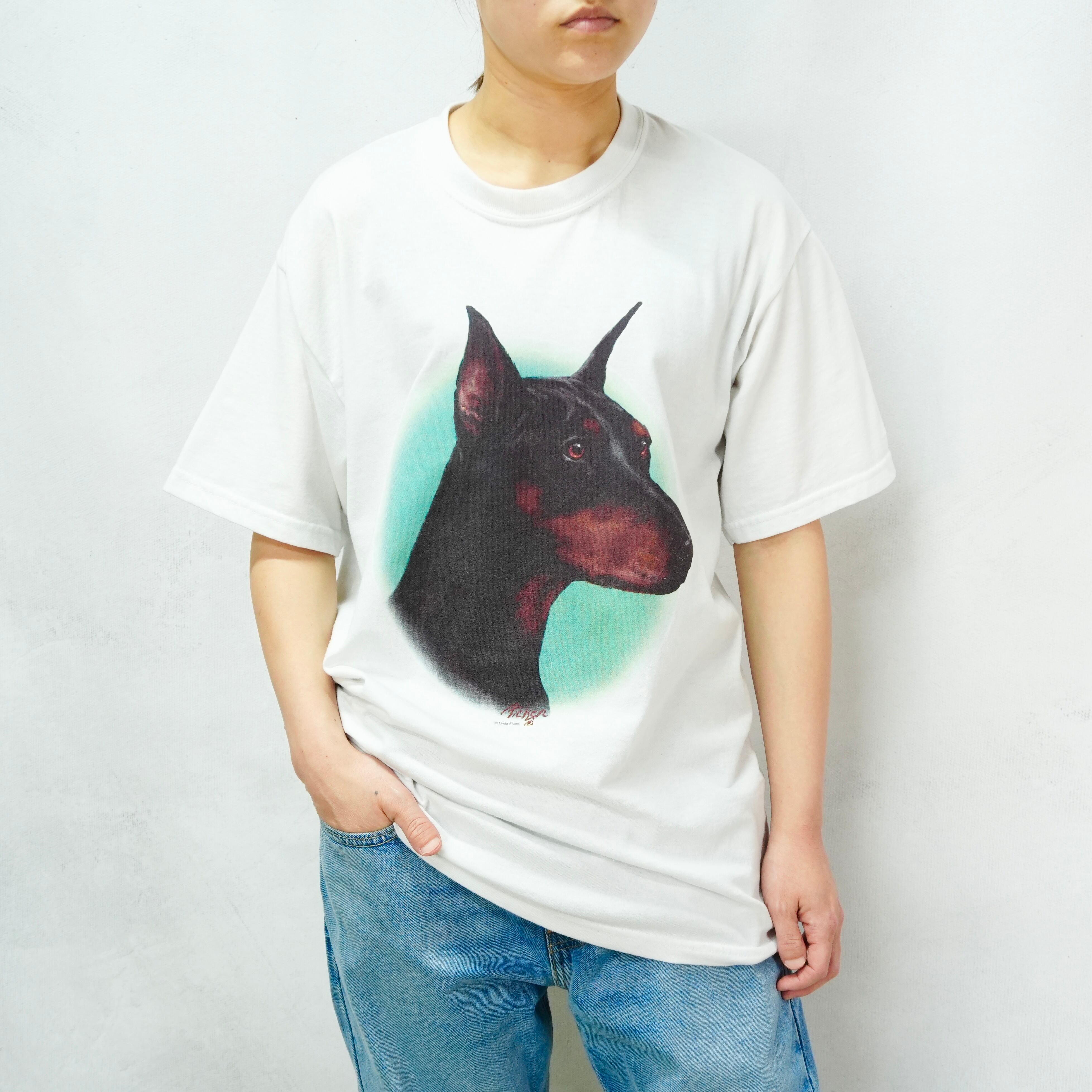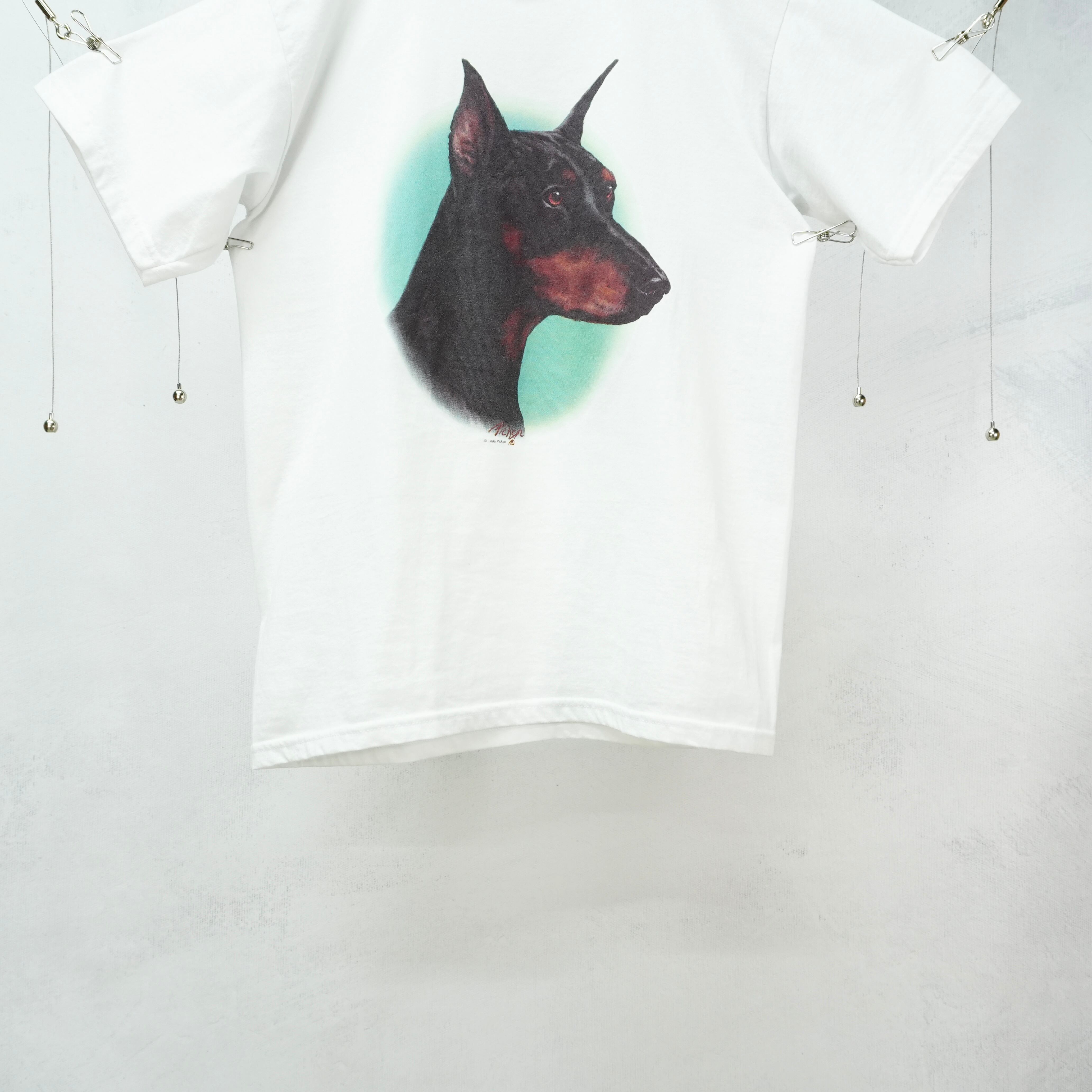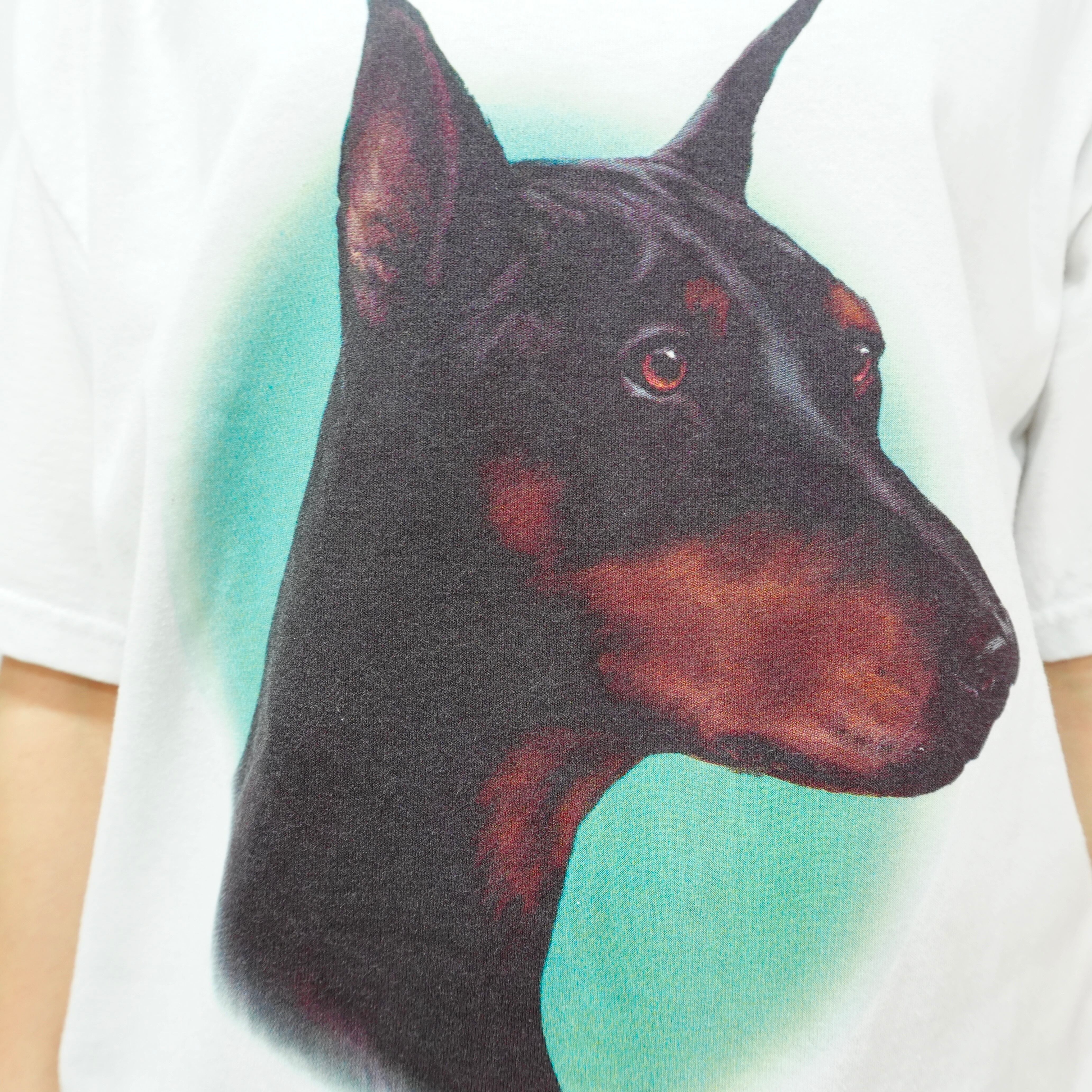 潔いホワイトボディに、堂々と描かれたドーベルマンの横顔.