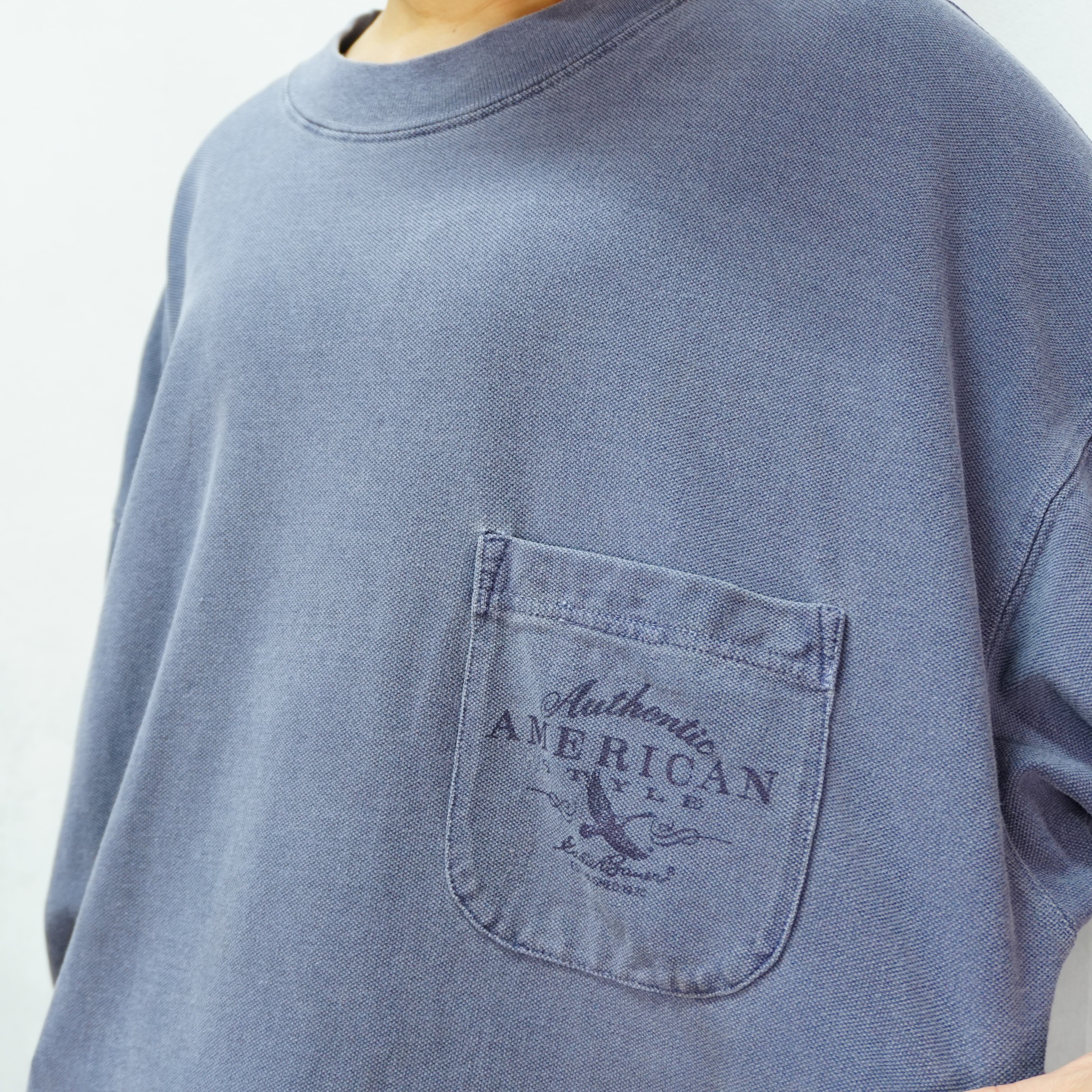 " 90s ' Eddie bauer ' over silhouette indigo blue color pocket Tee"