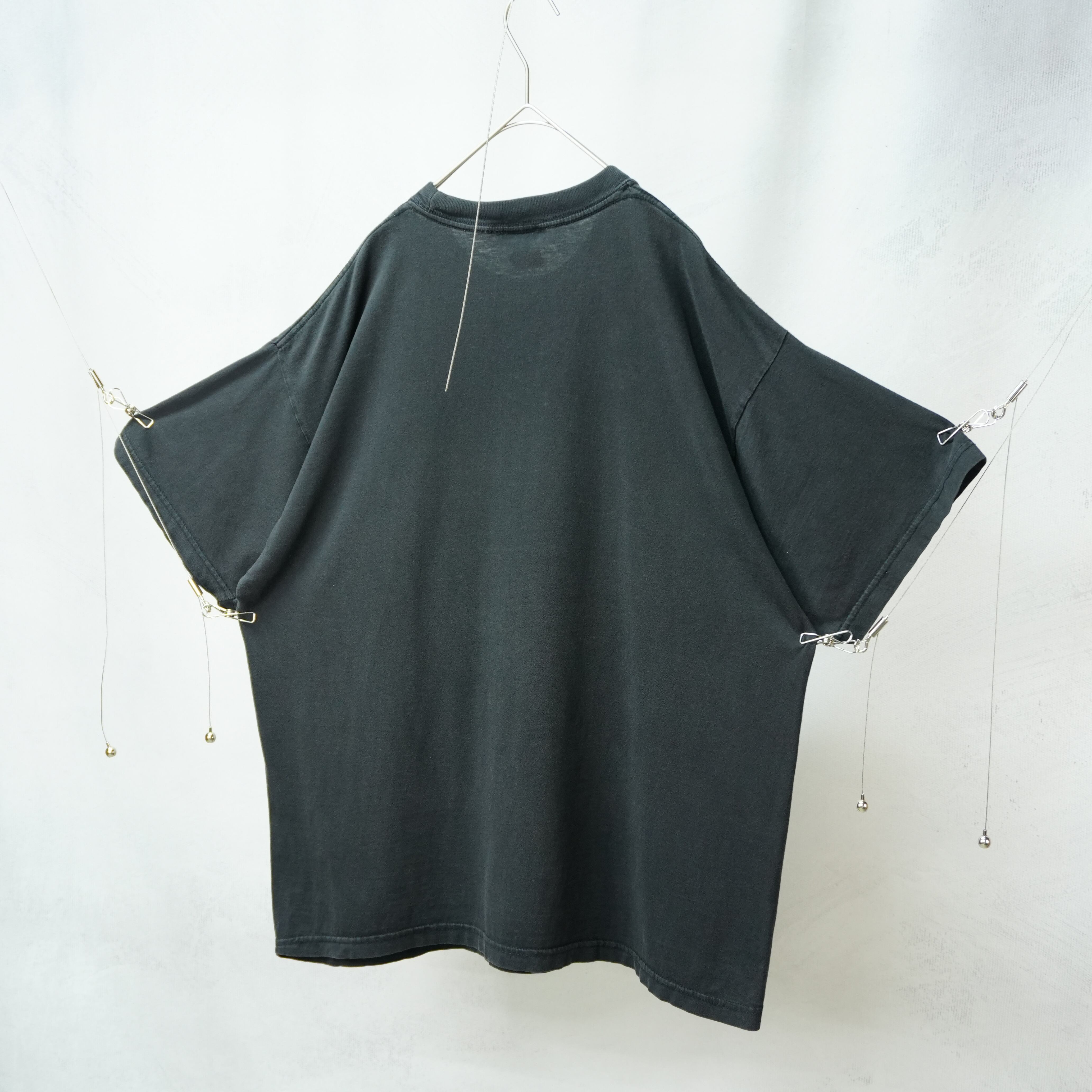 フロントのビビッドなプリントが映えつつも、全体は古着らしい味わいのあるトーン.