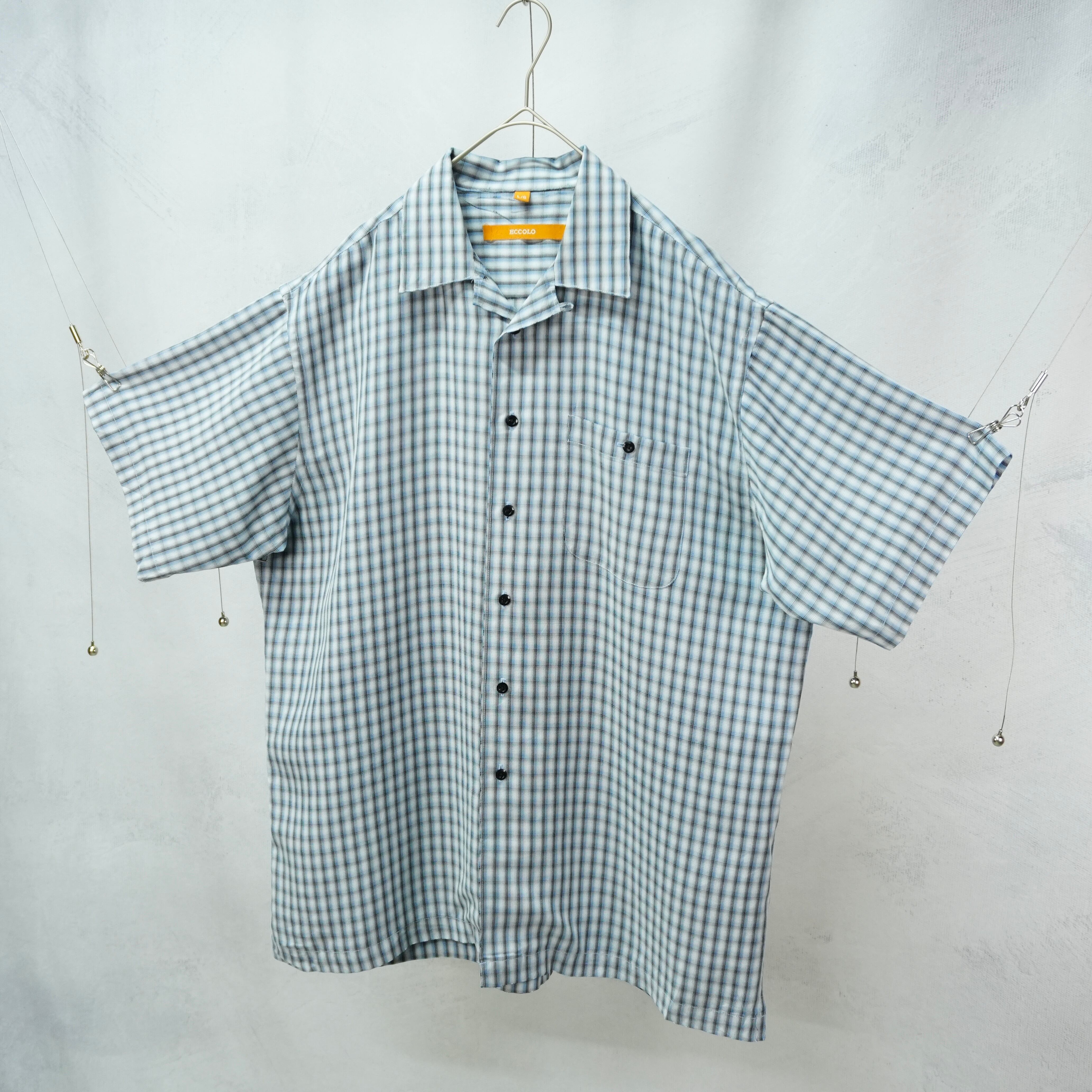 " 'ECCOLO' block check design open-collar shirt "