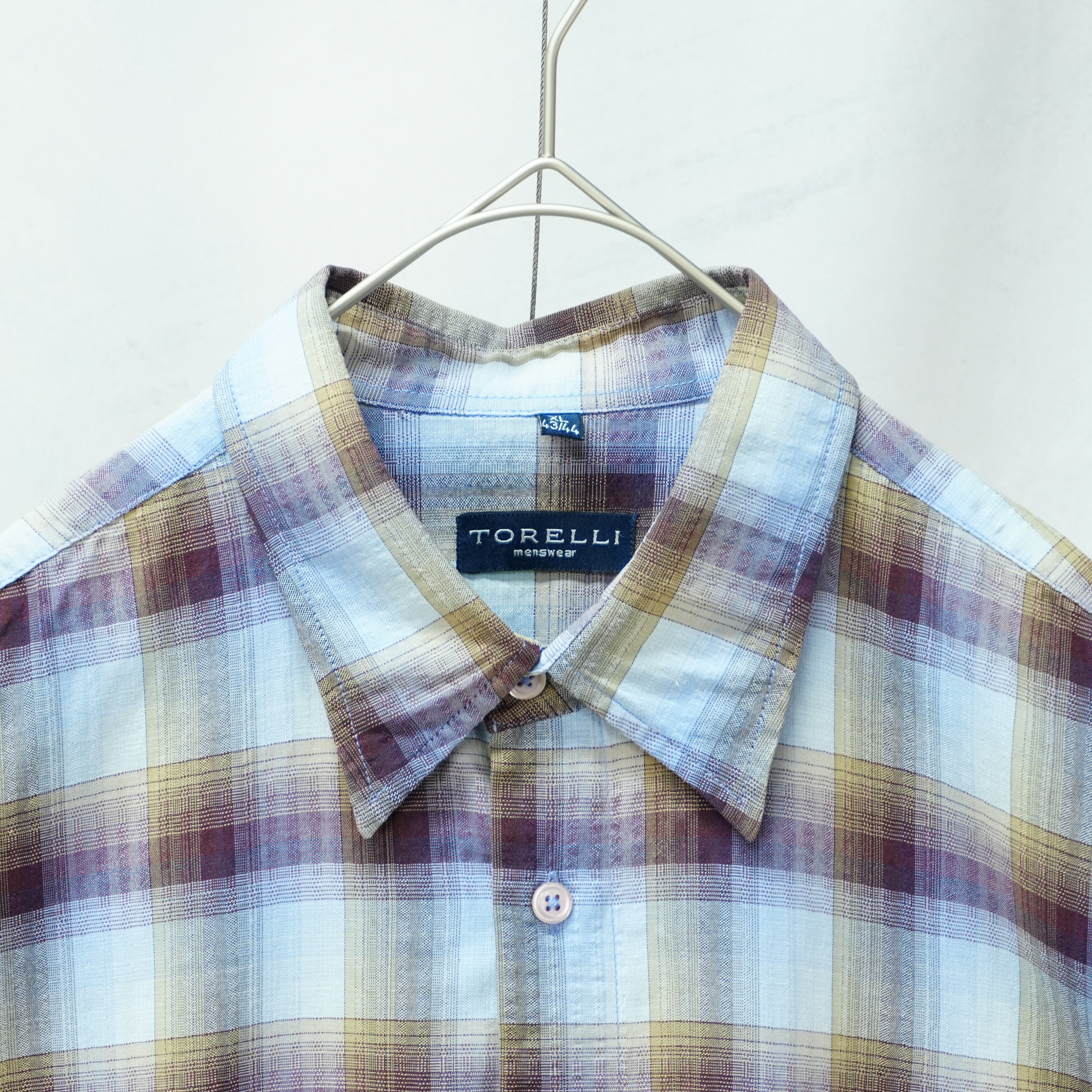 " 'TORELLI' over silhouette light color ombre check design shirt"
