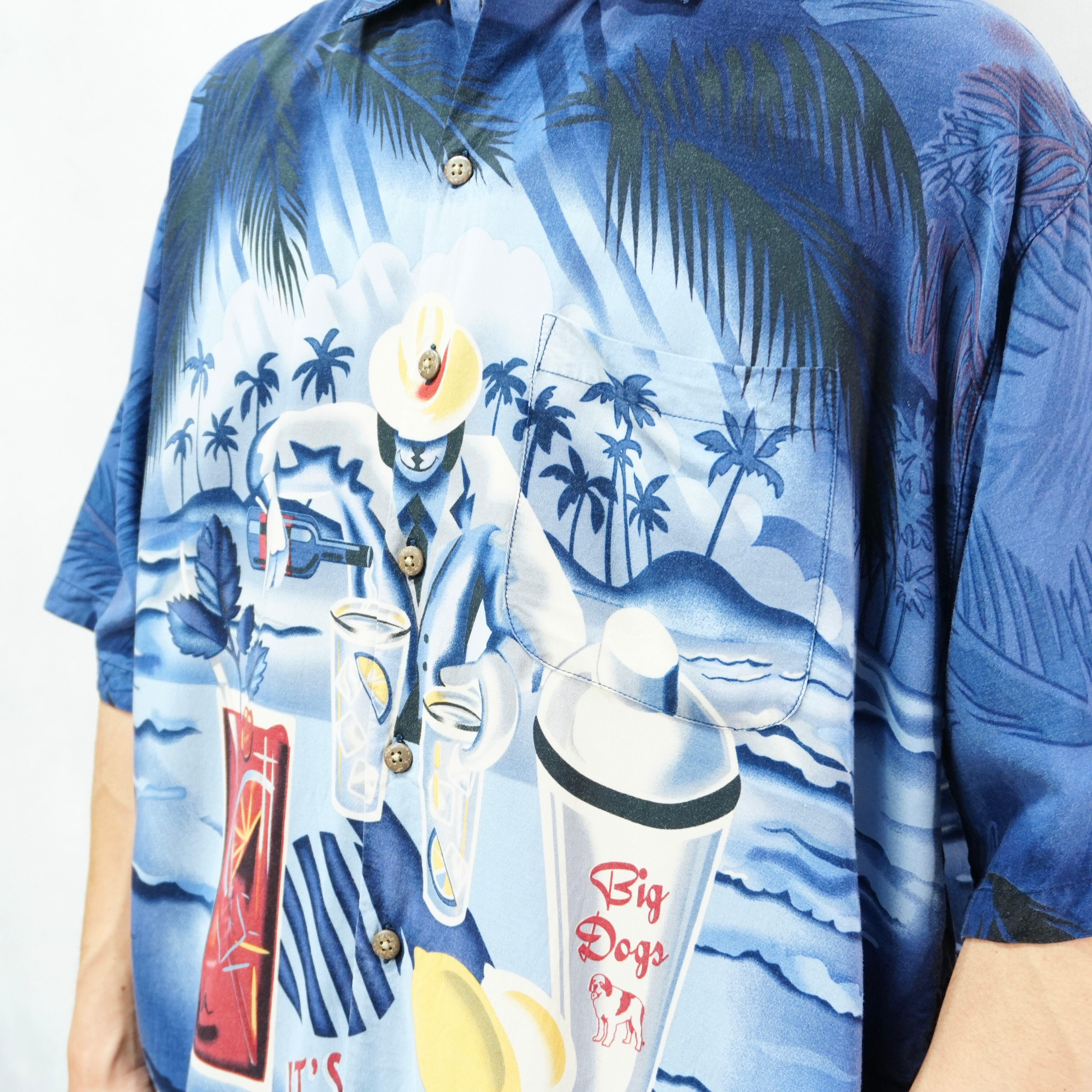 " 90s 'Big Dogs' dog design rayon dog shirt "