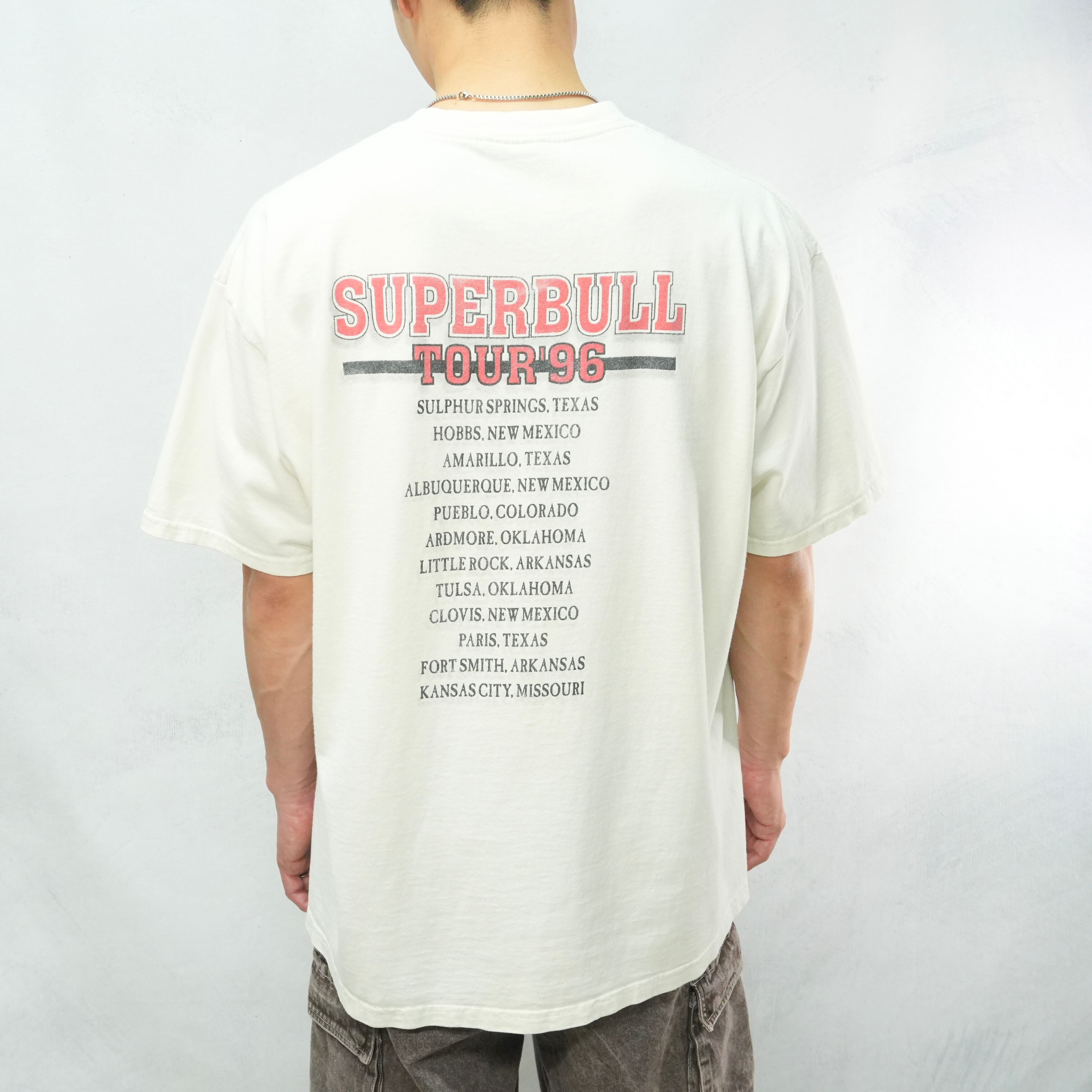 " 90s 'Lee' over silhouette ivory color 'SUPER BULL' tour Tee "