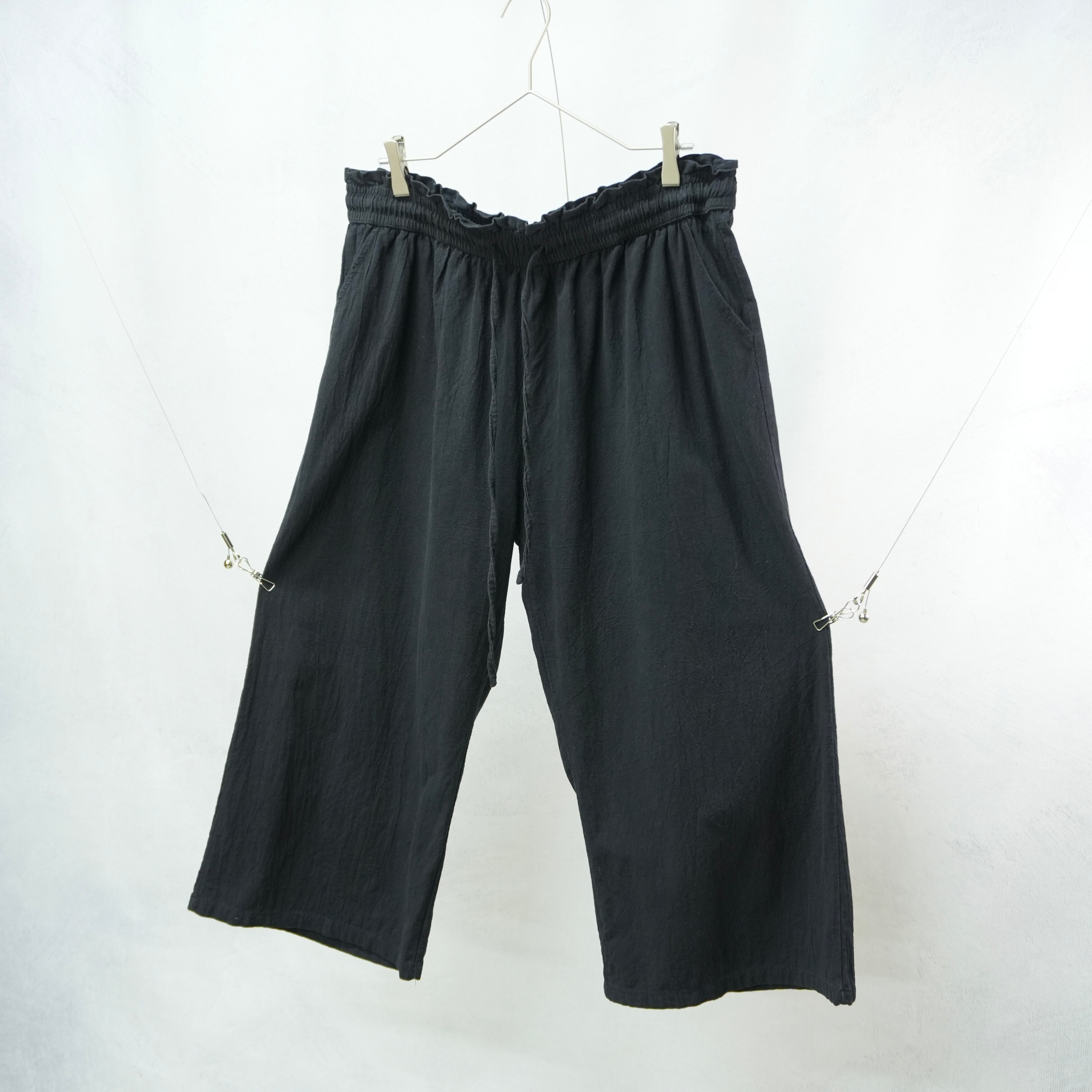 " wide loose silhouette black color linen slacks pants "