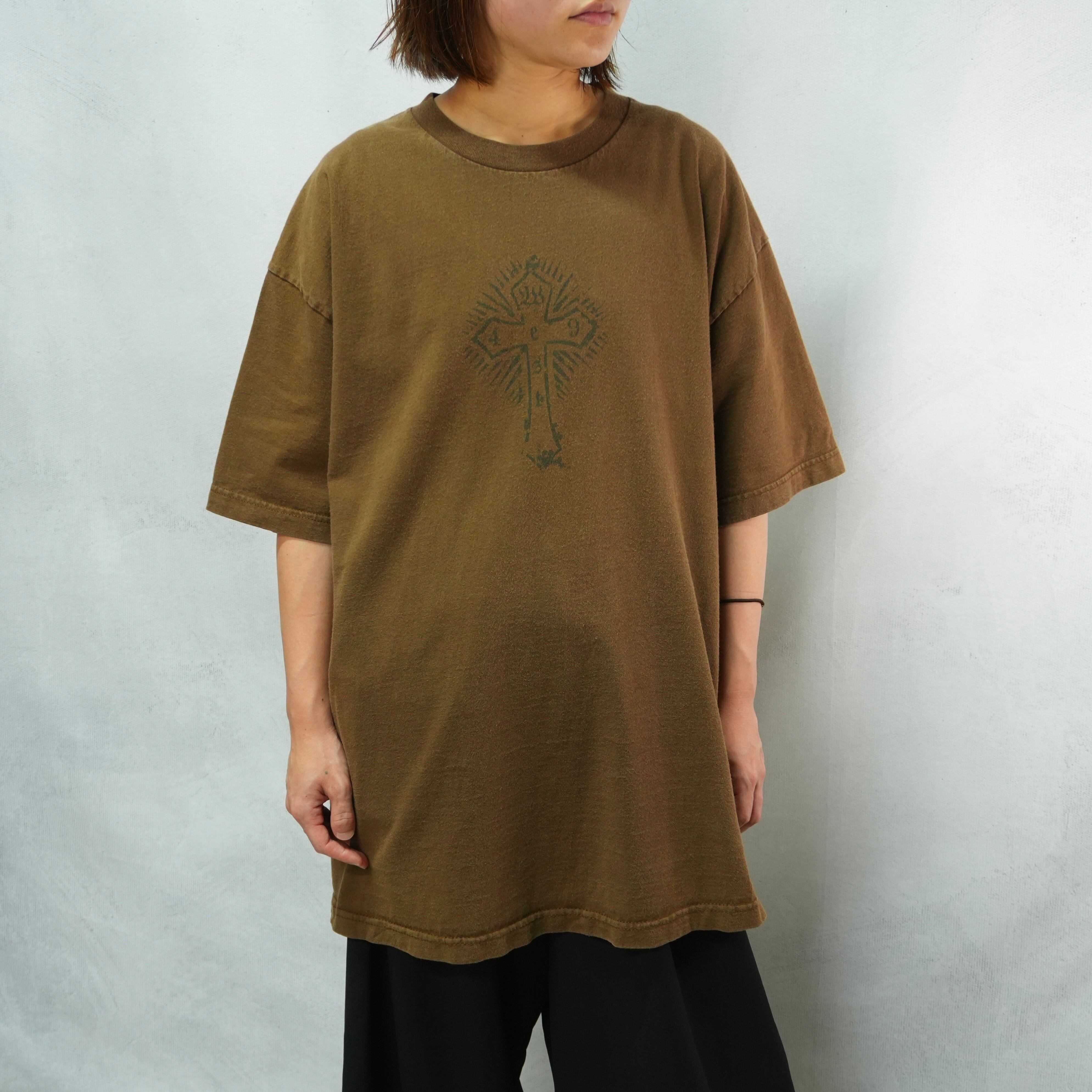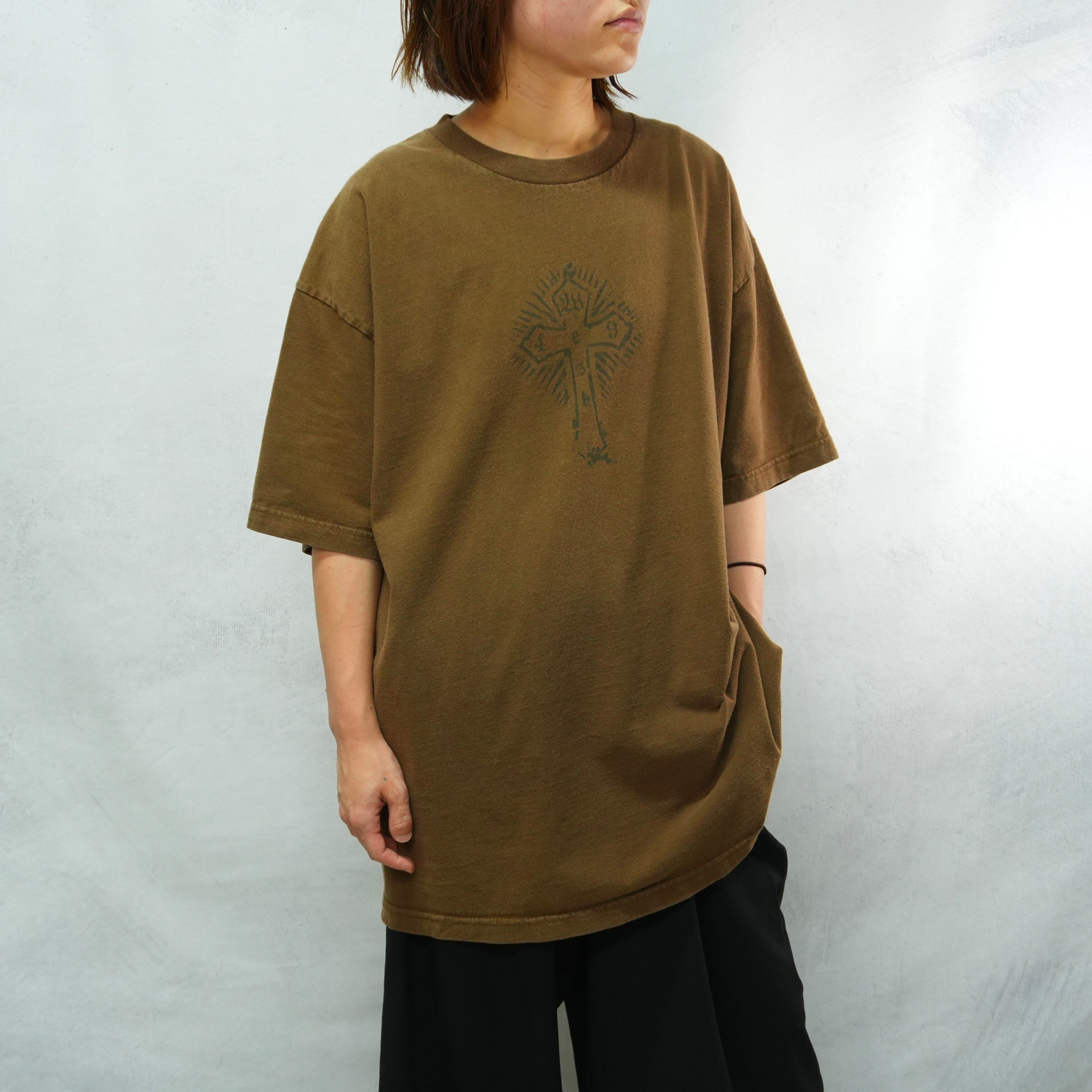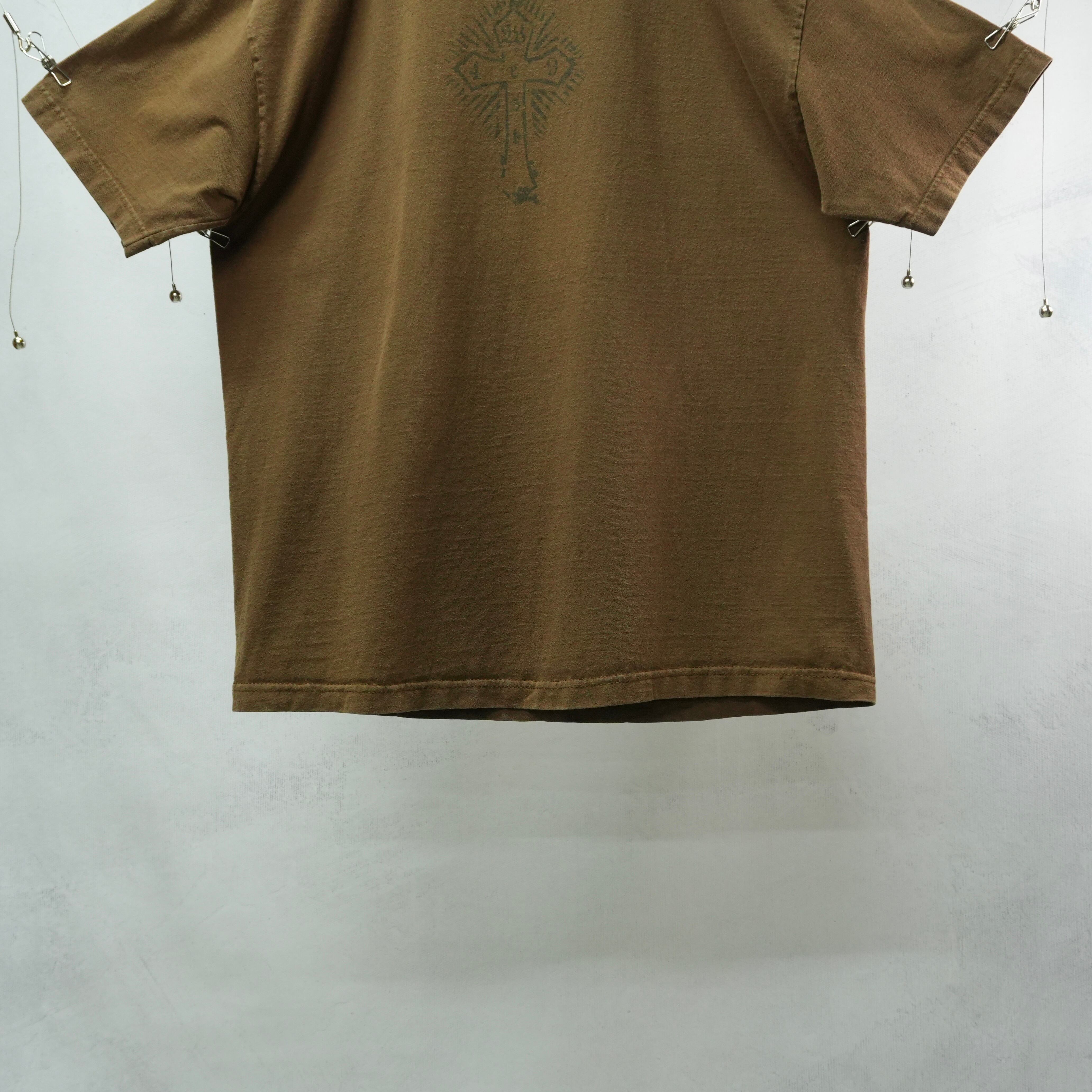 ほどよく色褪せたダークブラウンボディに、フロントのセンターへ控えめに刻まれたクロスモチーフ.