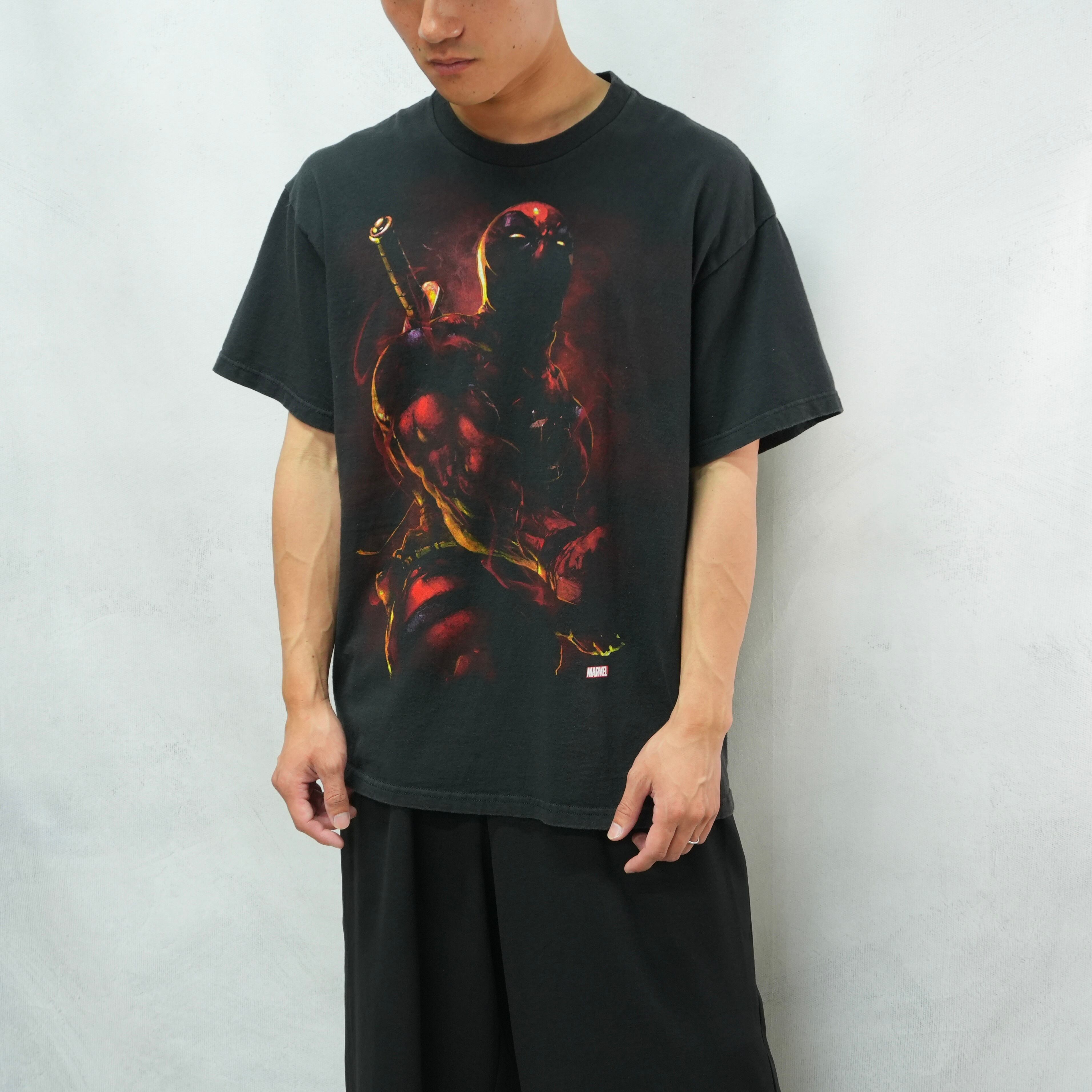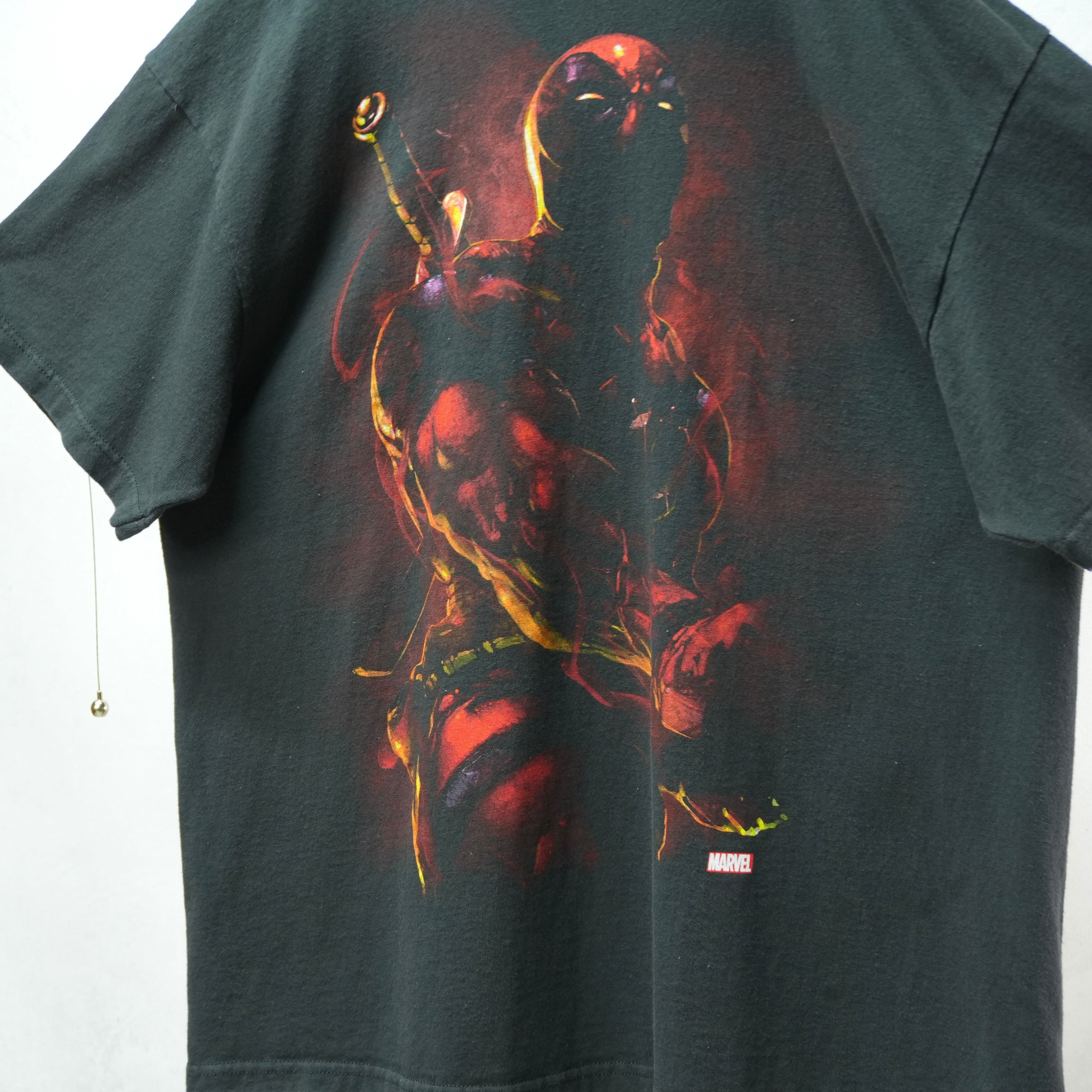 " 'MARVEL' over silhouette black color 'Dead Pool' design movie Tee "