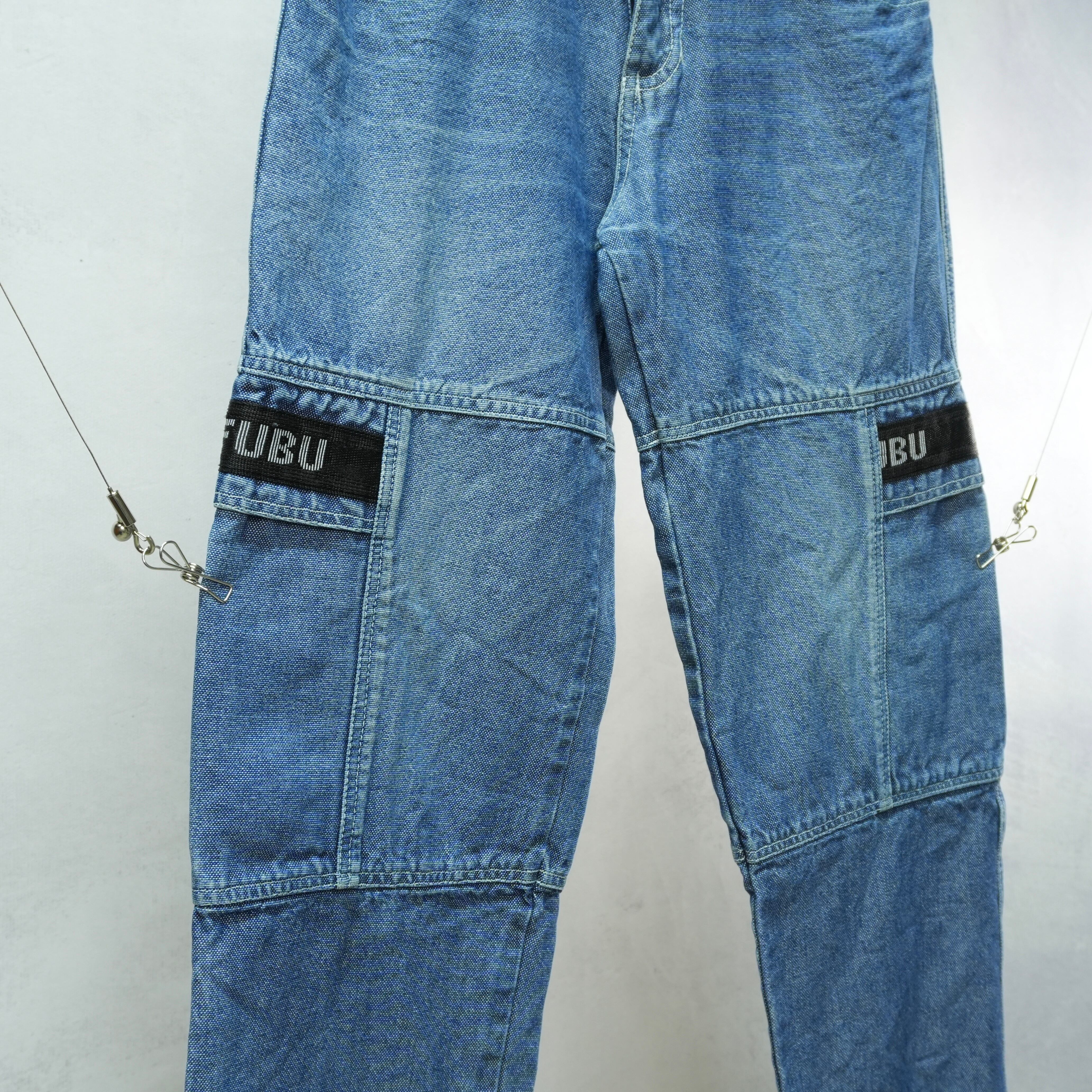 FUBU特有の刺繍ロゴやサイドにポケットというおしゃれなカーゴデニム.