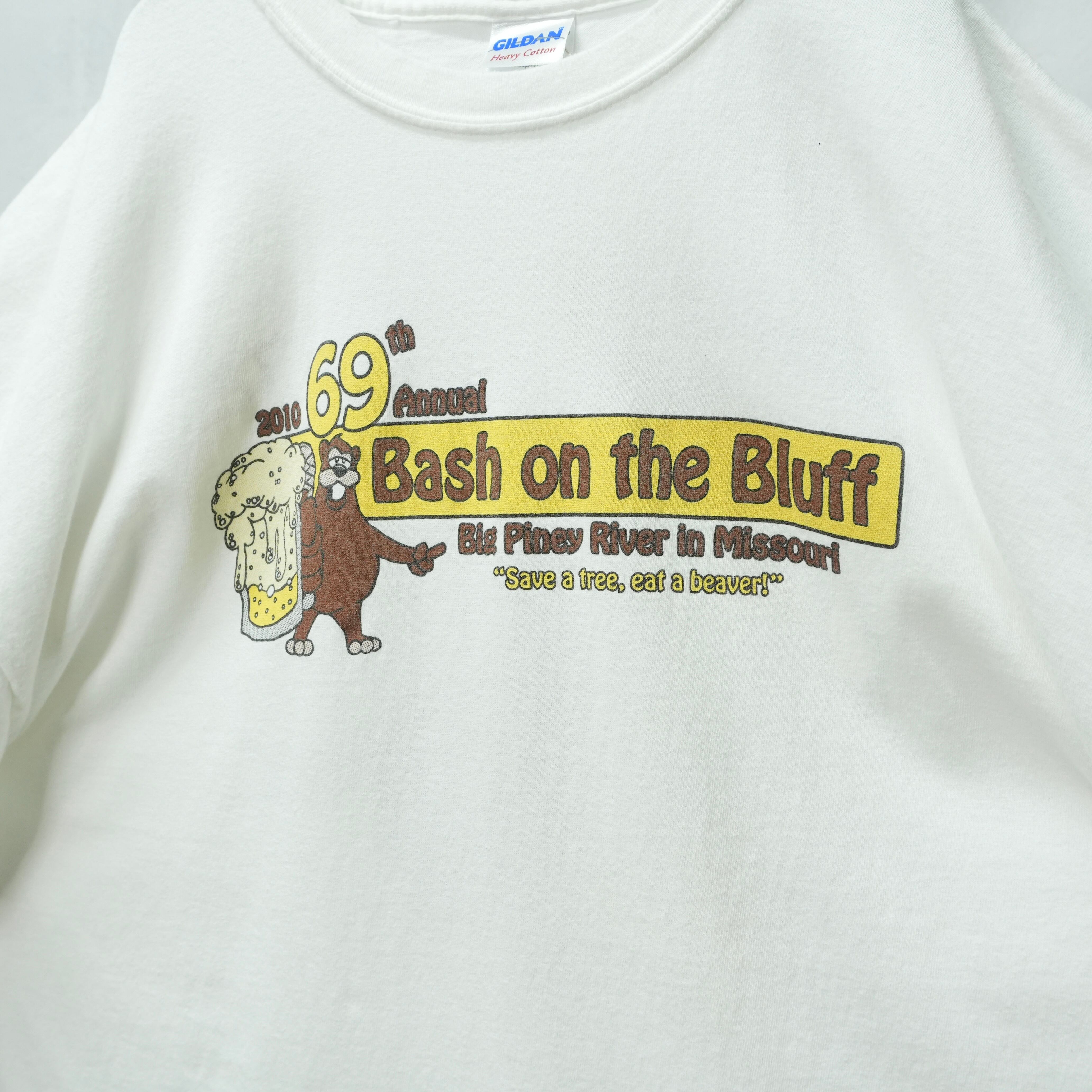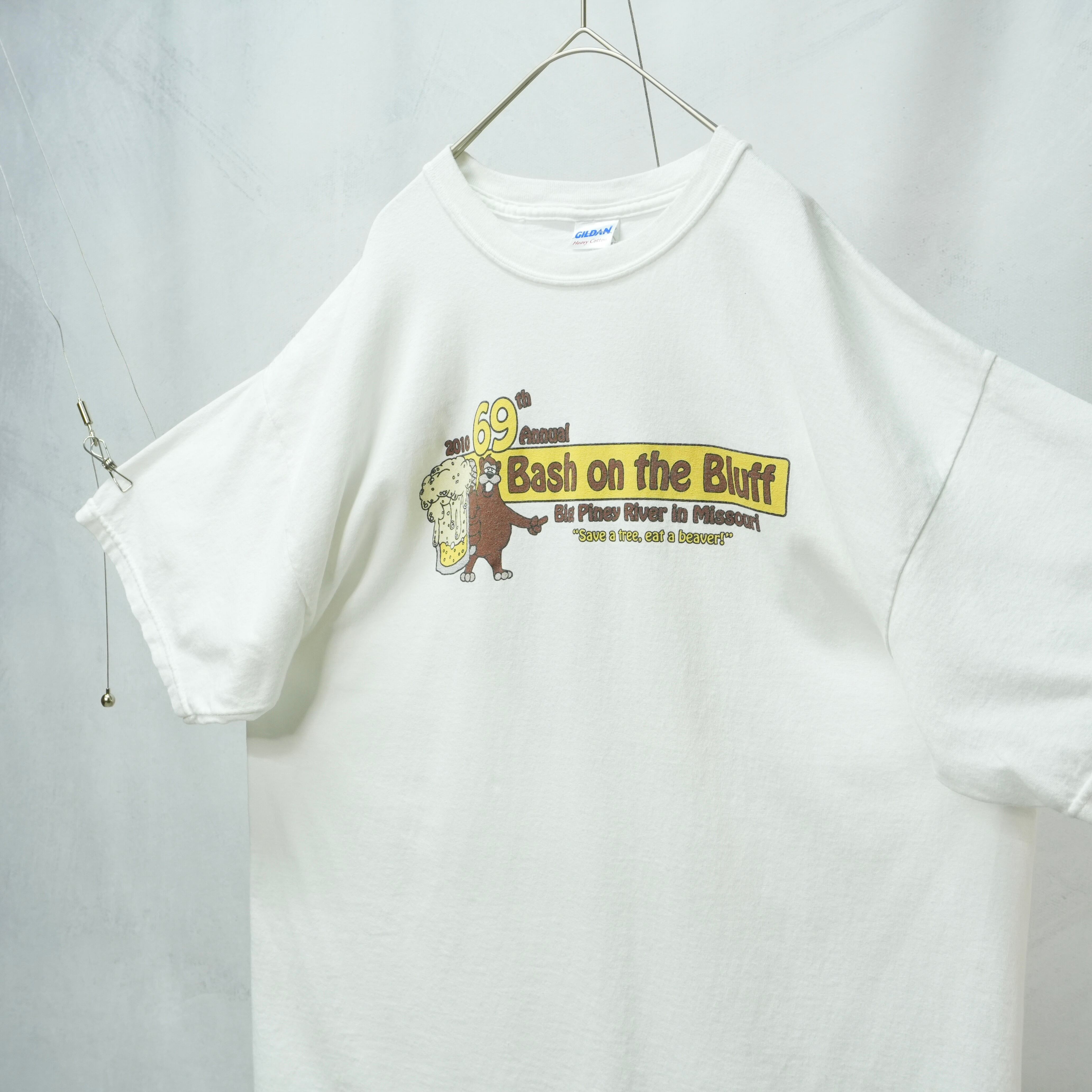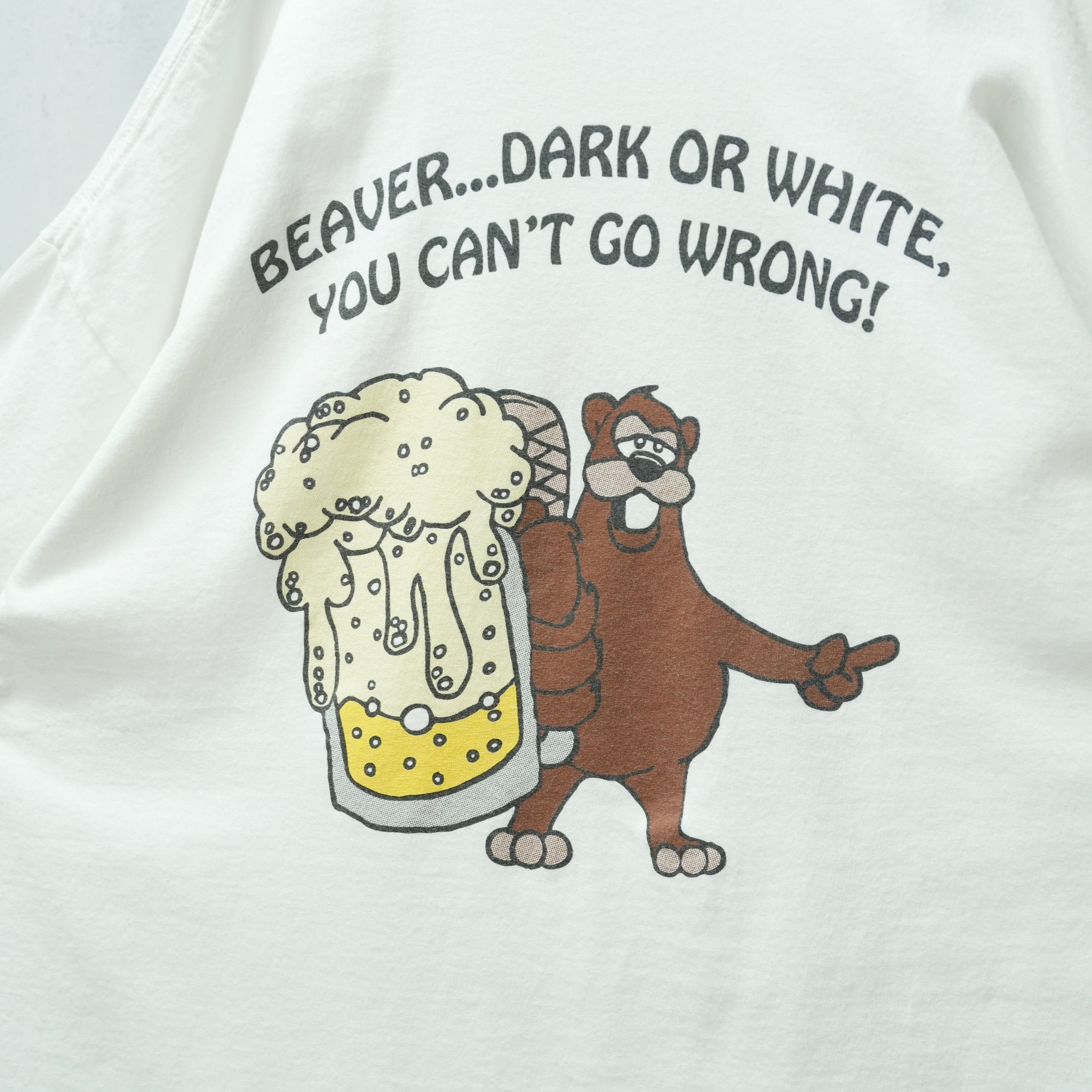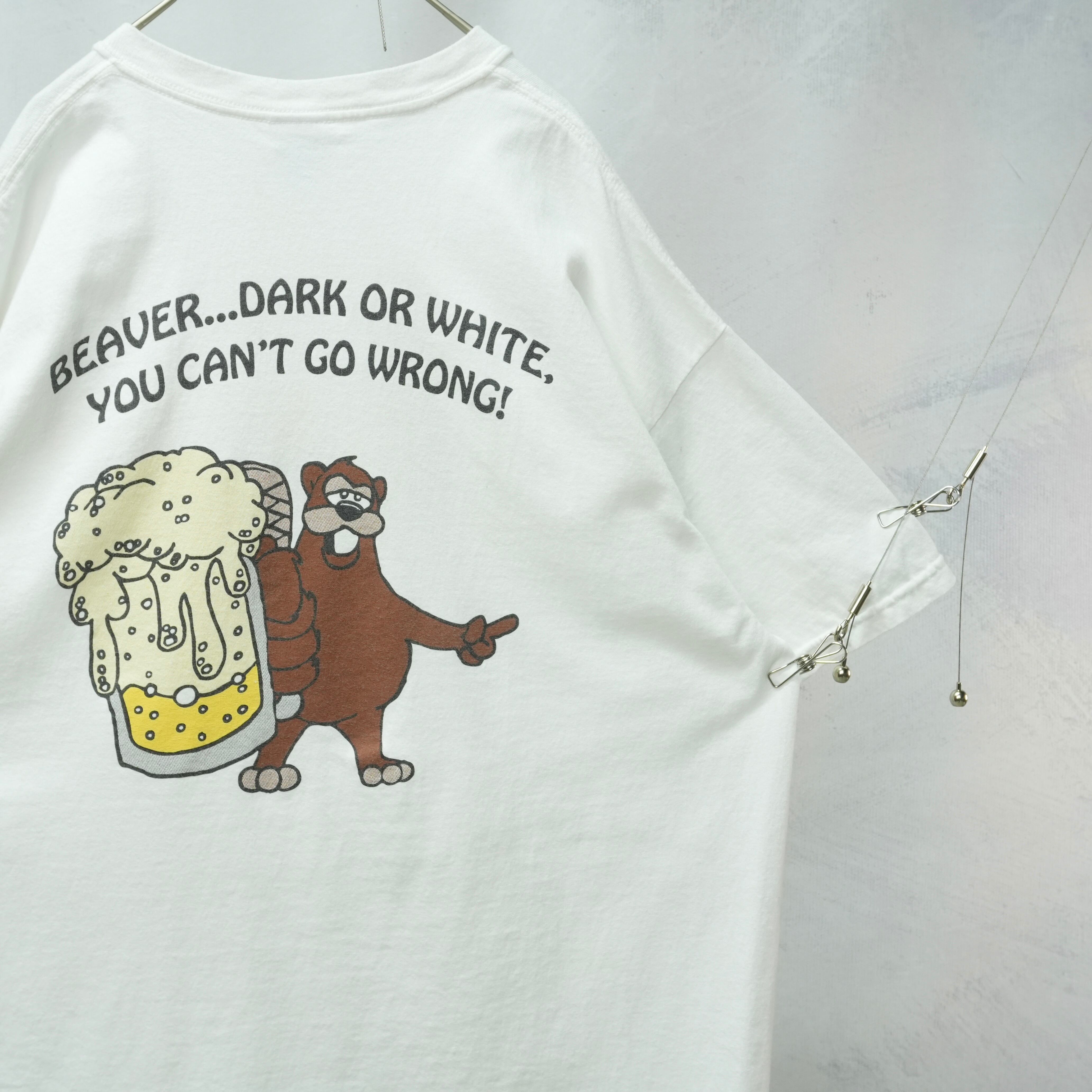 " 'GILDAN' over silhouette white color 'Beer × Beaver' design Humour Tee "