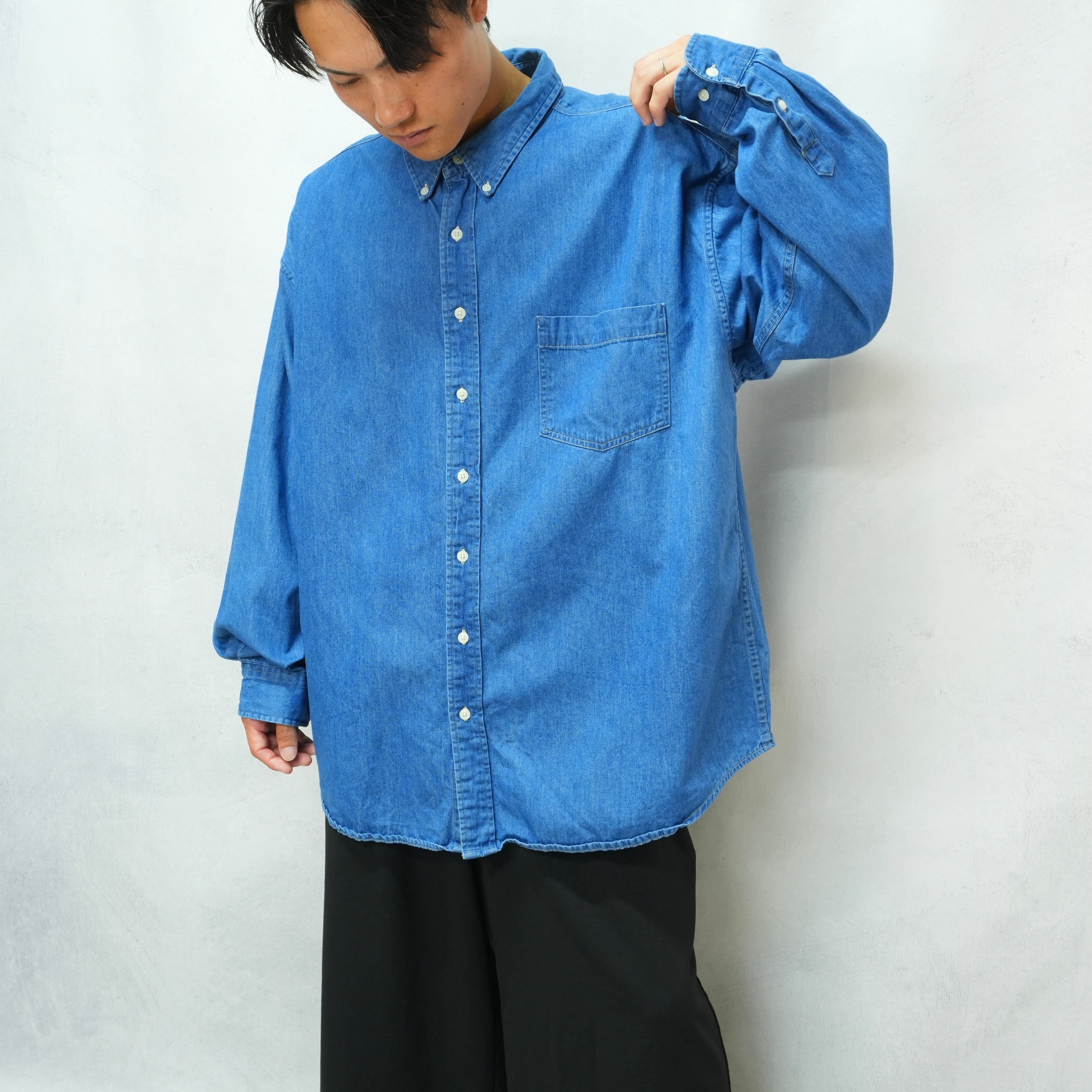 クラシックなボタンダウン仕様で仕立てられた存在感があり、身幅がかなり広めに取られており、着丈もしっかりとあるシルエットなので、羽織るだけでゆるく抜け感のあるスタイルが完成いたします.