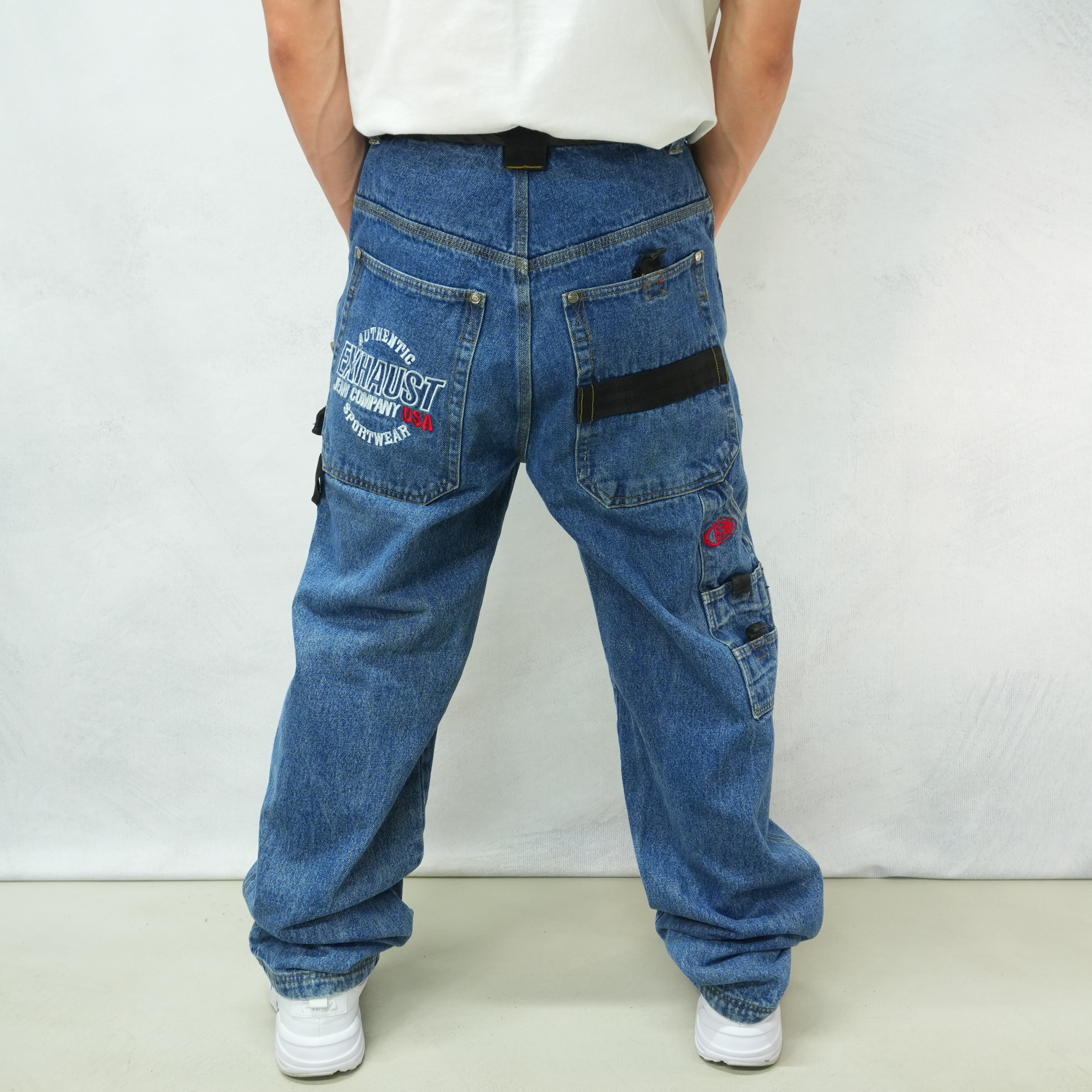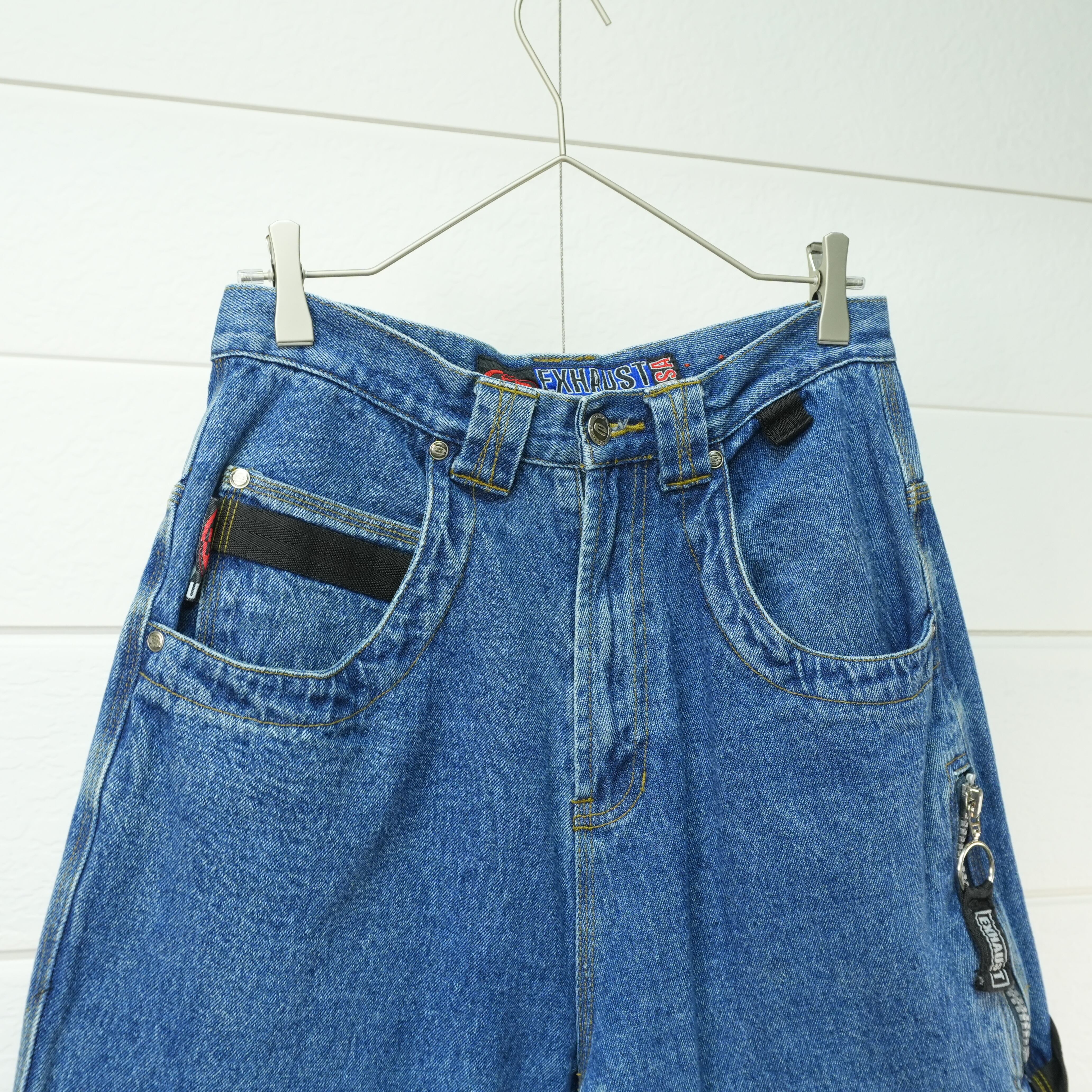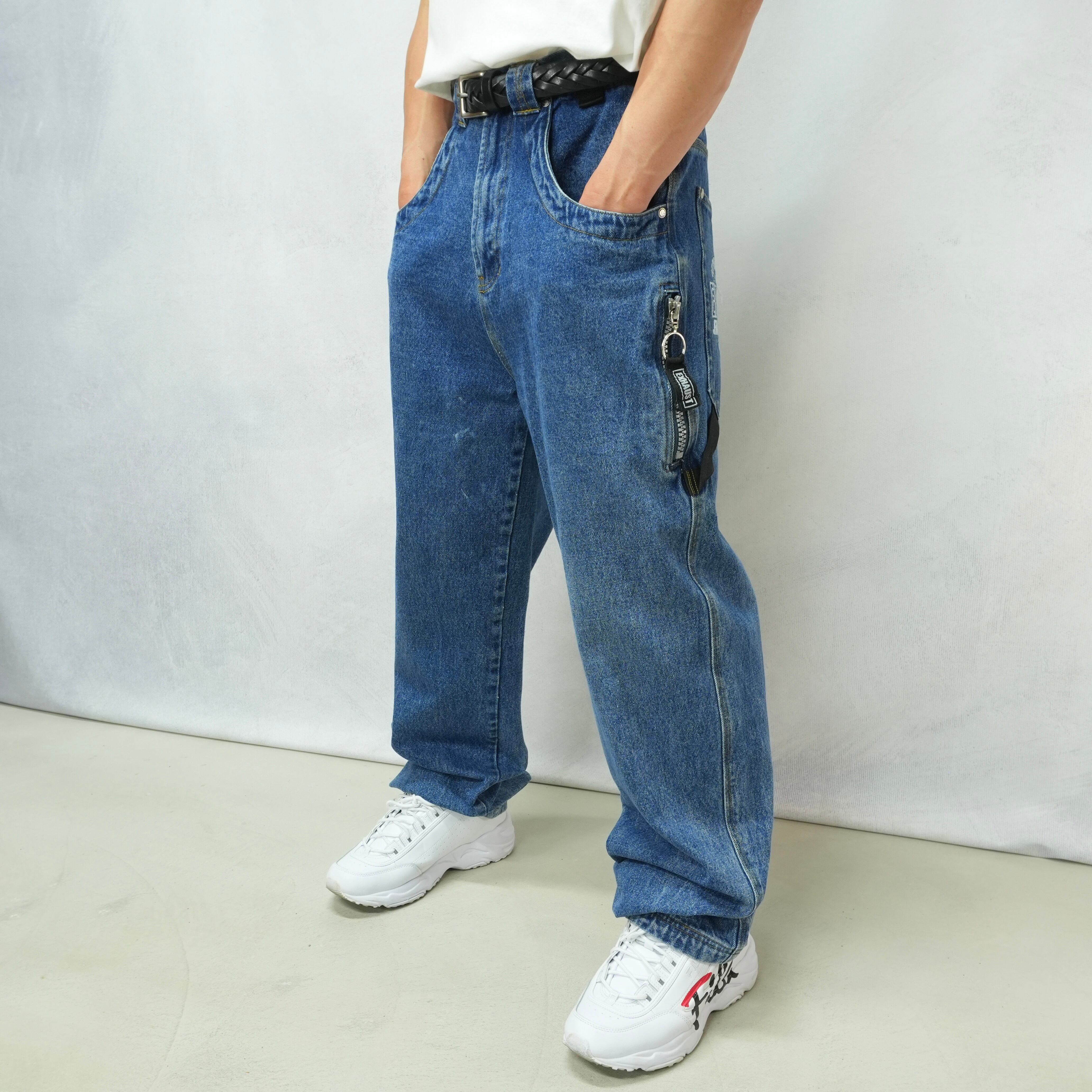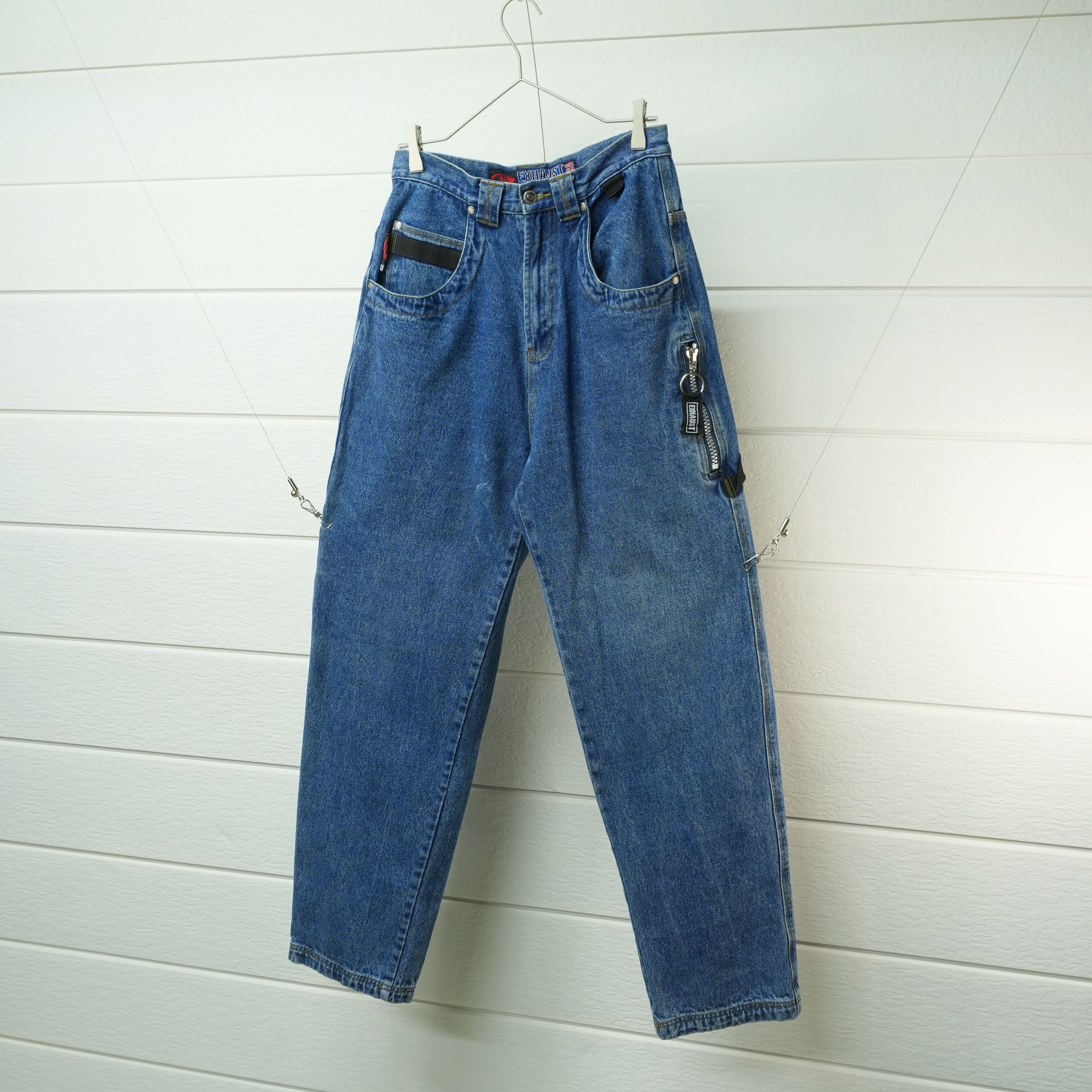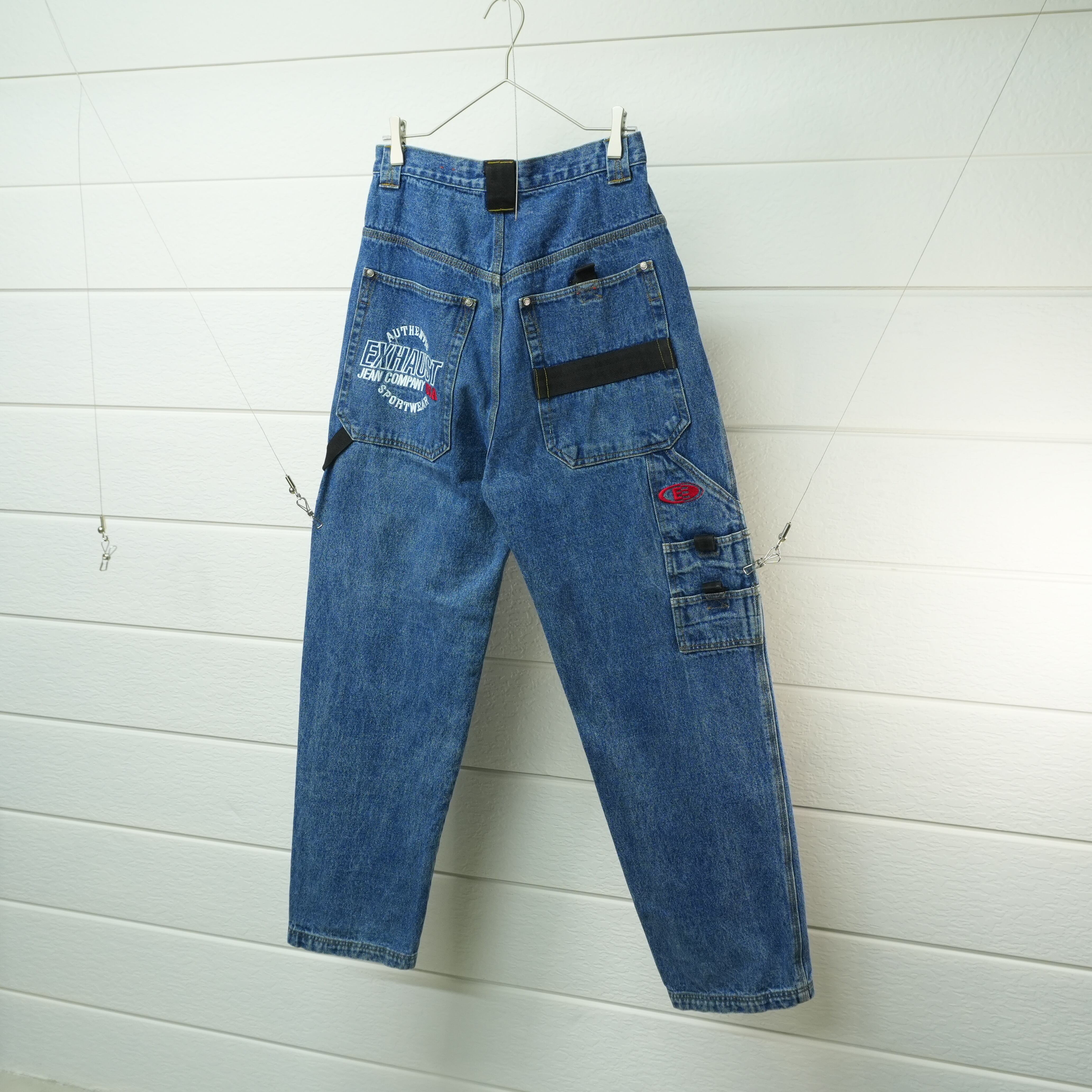 " loose silhouette indigo color embroidery design painter denim pants "