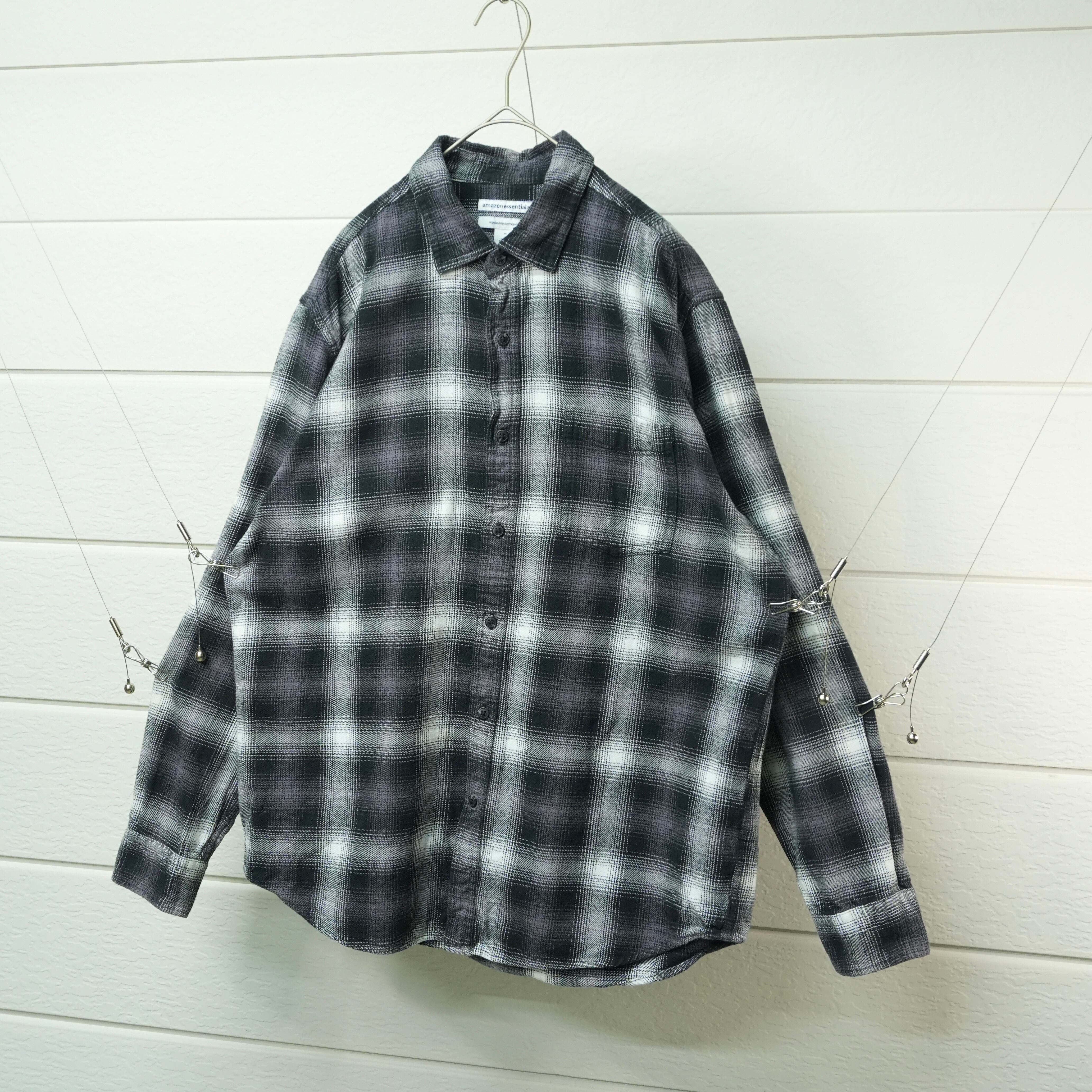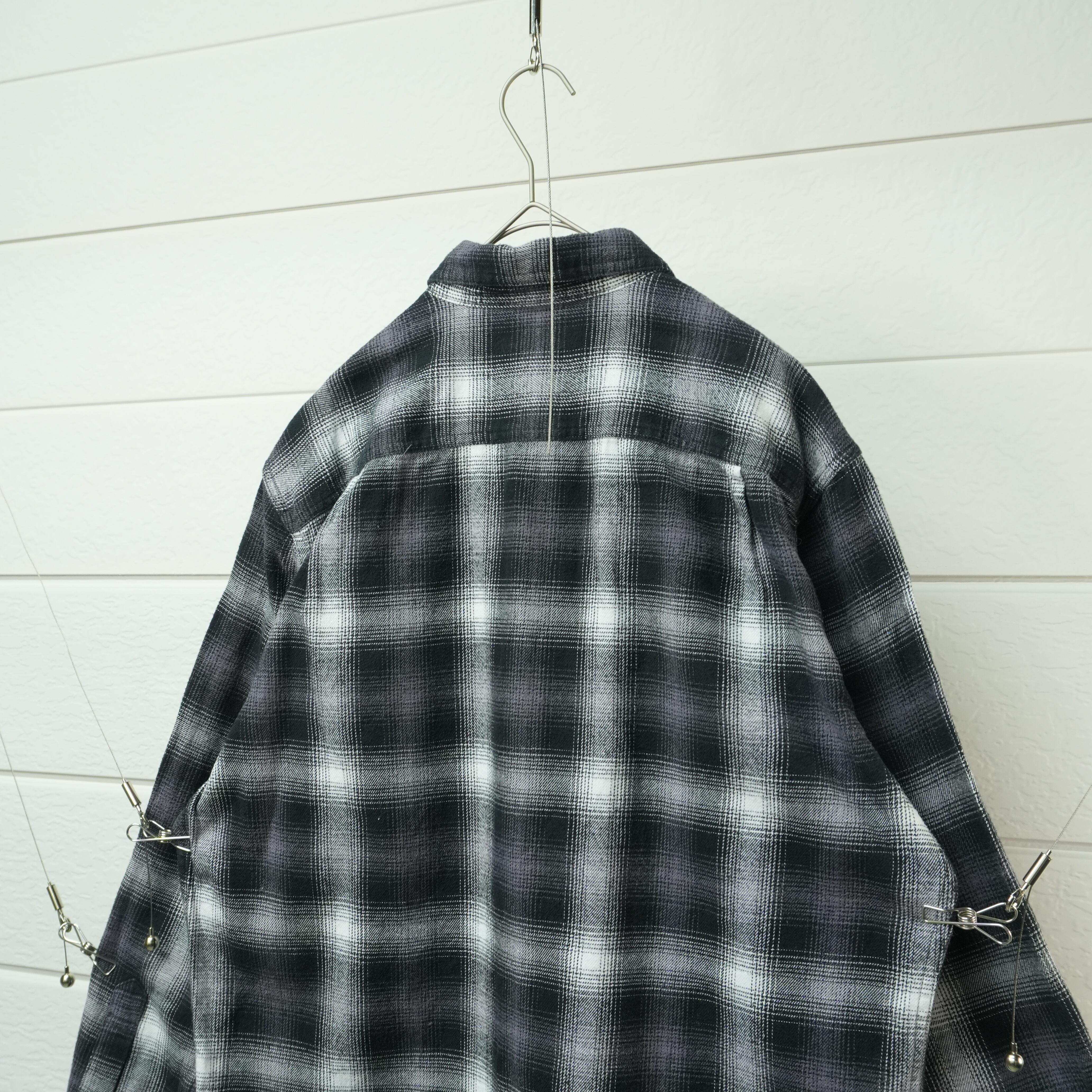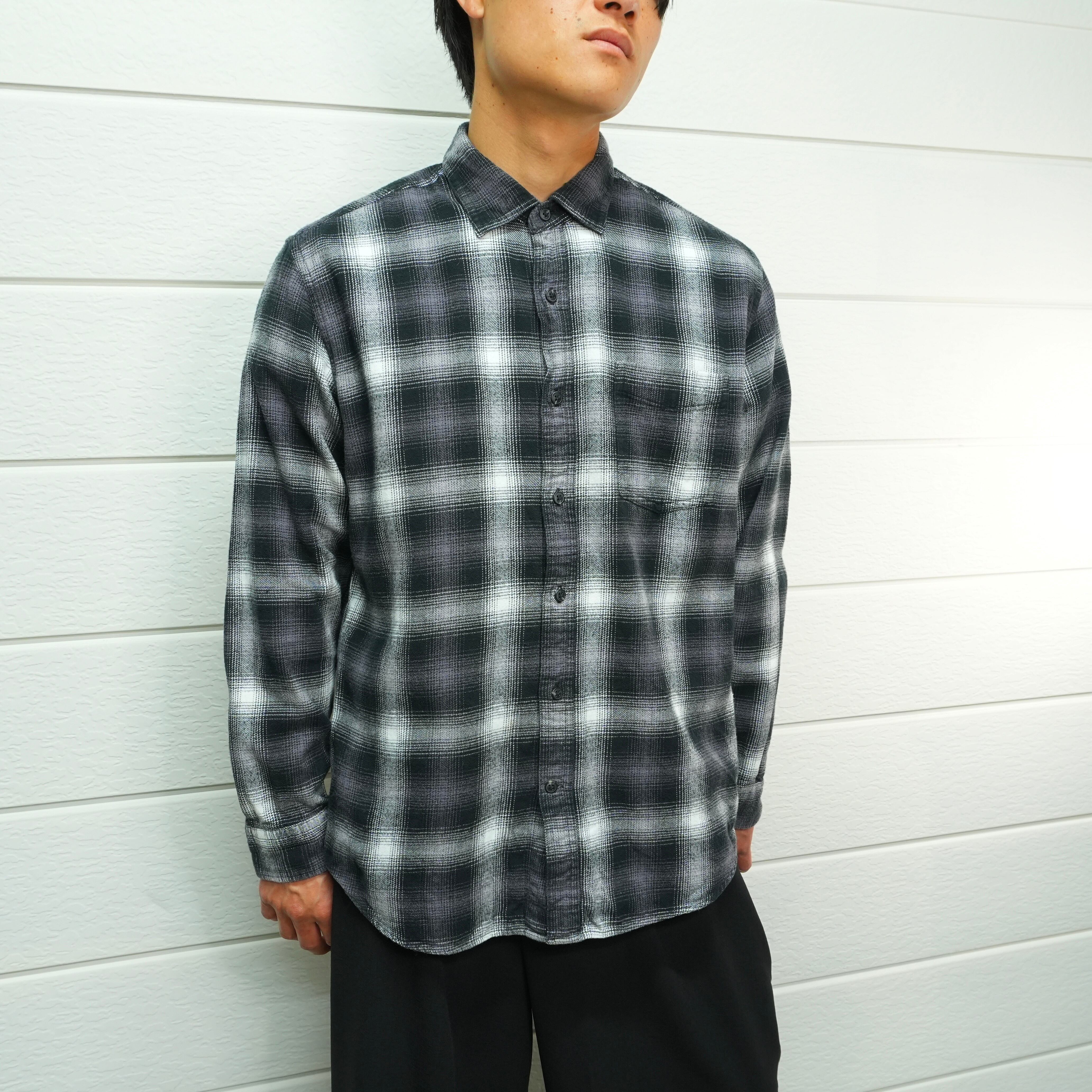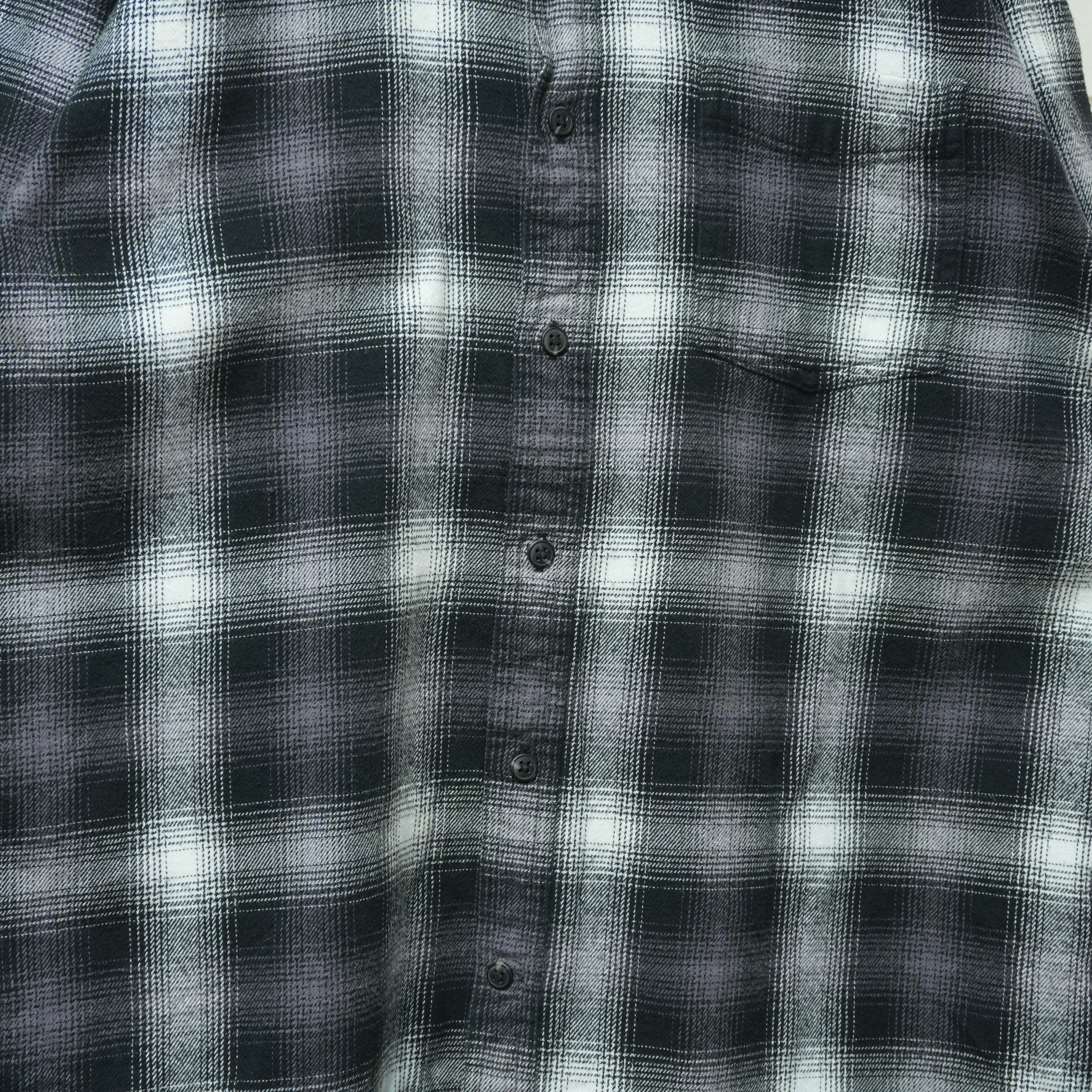 ブラックトーンのオンブレチェックフランネルシャツ.