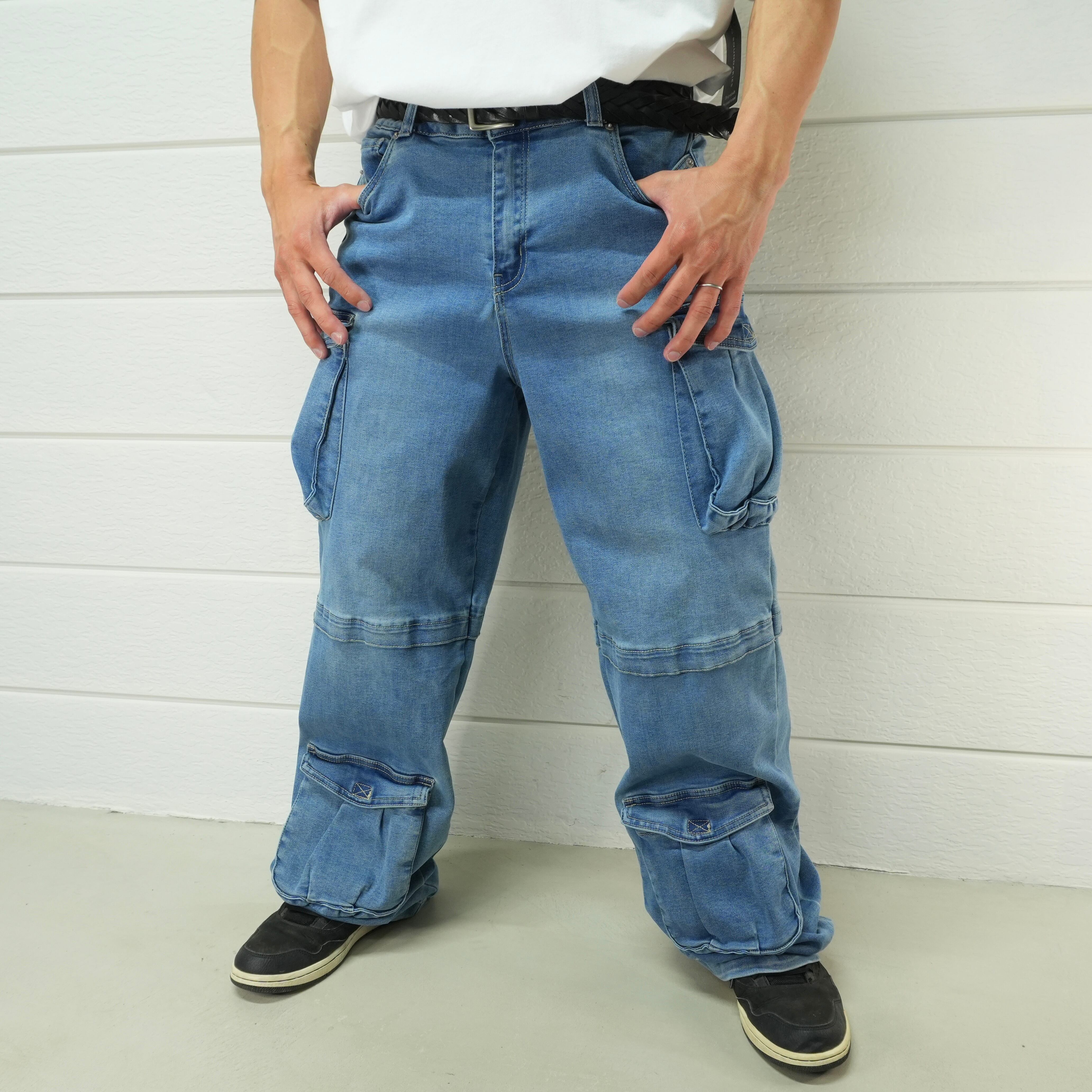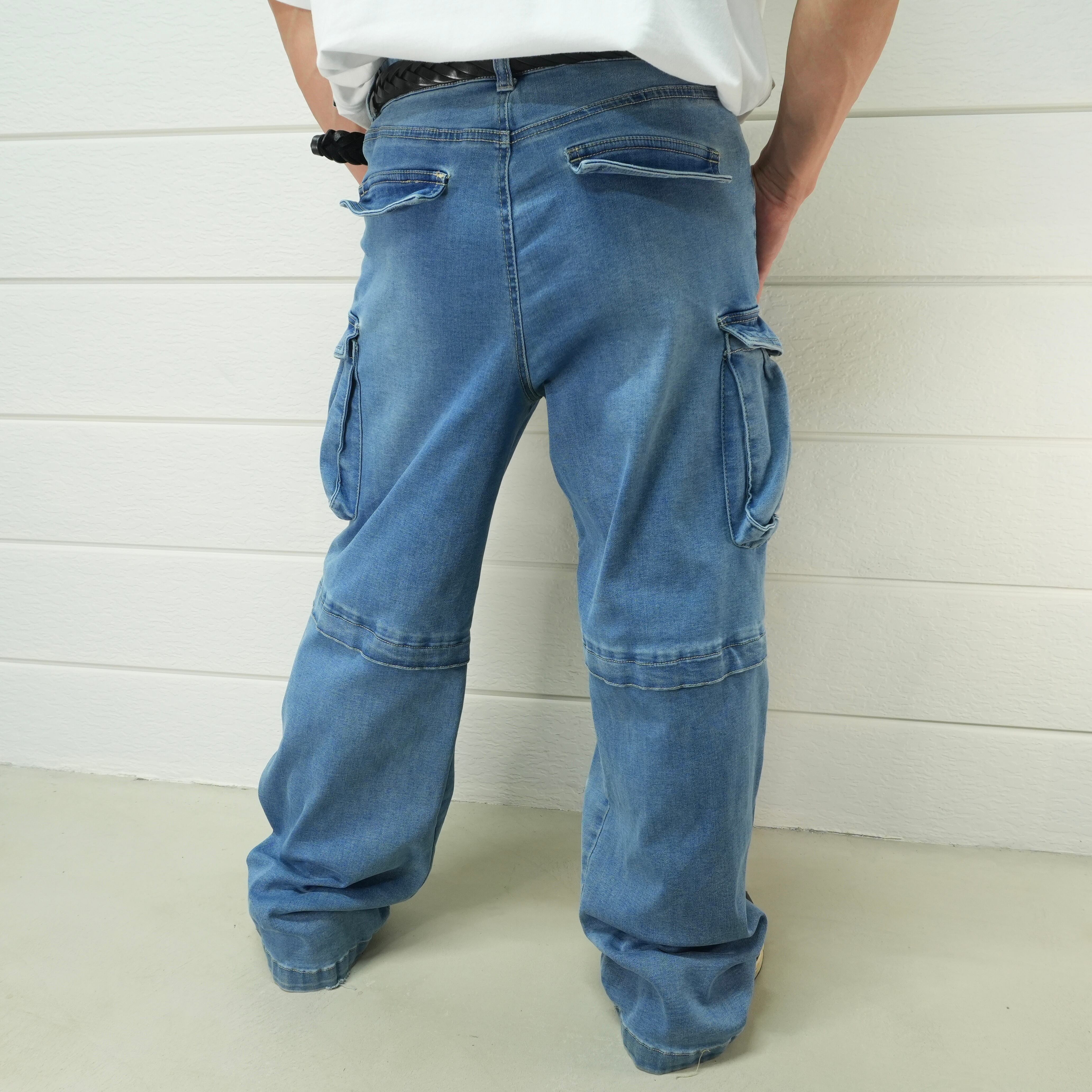 無骨な存在感を放つ6ポケットのデニムパンツ.