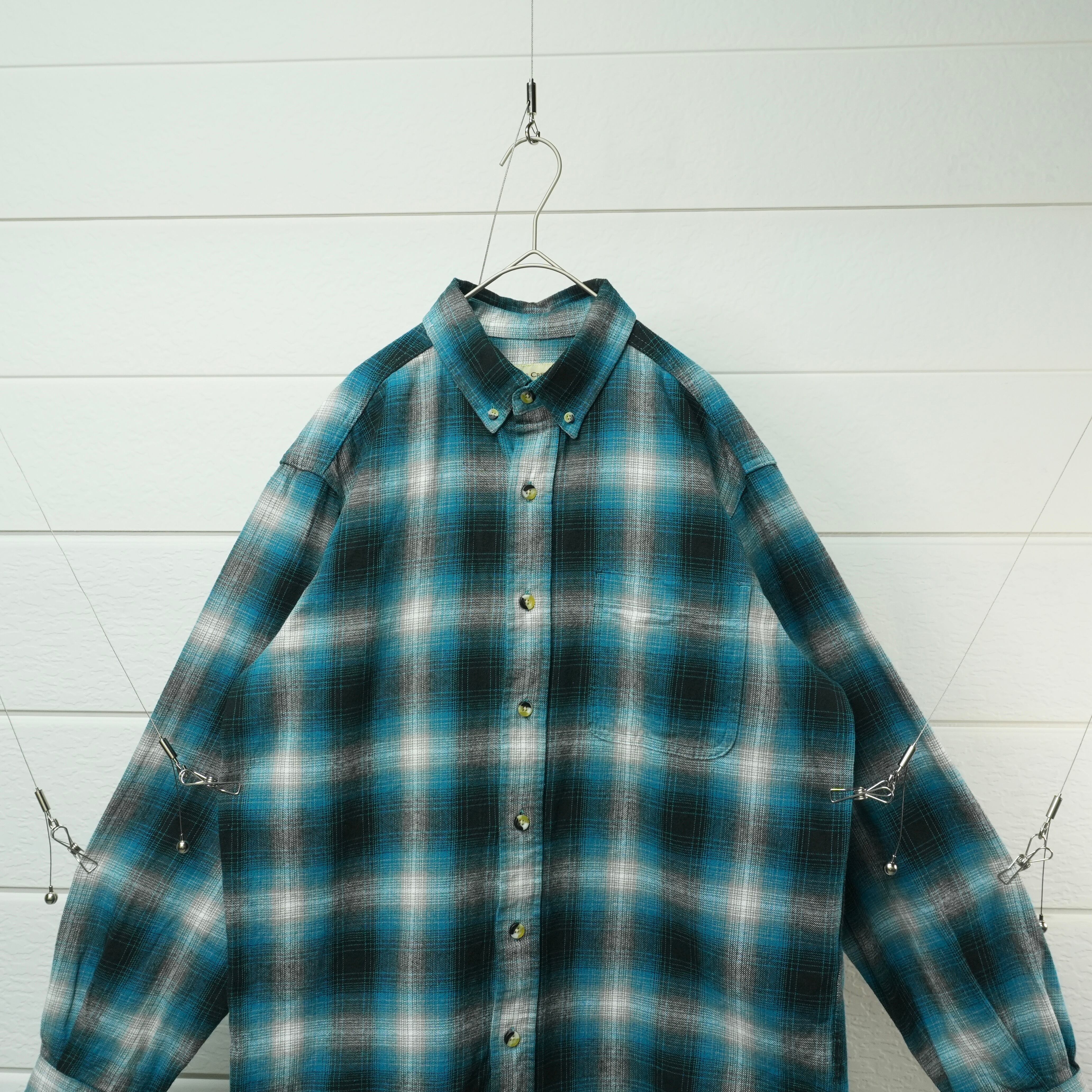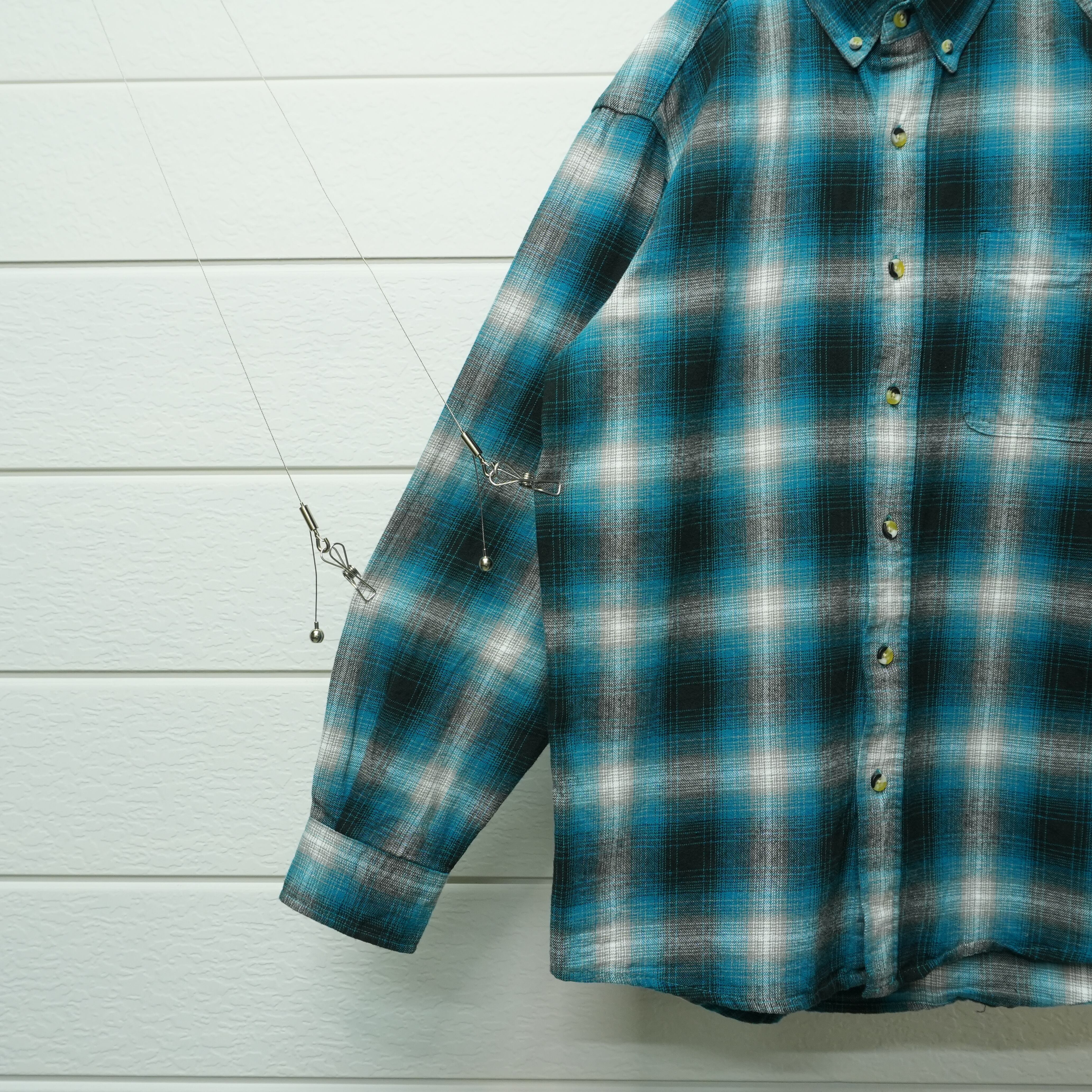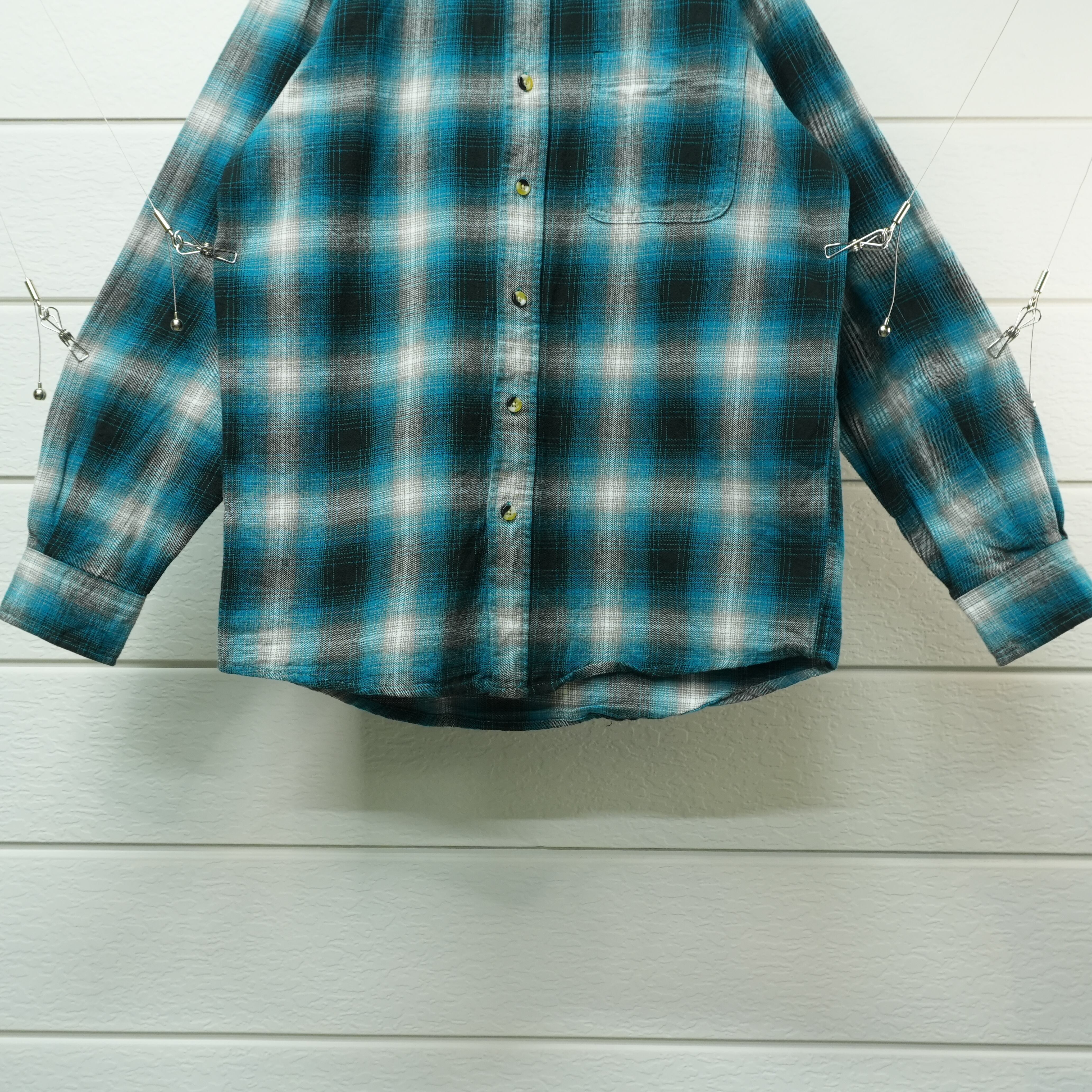 " blue tone color ombre check flannel button down shirt "