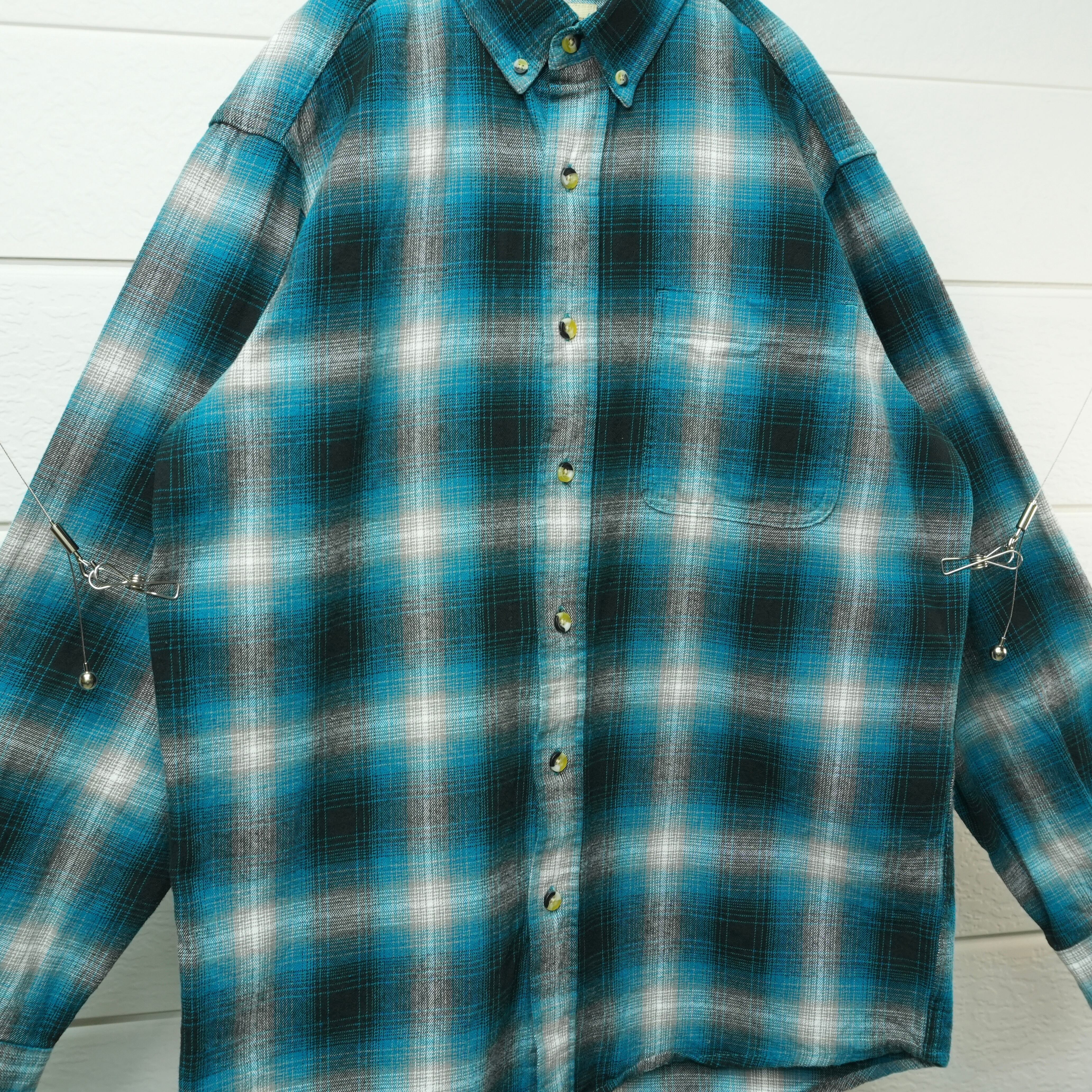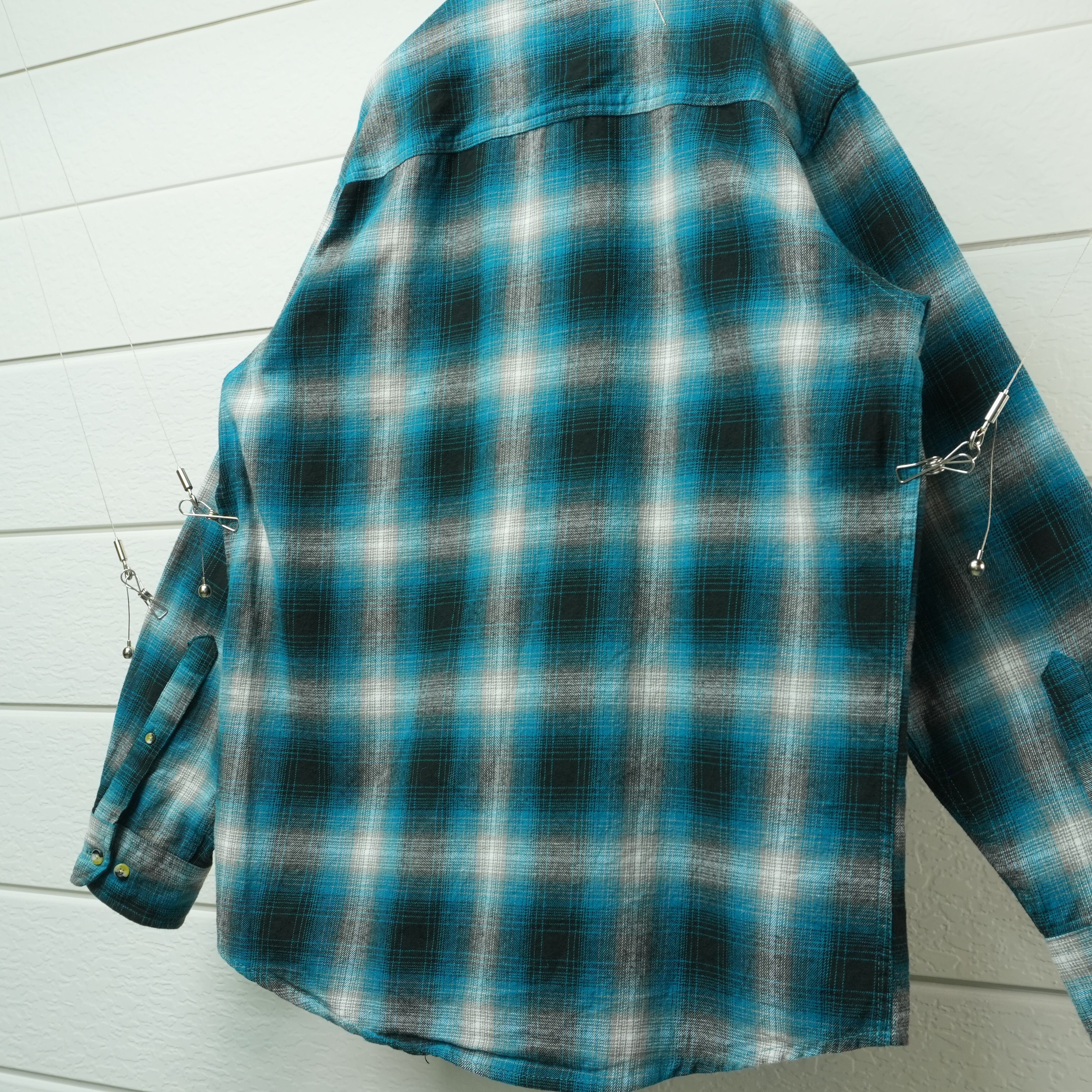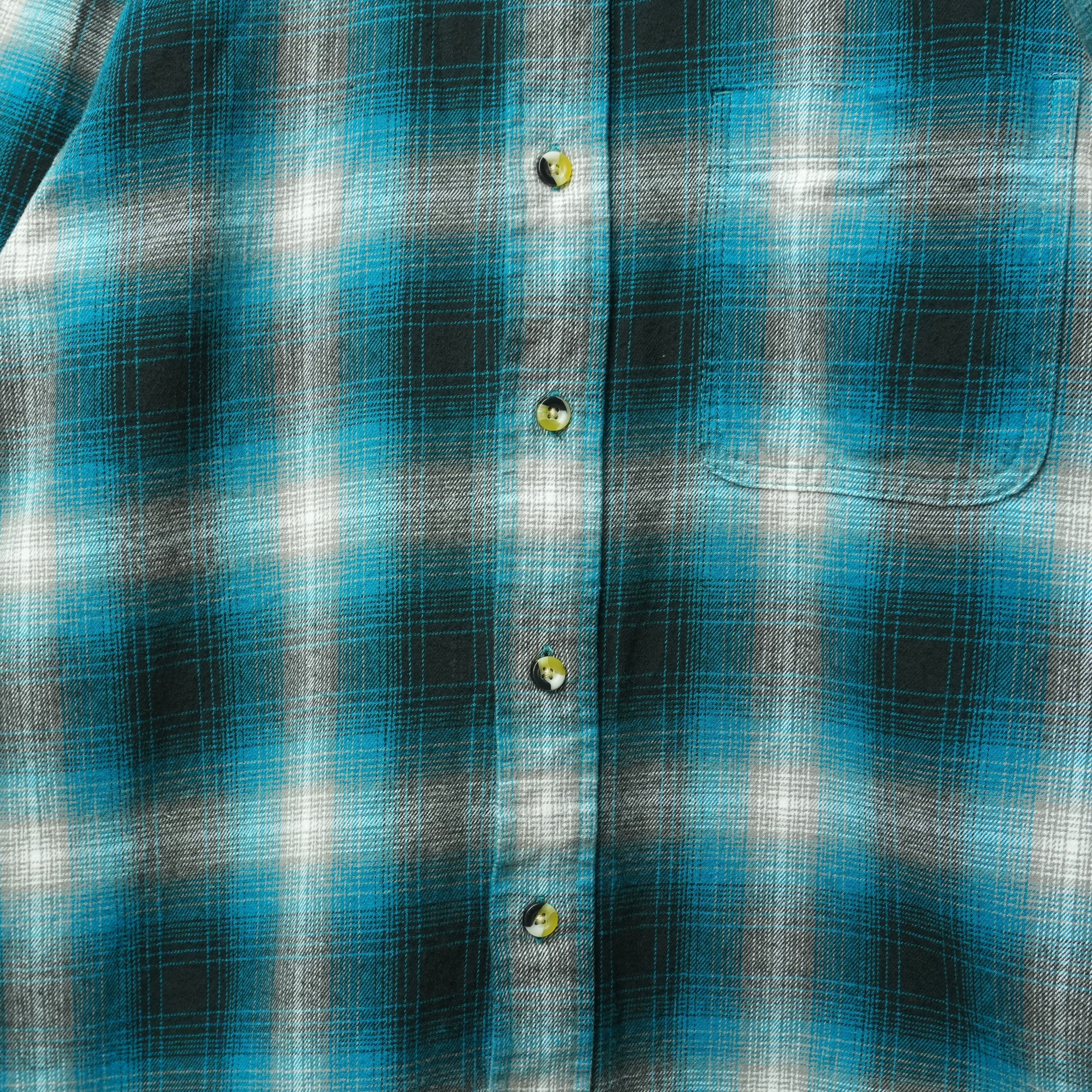 " blue tone color ombre check flannel button down shirt "