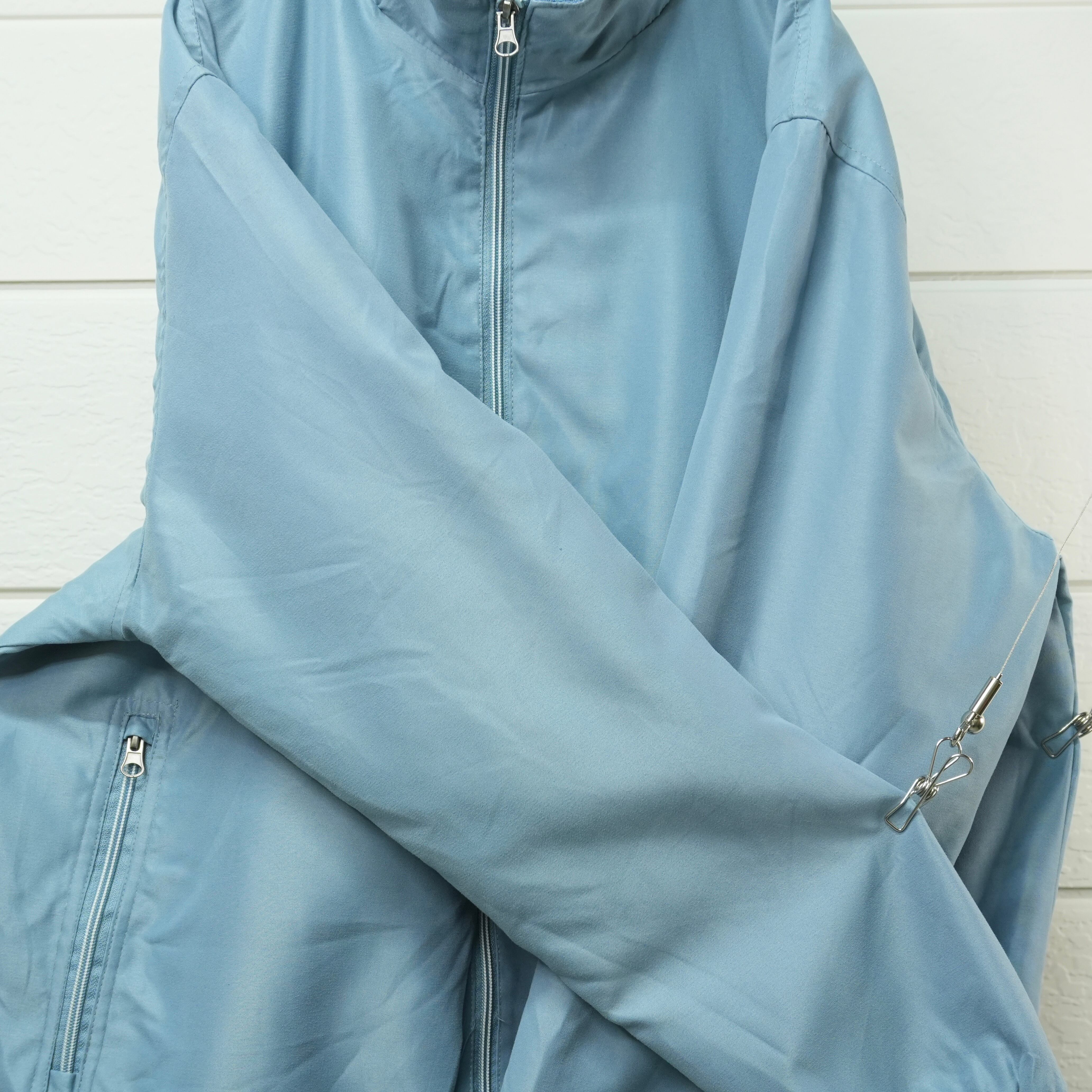 ポリエステルの軽やかな素材感で、春や秋にさらっと羽織るのにぴったりな一着.
