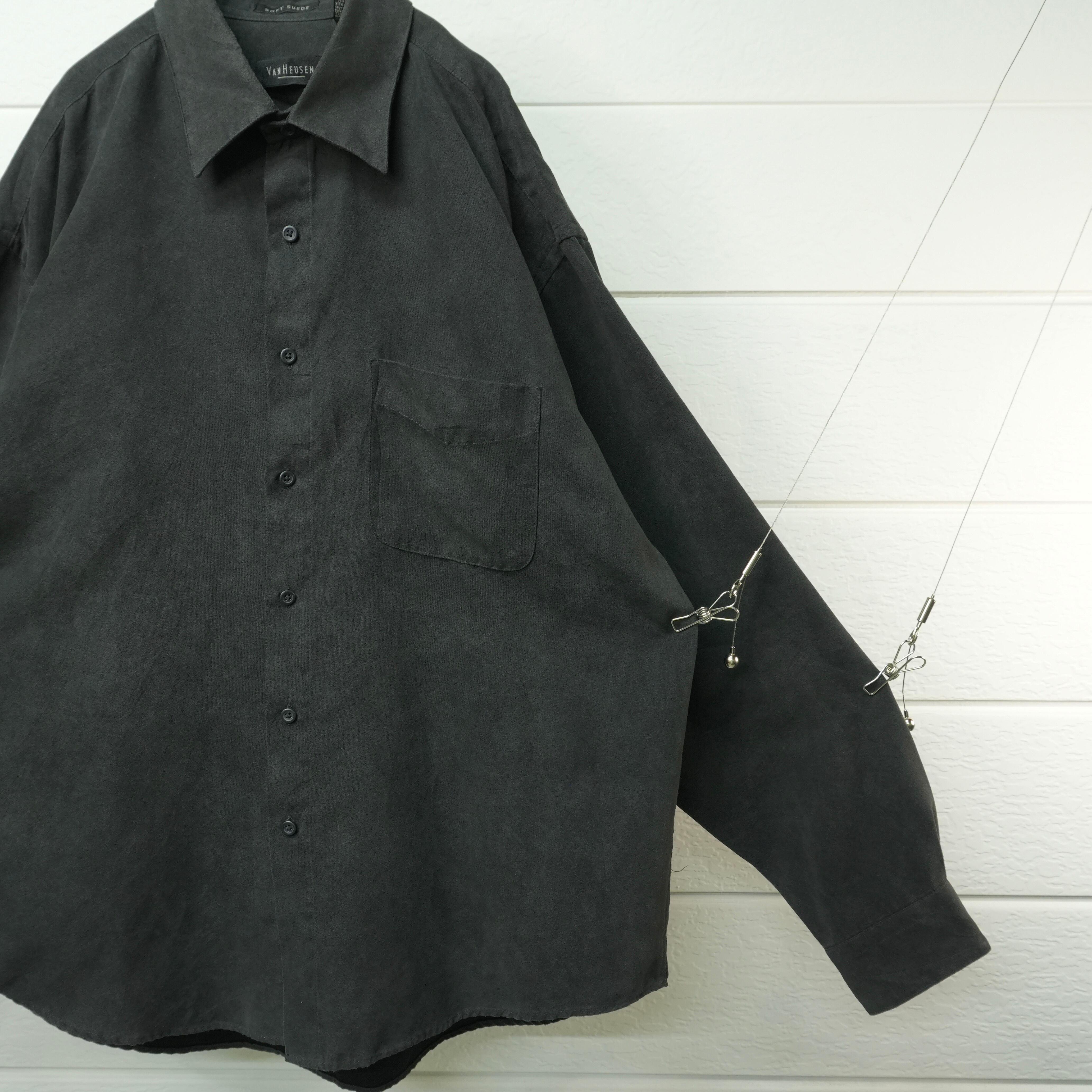 " 'Van Heusen' good silhouette dark gray color soft fake suede shirt "