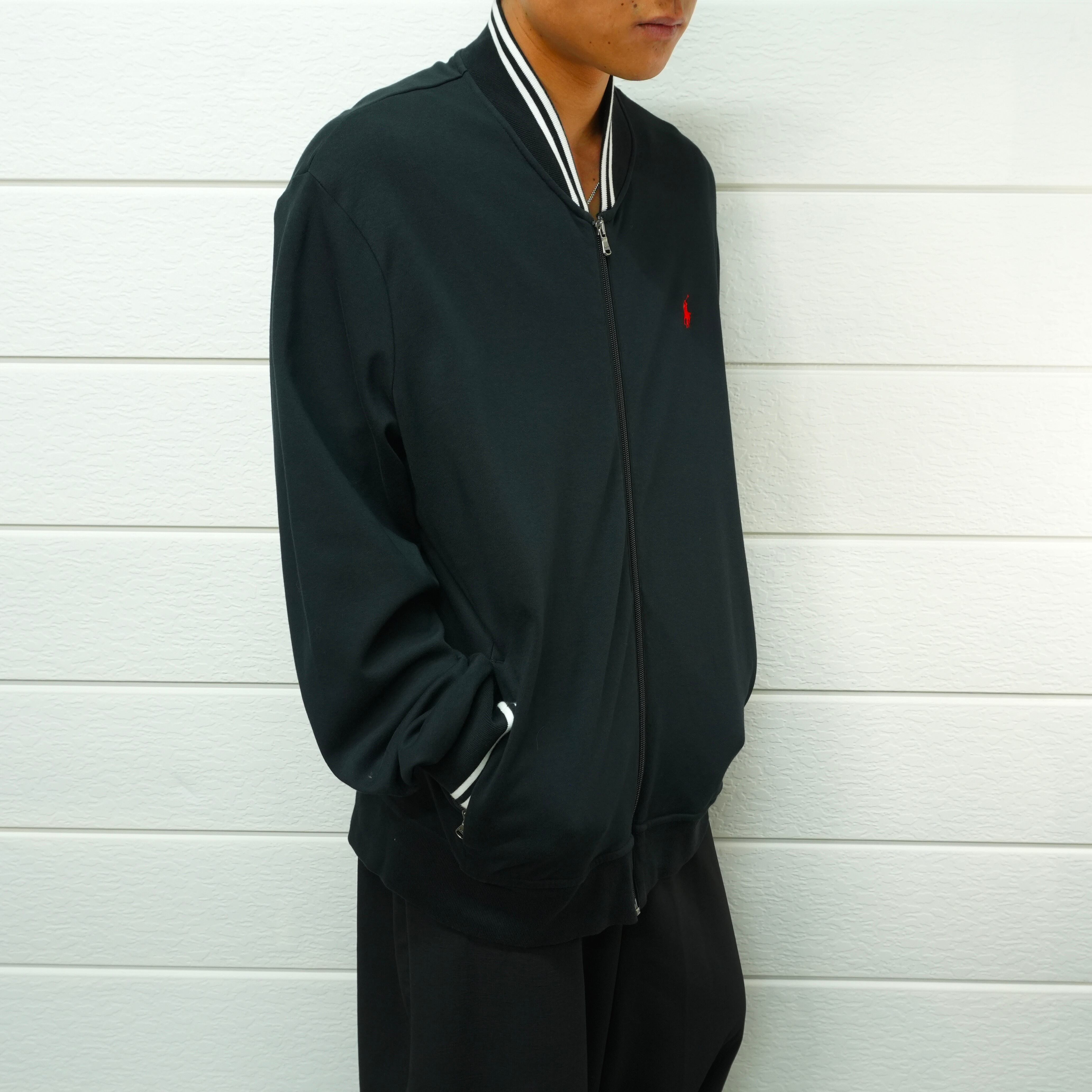 ナイキやアディダスが目立つ中、比較的珍しいラルフローレンのトラックジャケット.