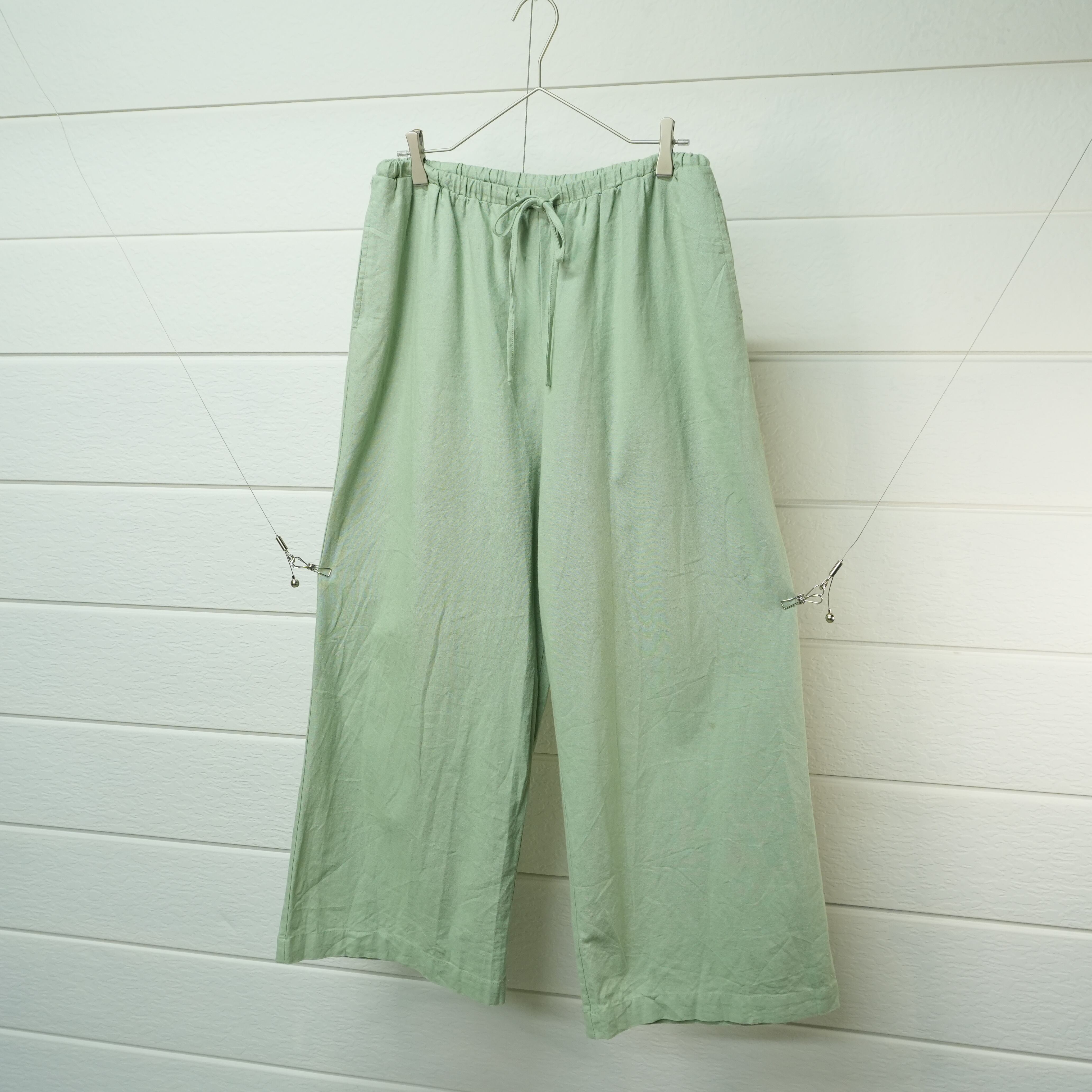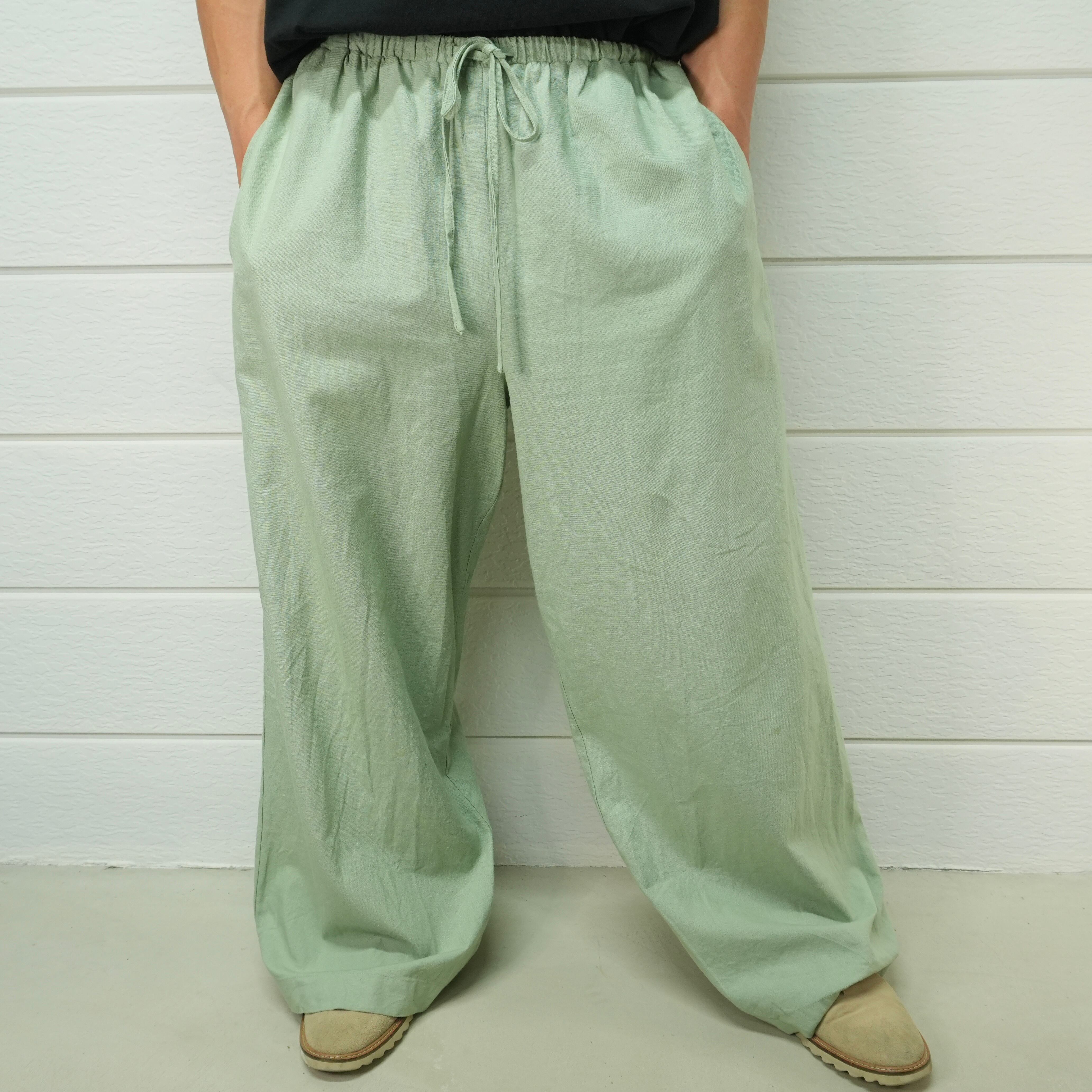" wide loose silhouette mint green color linen easy pants "