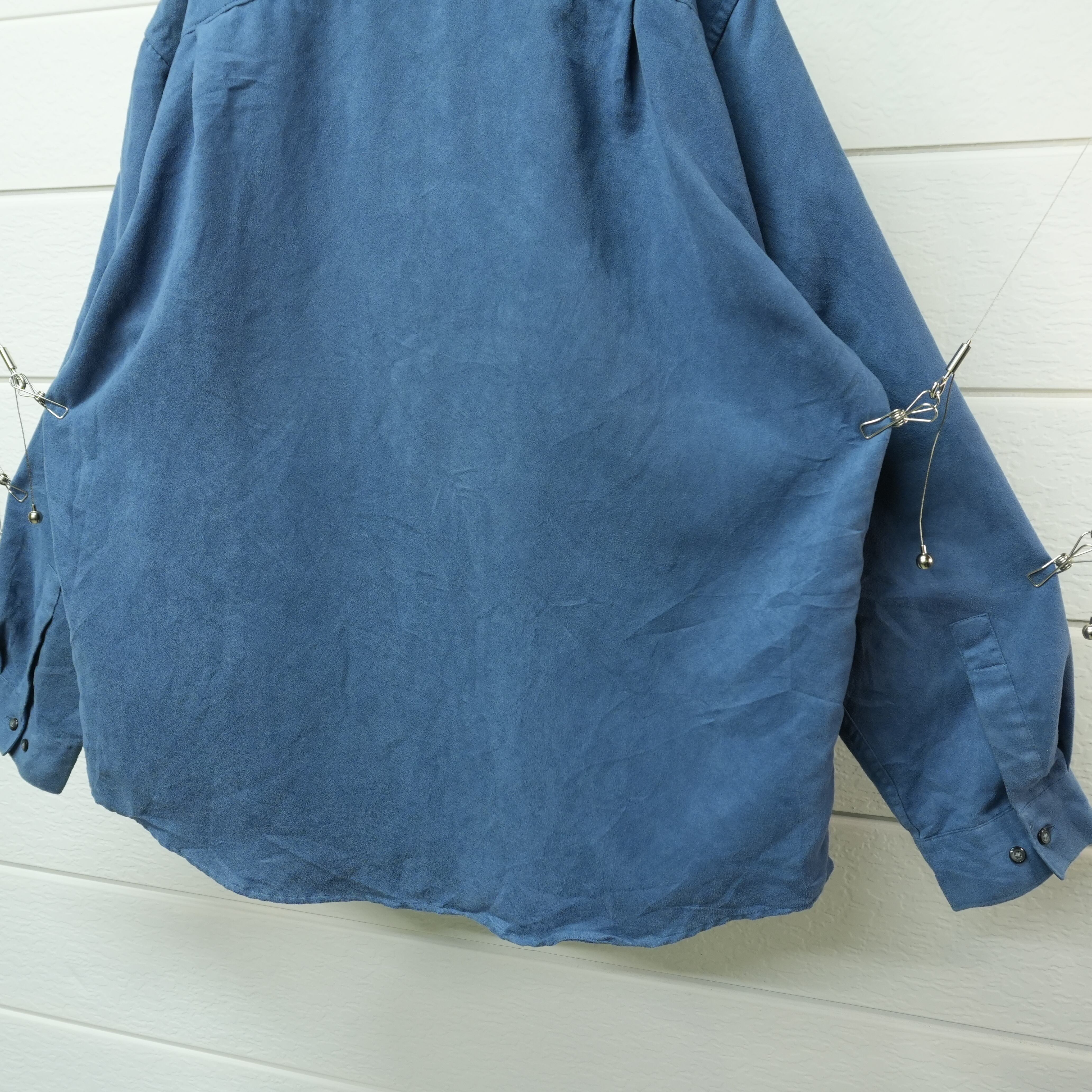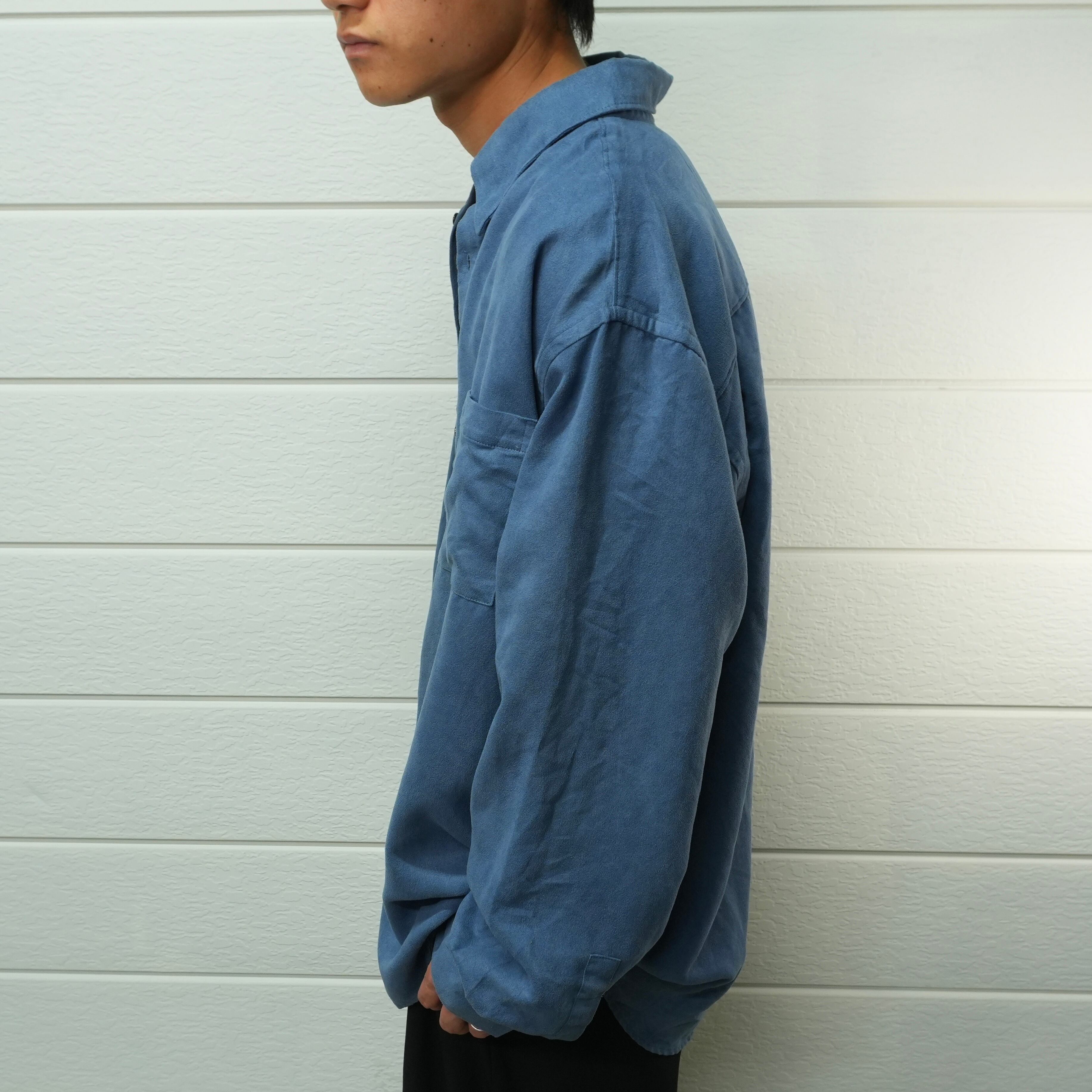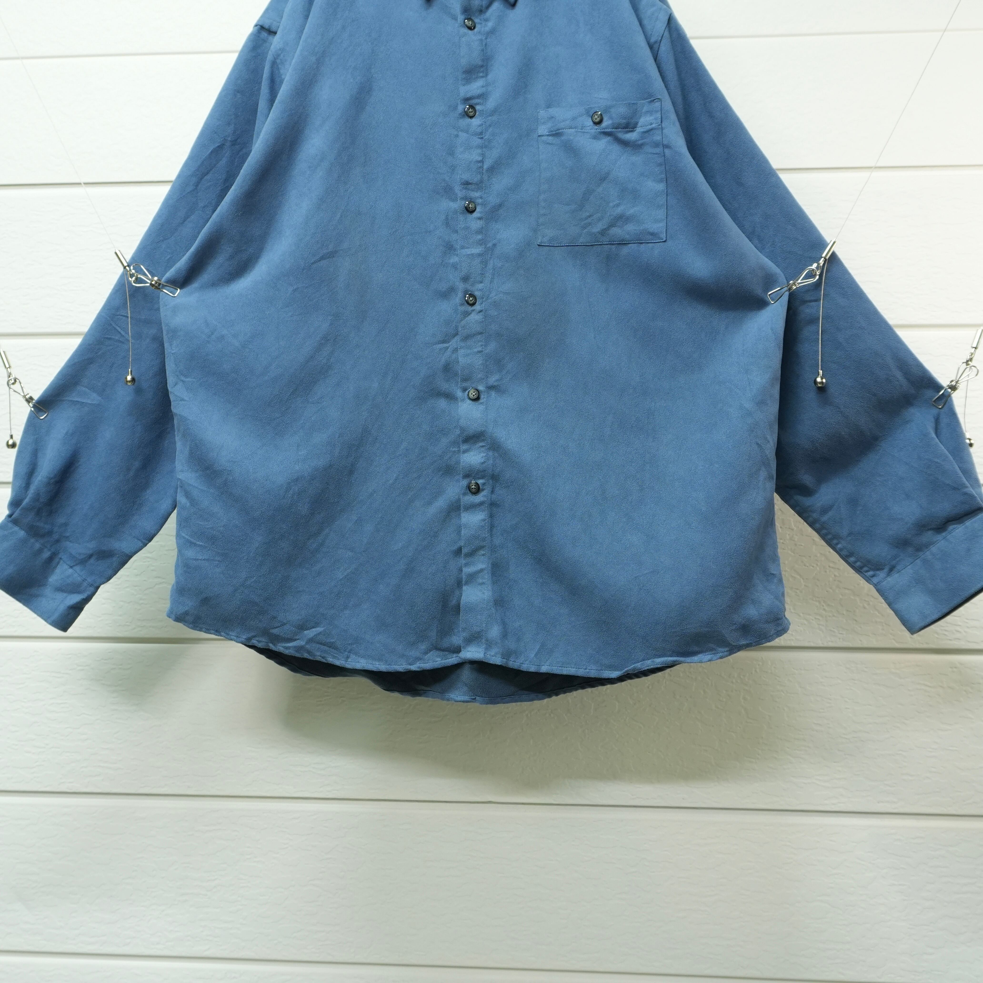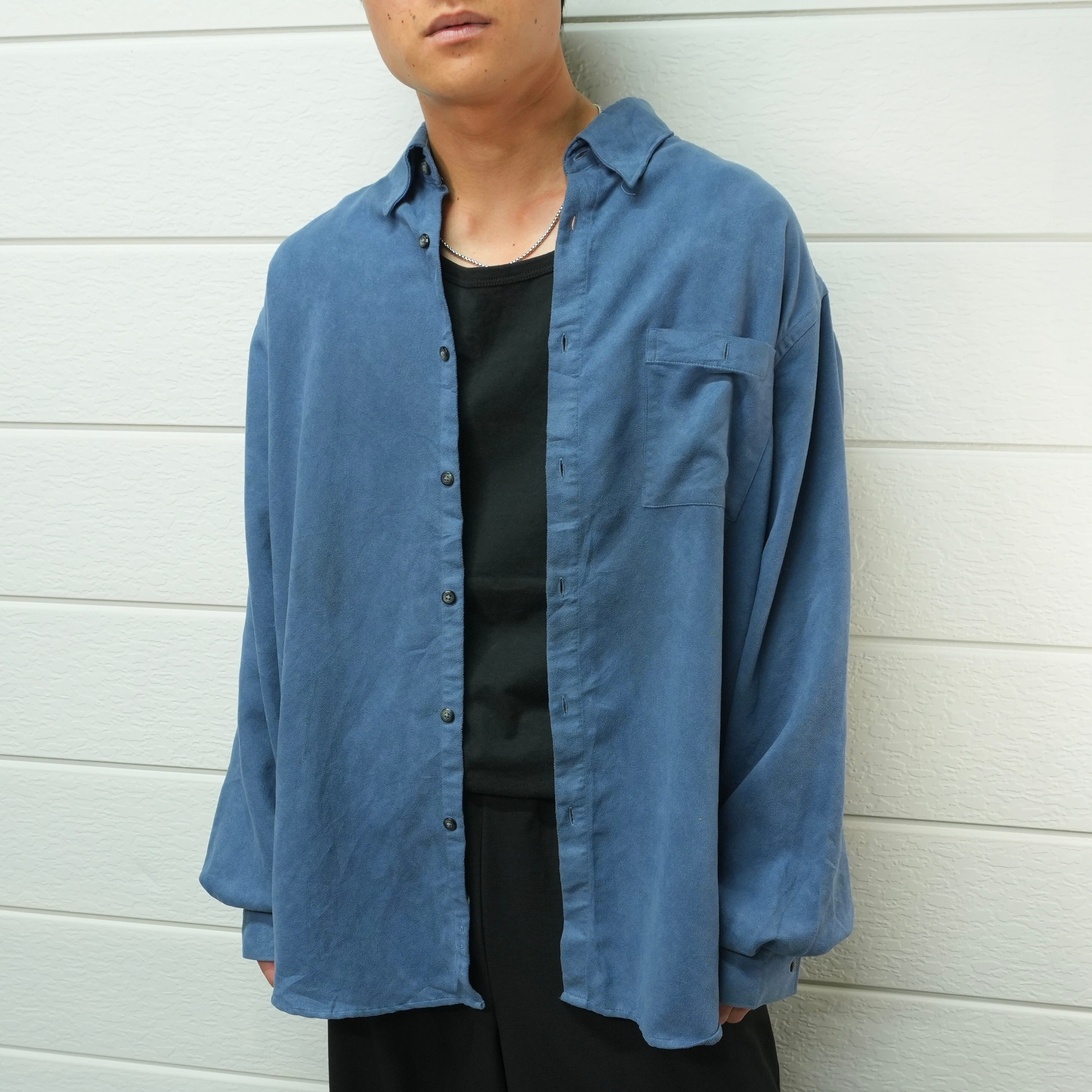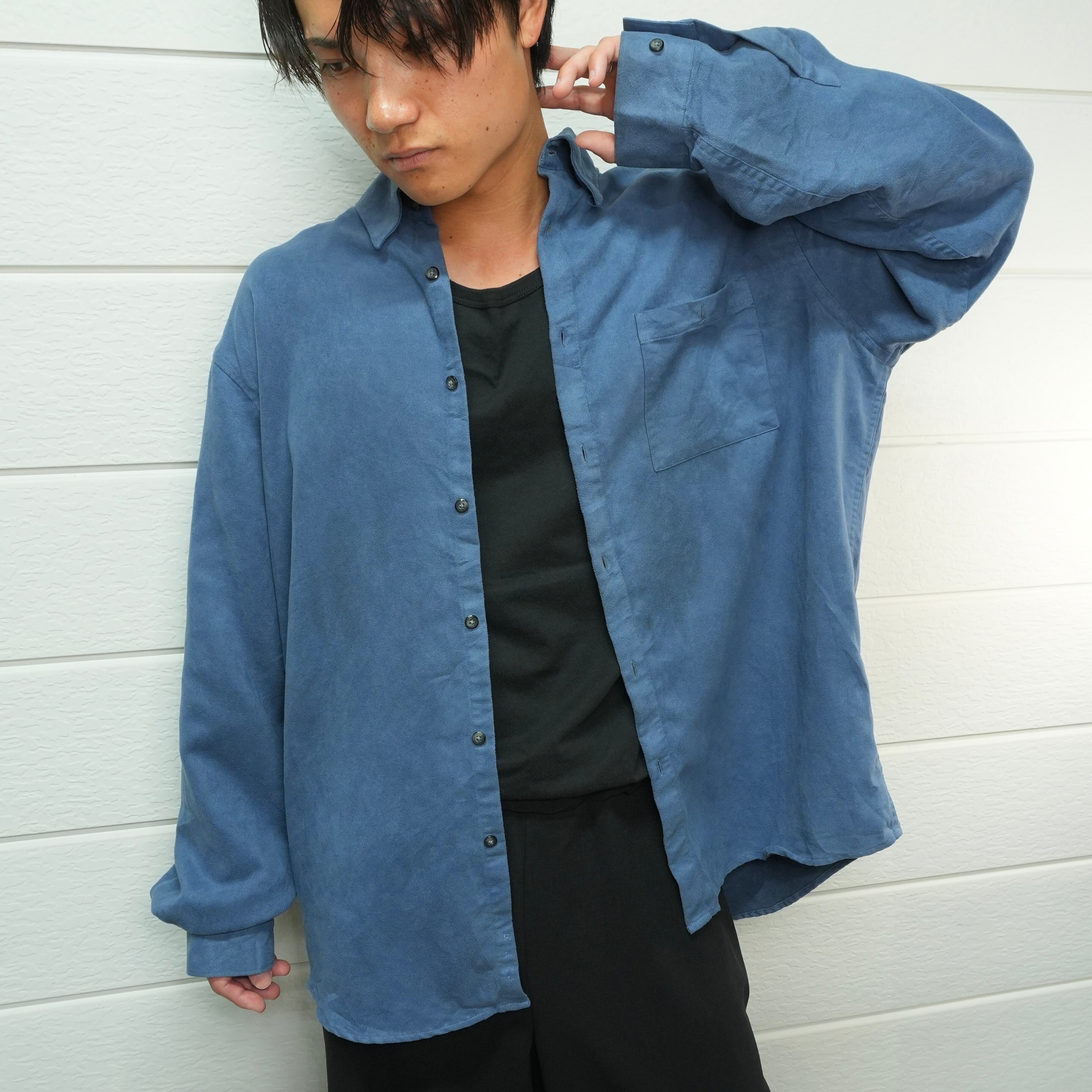 " over silhouette smoky blue color fake suede shirt "