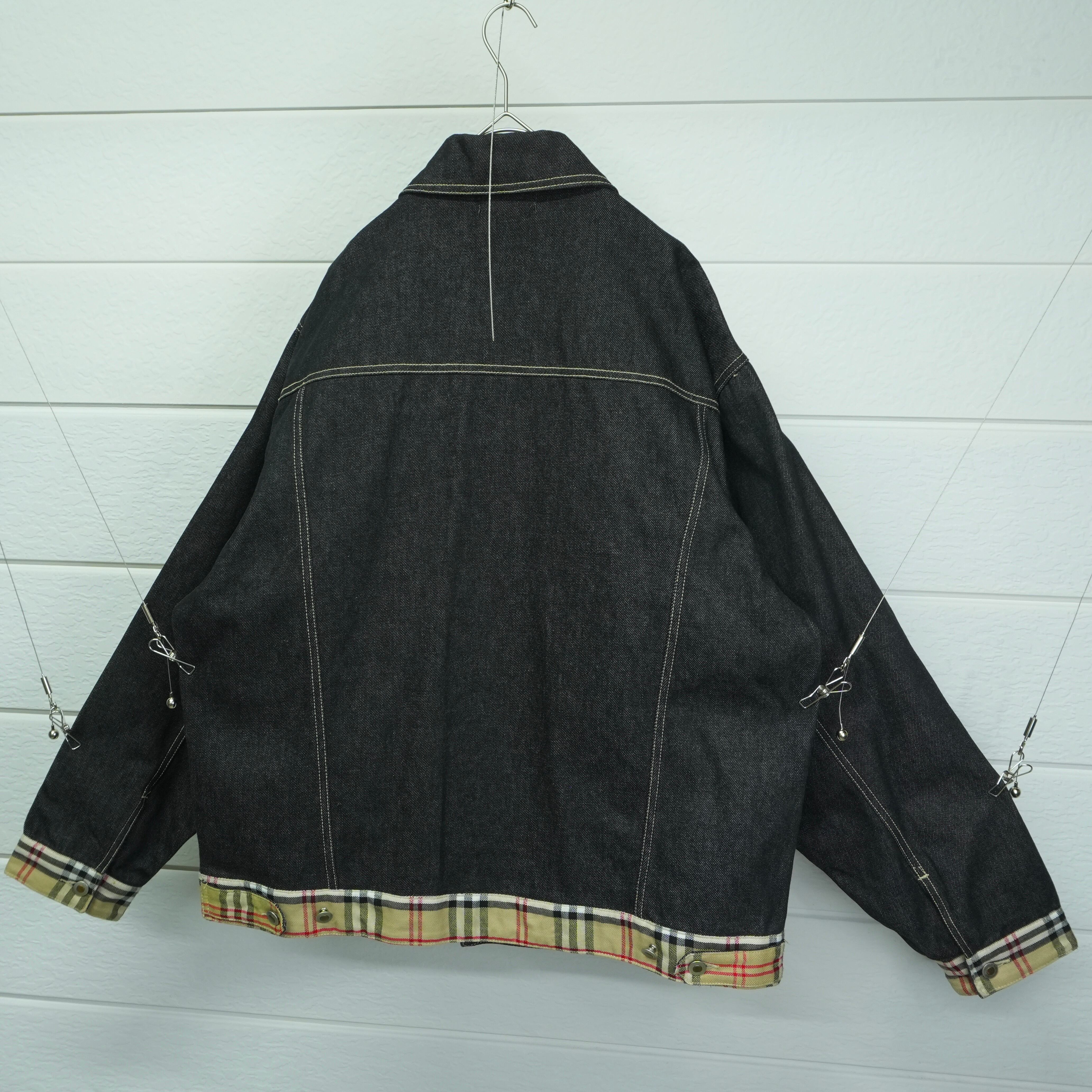 " 'Burberry London' indigo black color house check denim jacket "