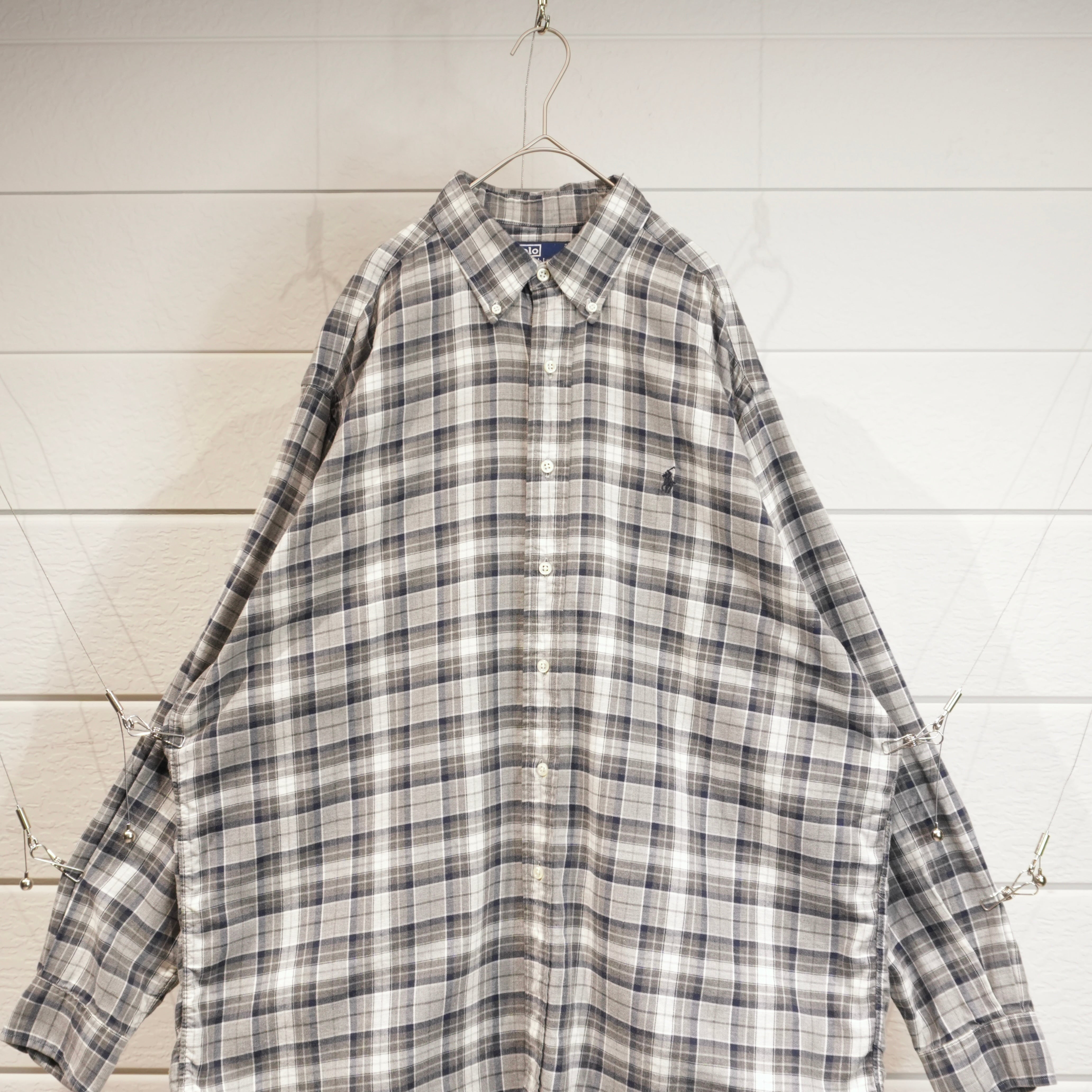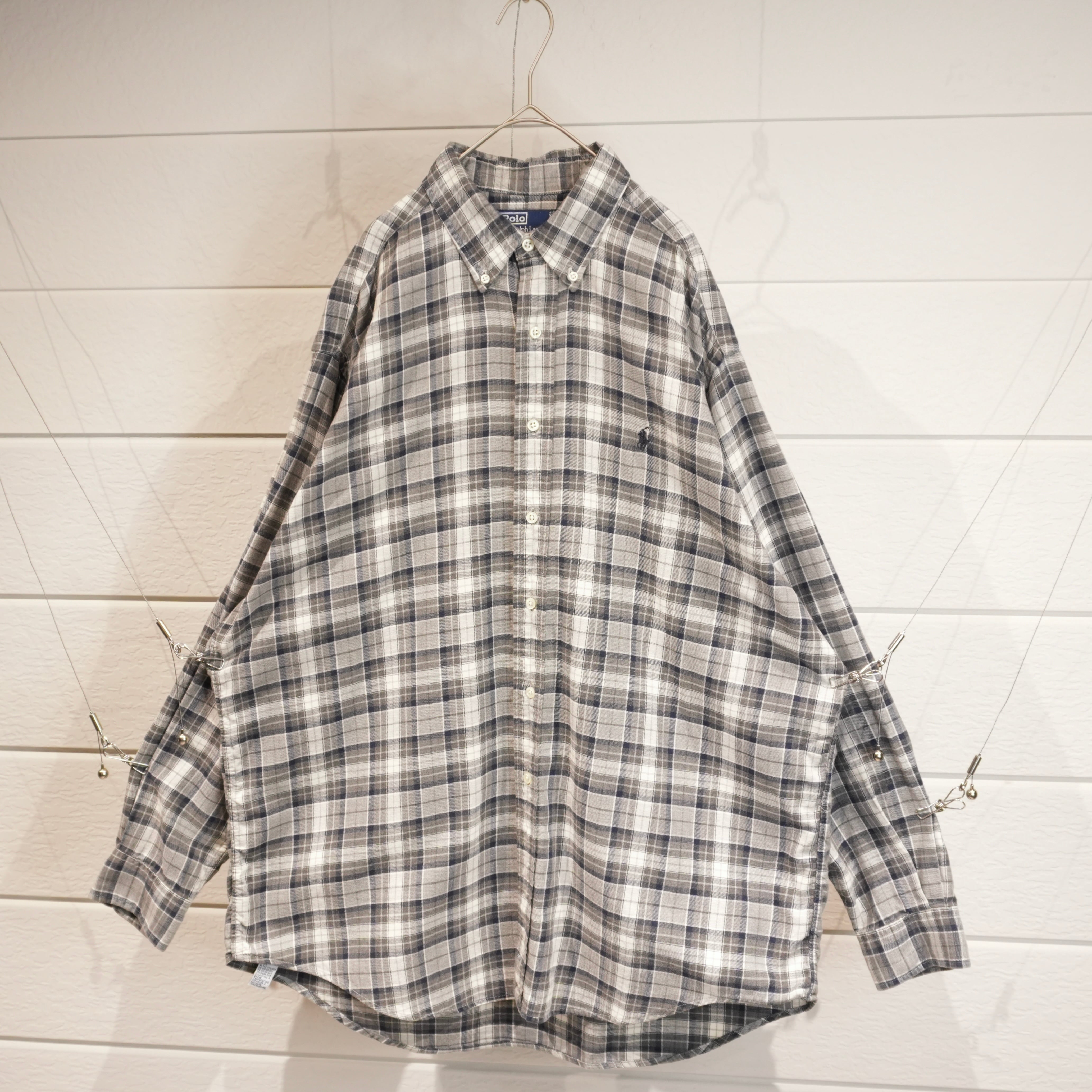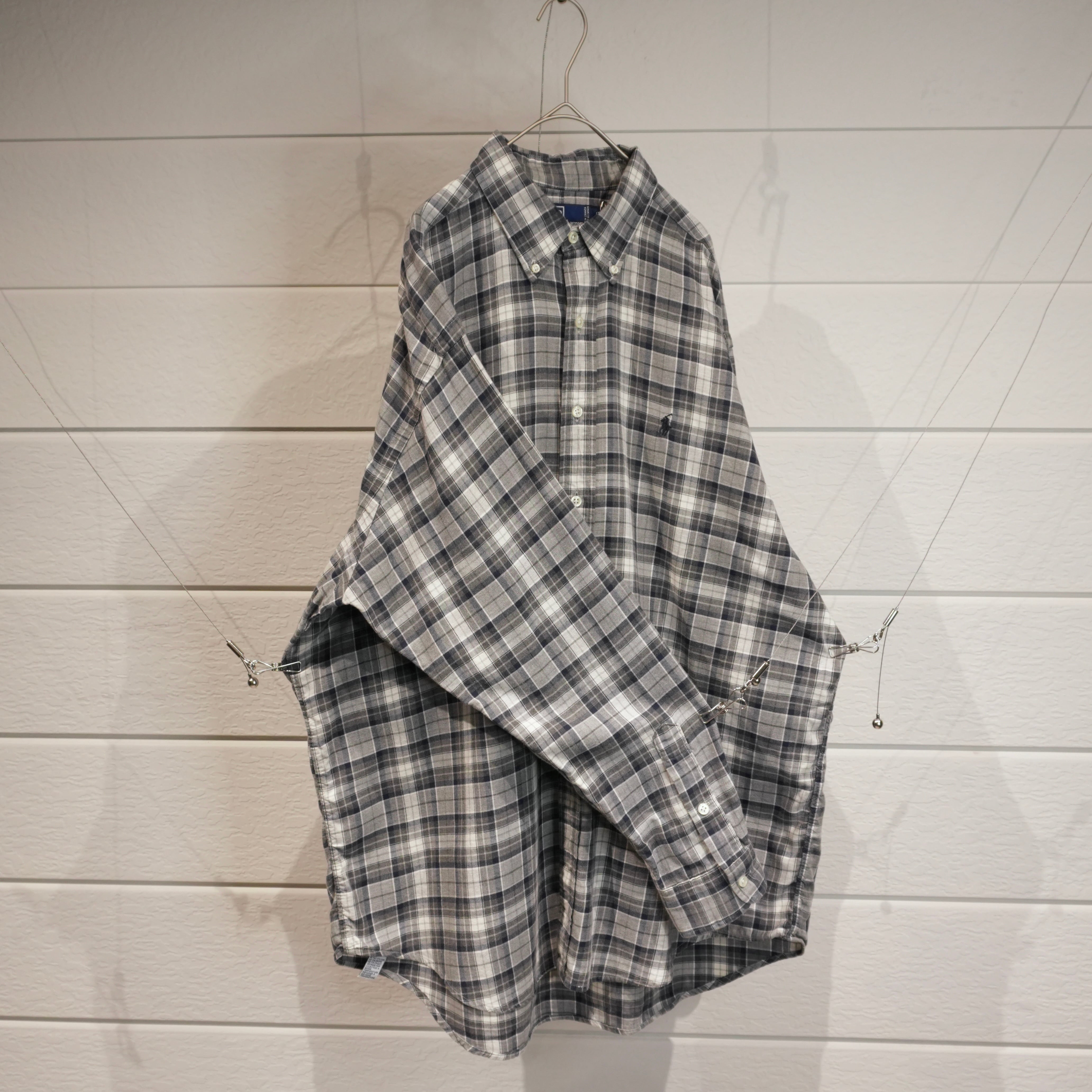" 'POLO Ralph Lauren' good silhouette gray torn check shirt "