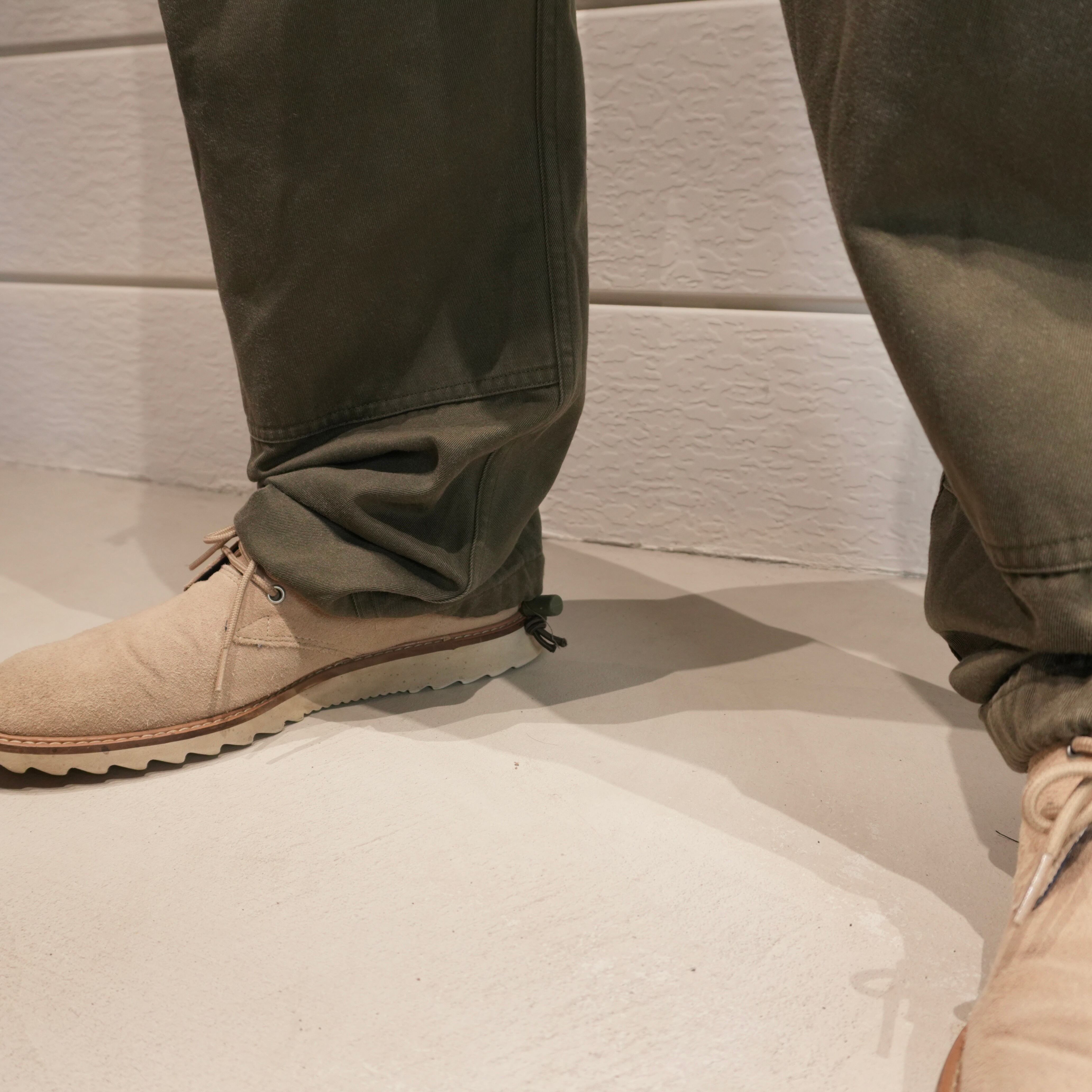 ややゆとりのあるシルエットながら、裾のドローコードを絞ることで足元のボリュームやシルエット変化も楽しめるのでリアルなミリタリーファッションに.