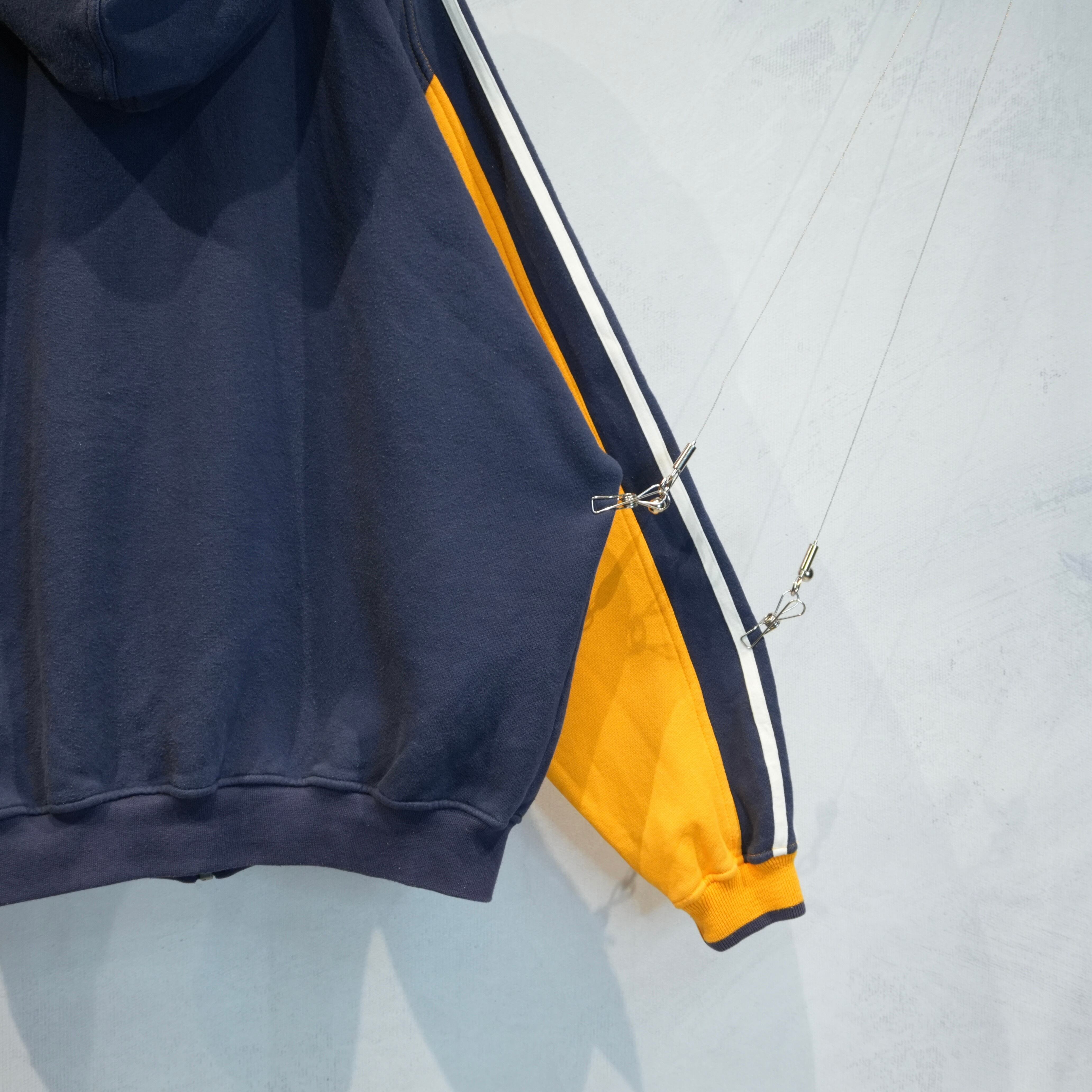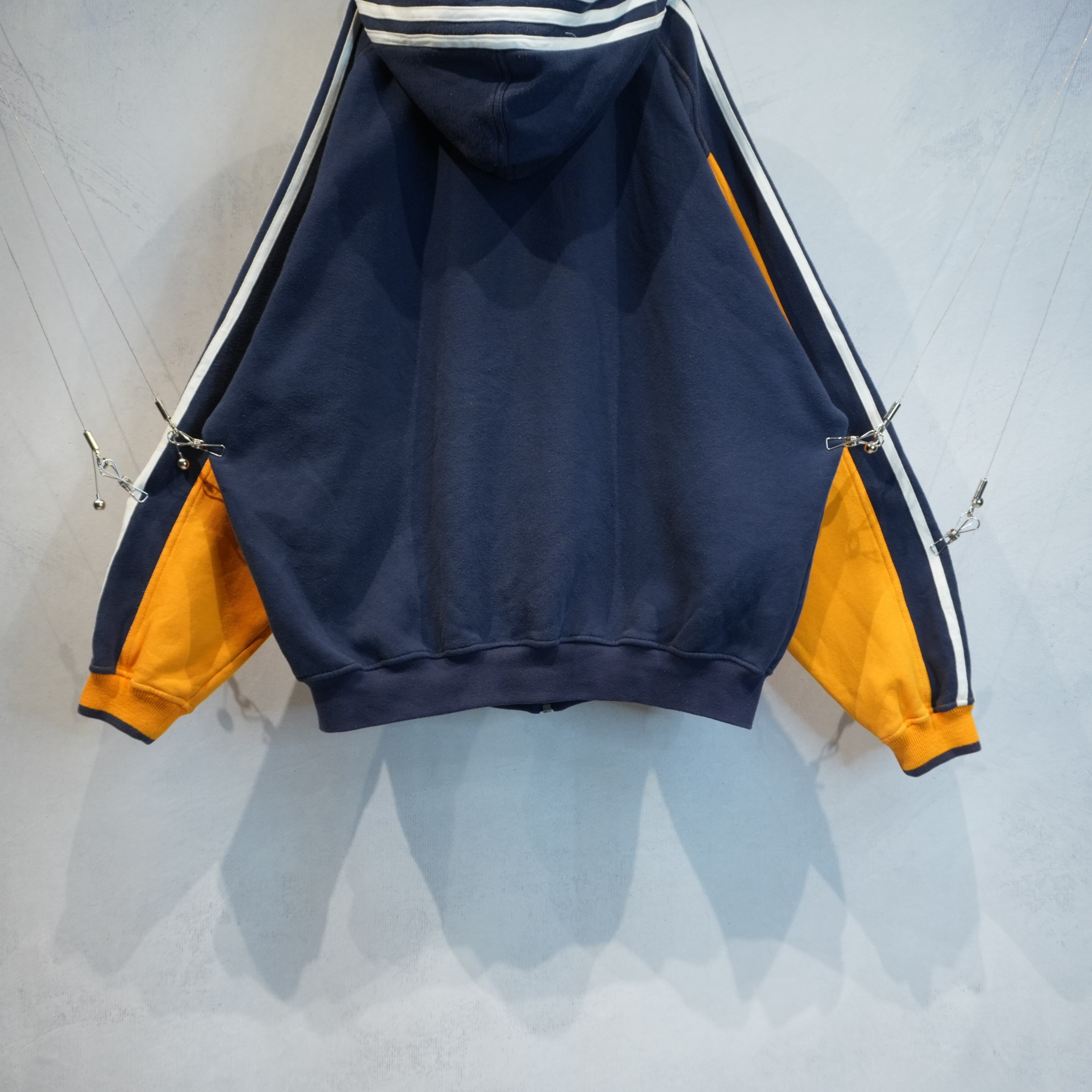 ネイビー×オレンジのスポーティーな切り替えの配色が目を惹くジップアップパーカー.