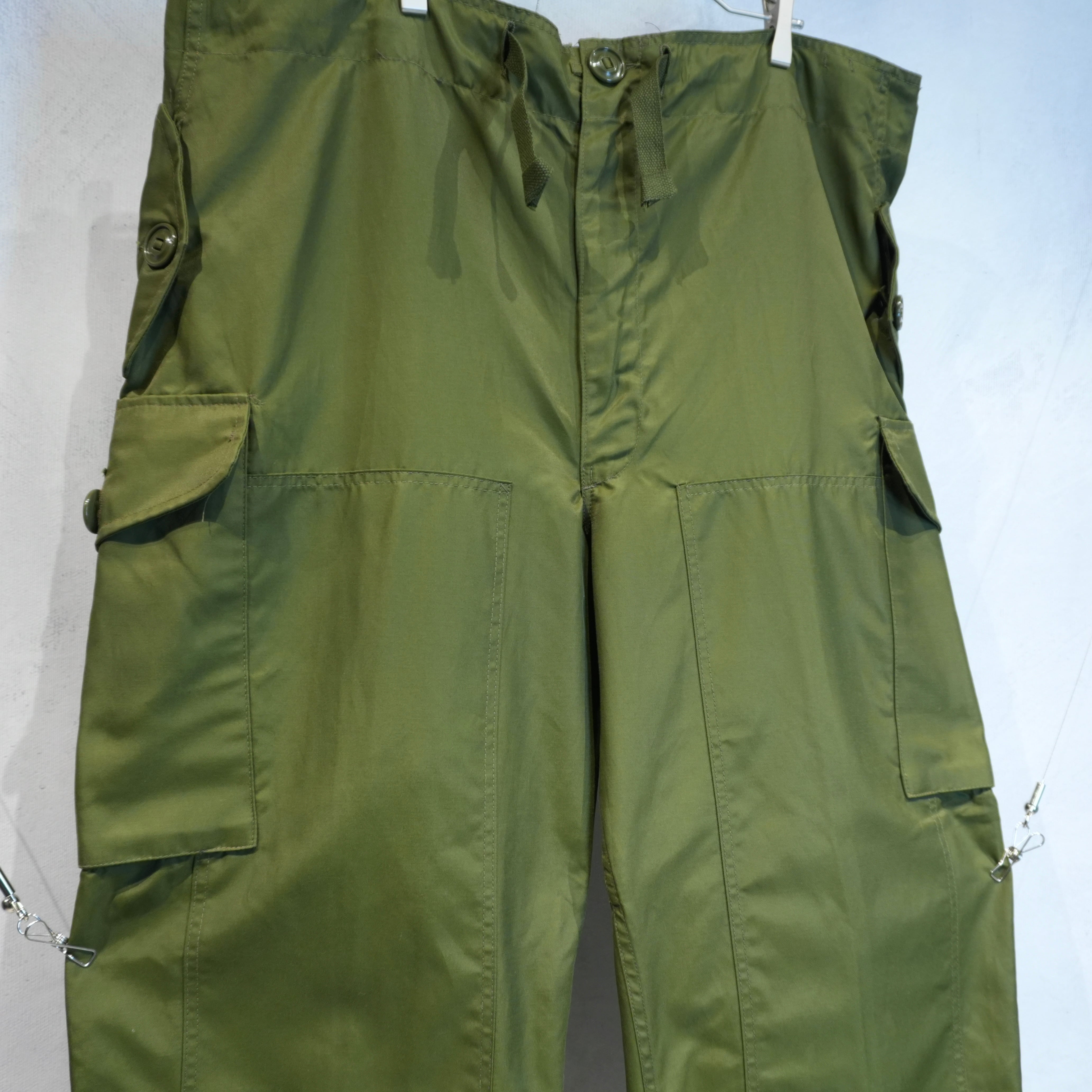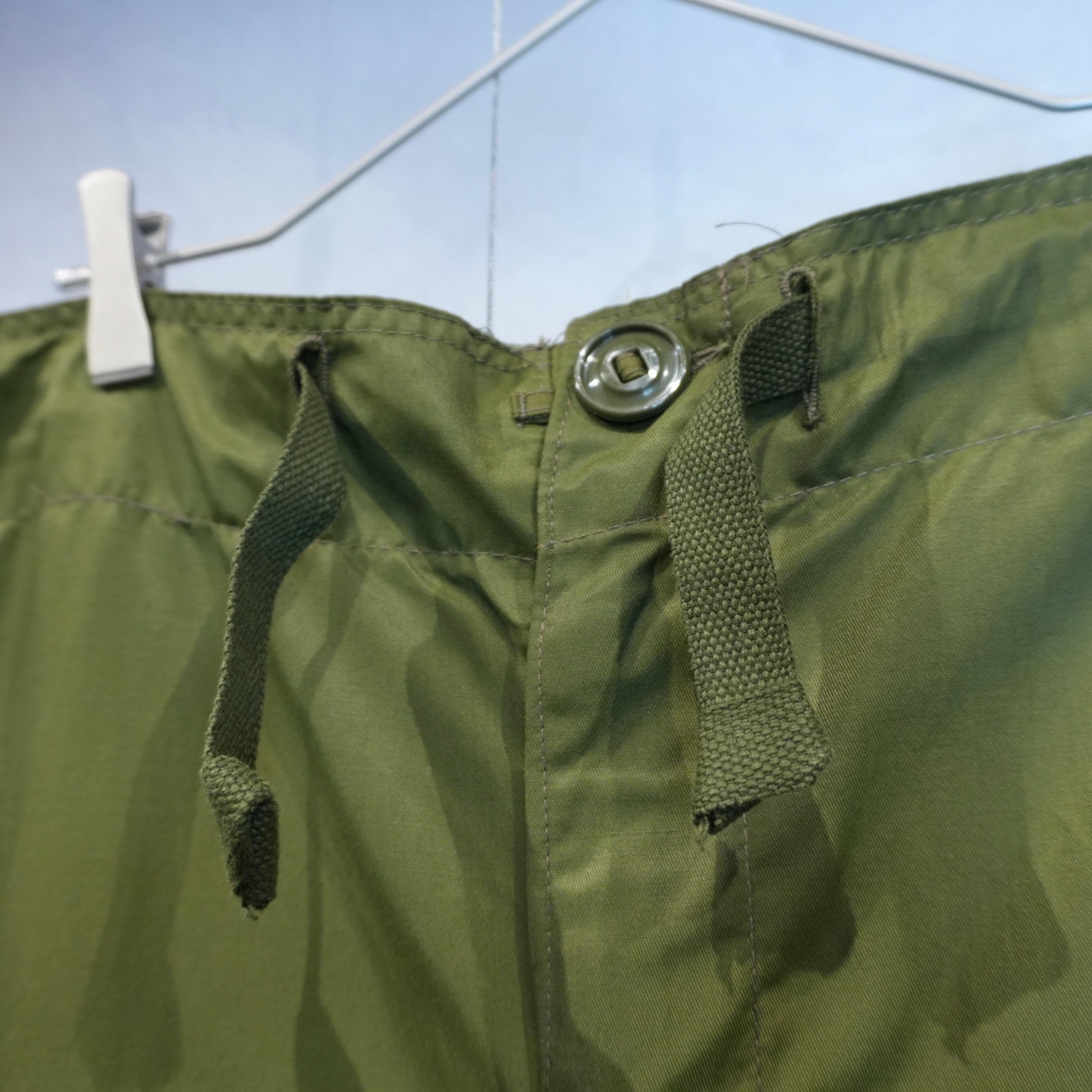 パラシュートパンツの特徴でもある、立体的なサイドポケットや膝部分に補強ステッチなどがしっかりと入った仕様.