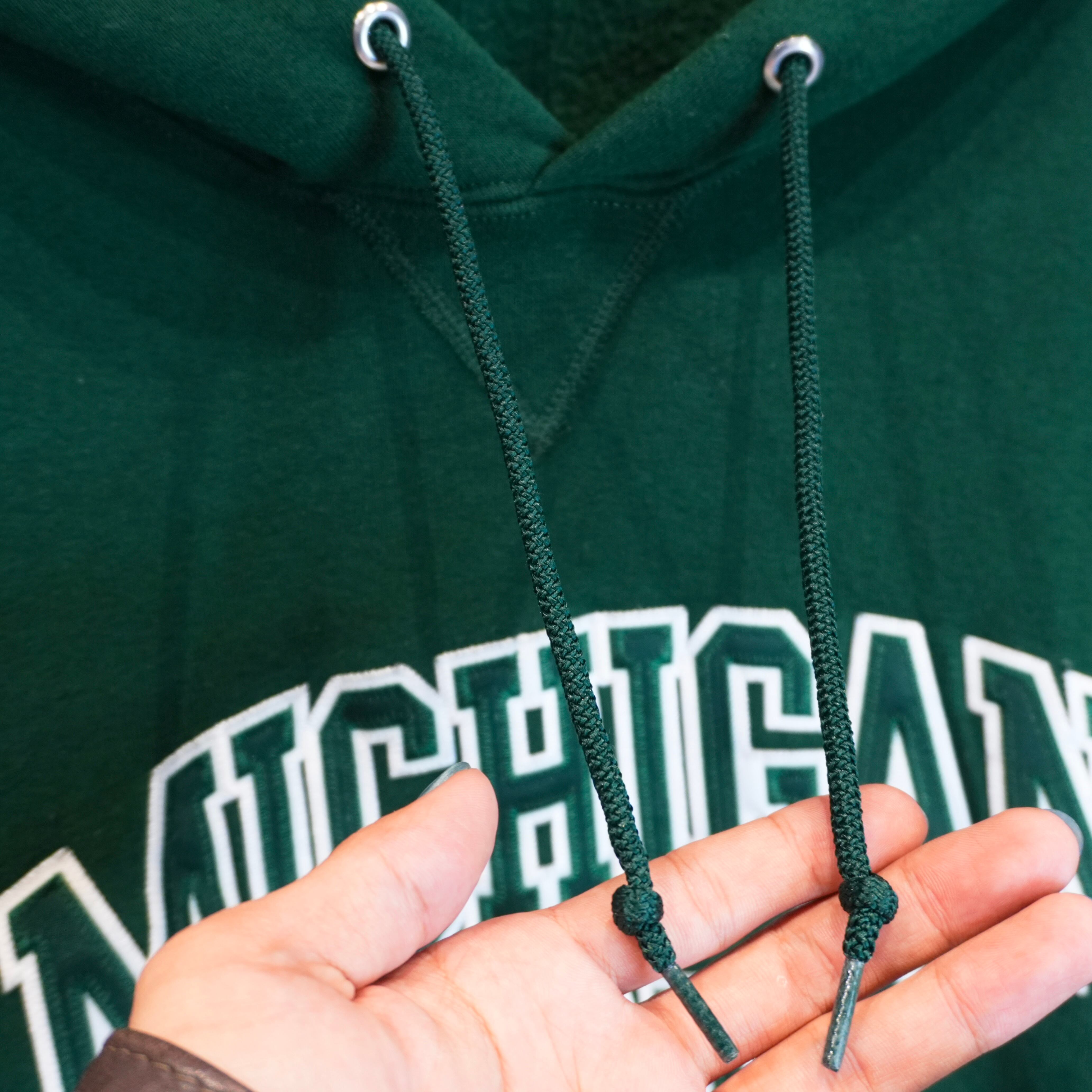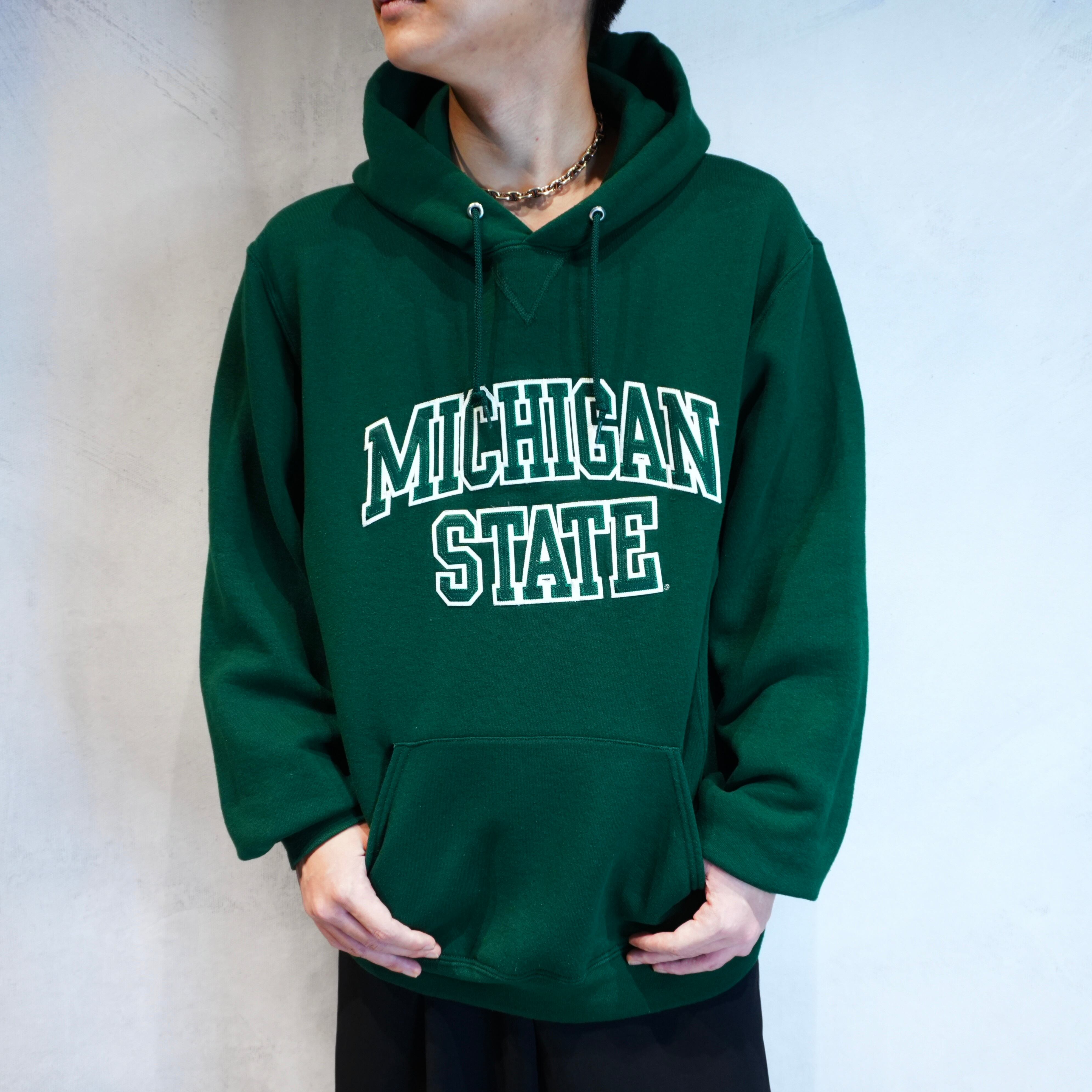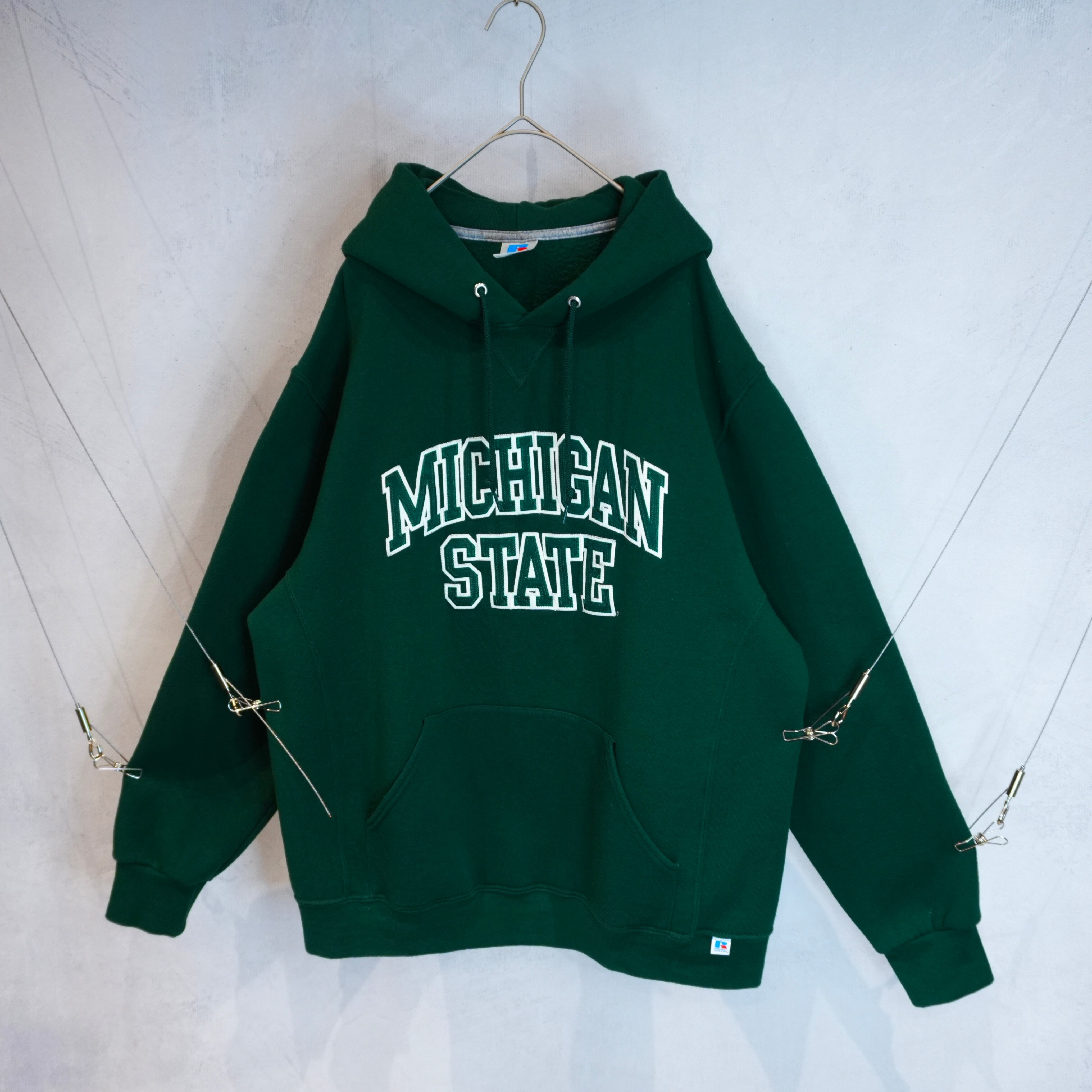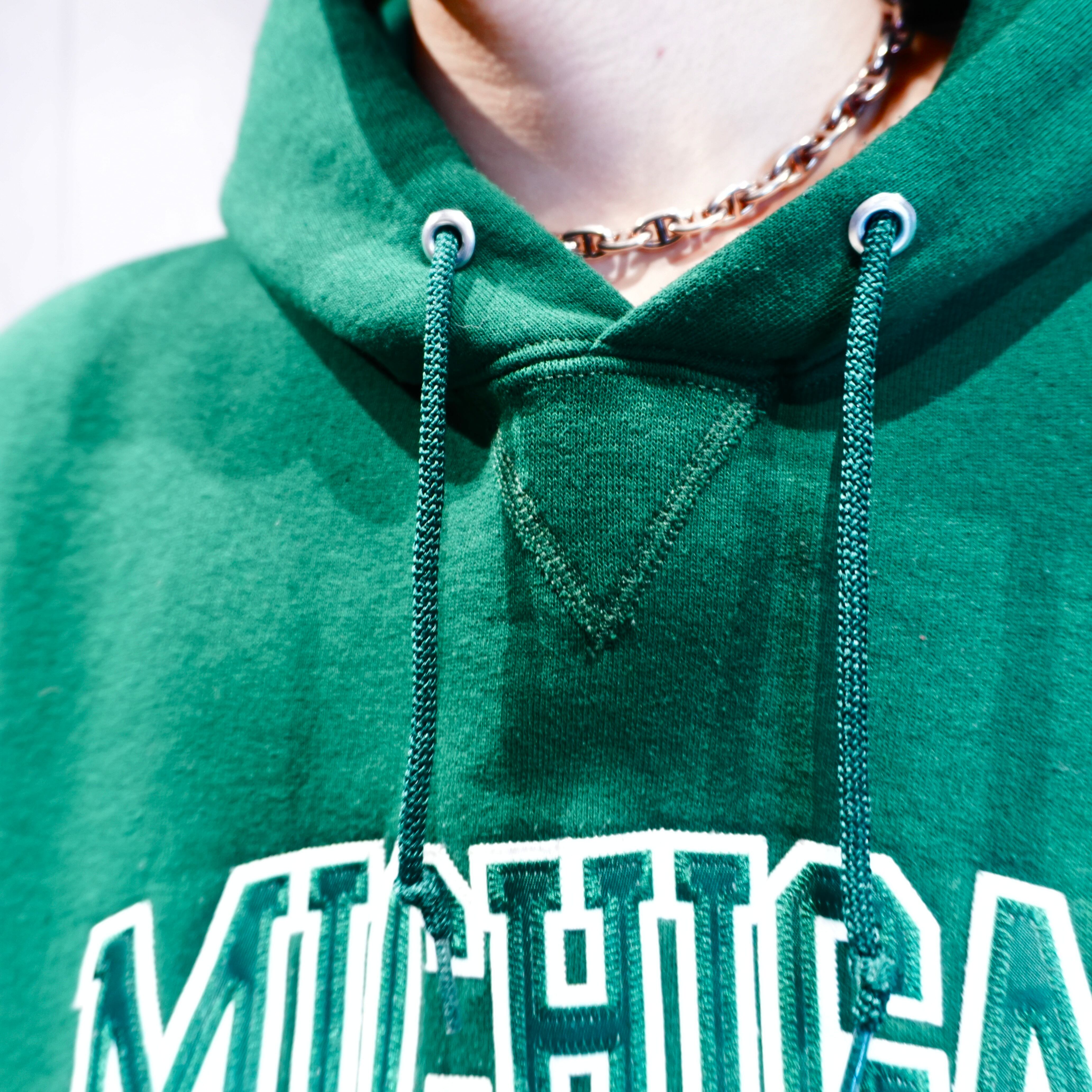 深みのある濃いグリーンカラーのカレッジロゴパーカーの入荷です.
