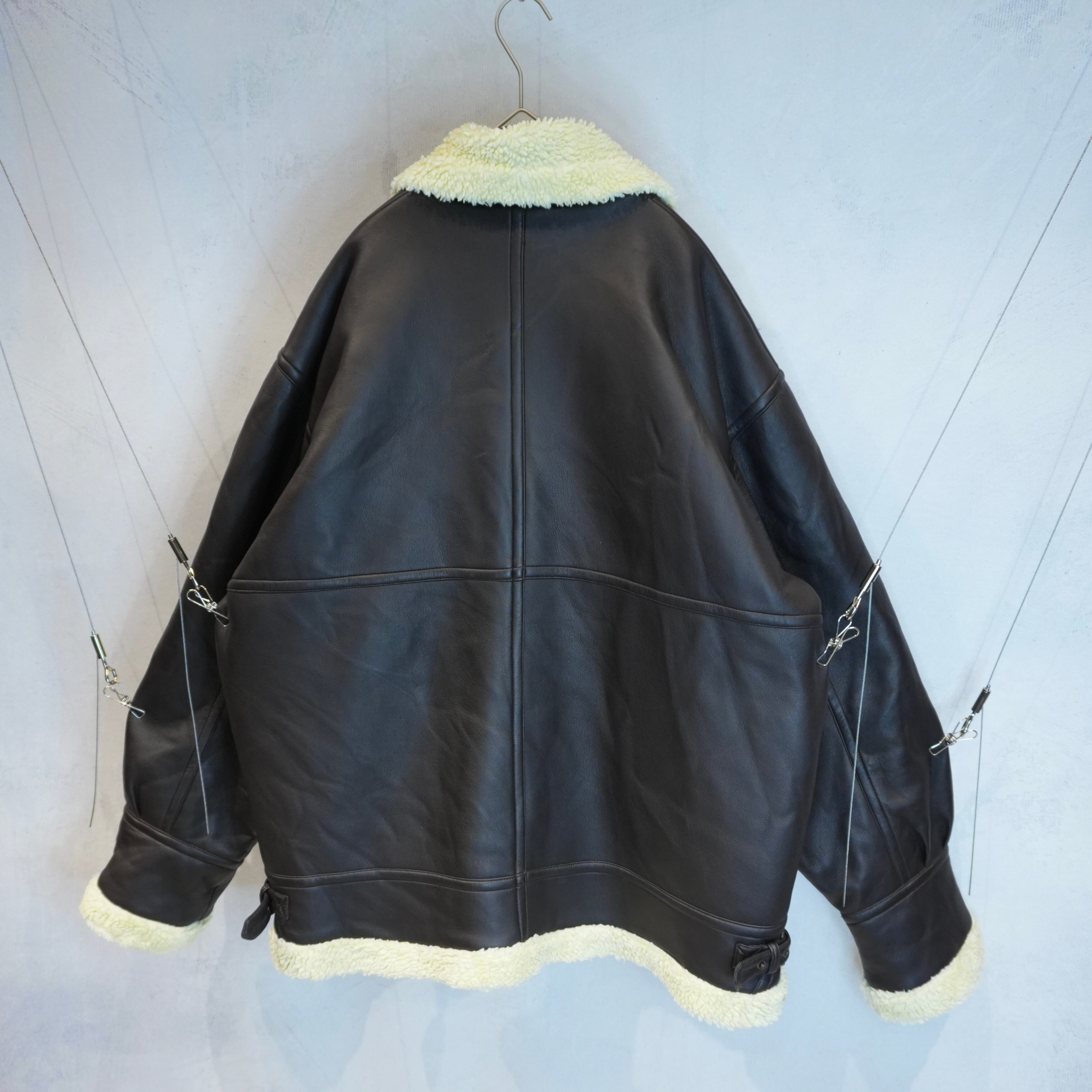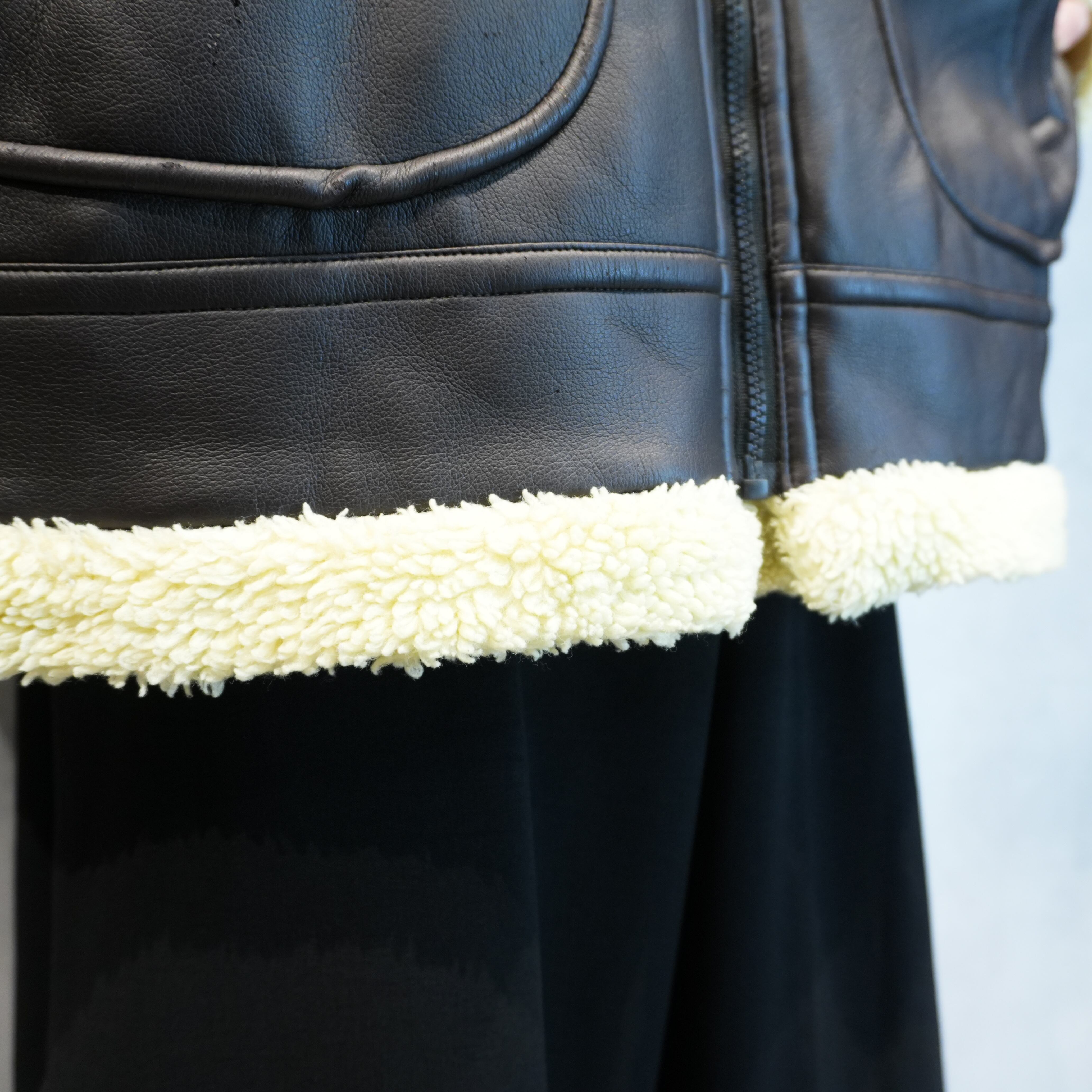 深みのある焦げ茶レザーに、クリームトーンのボアを合わせたムートンジャケット.