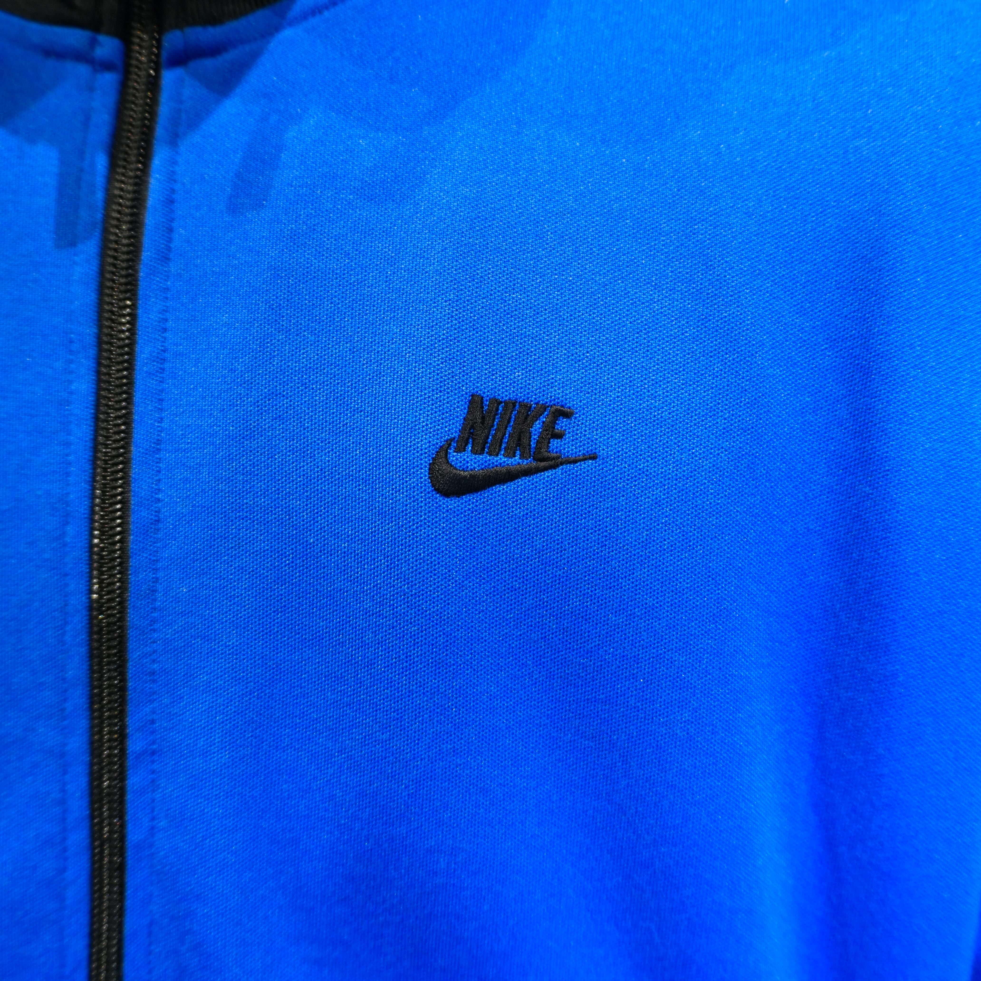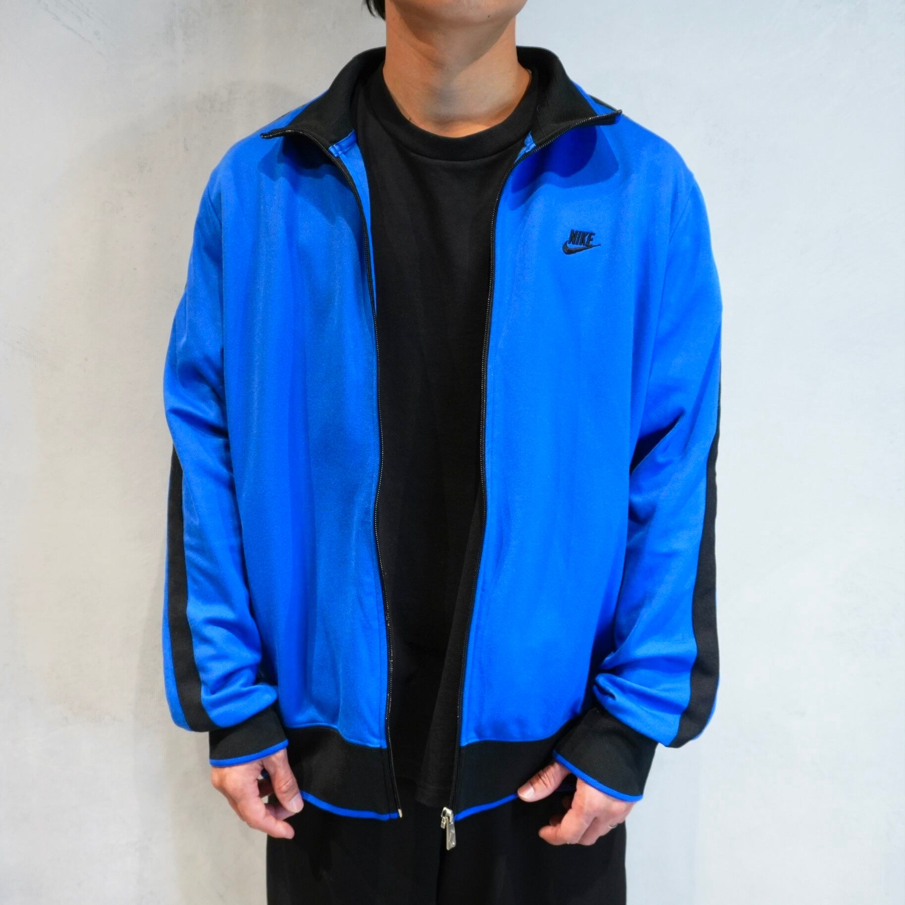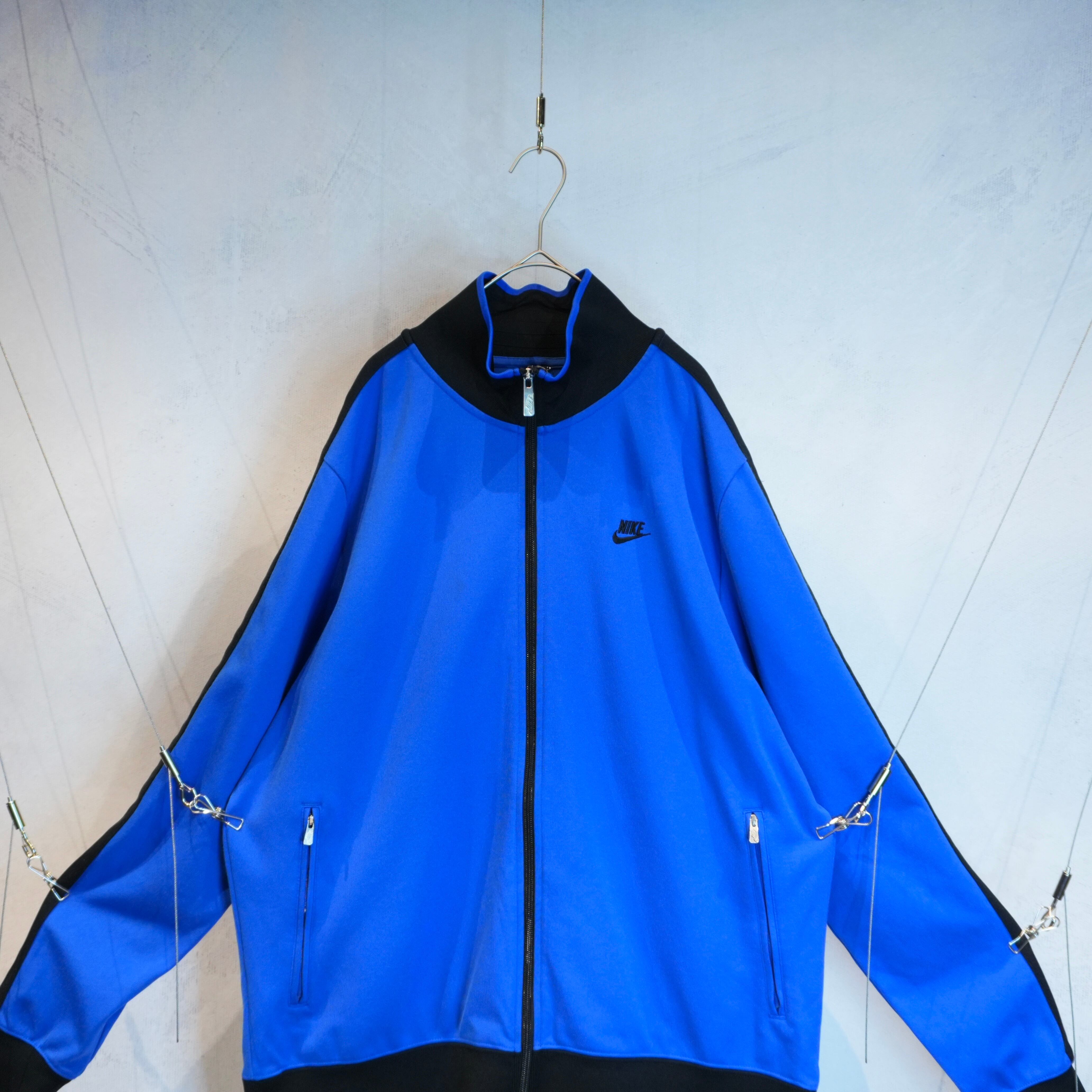 " 'NIKE' over silhouette bi-color switching bright blue design track jacket "
