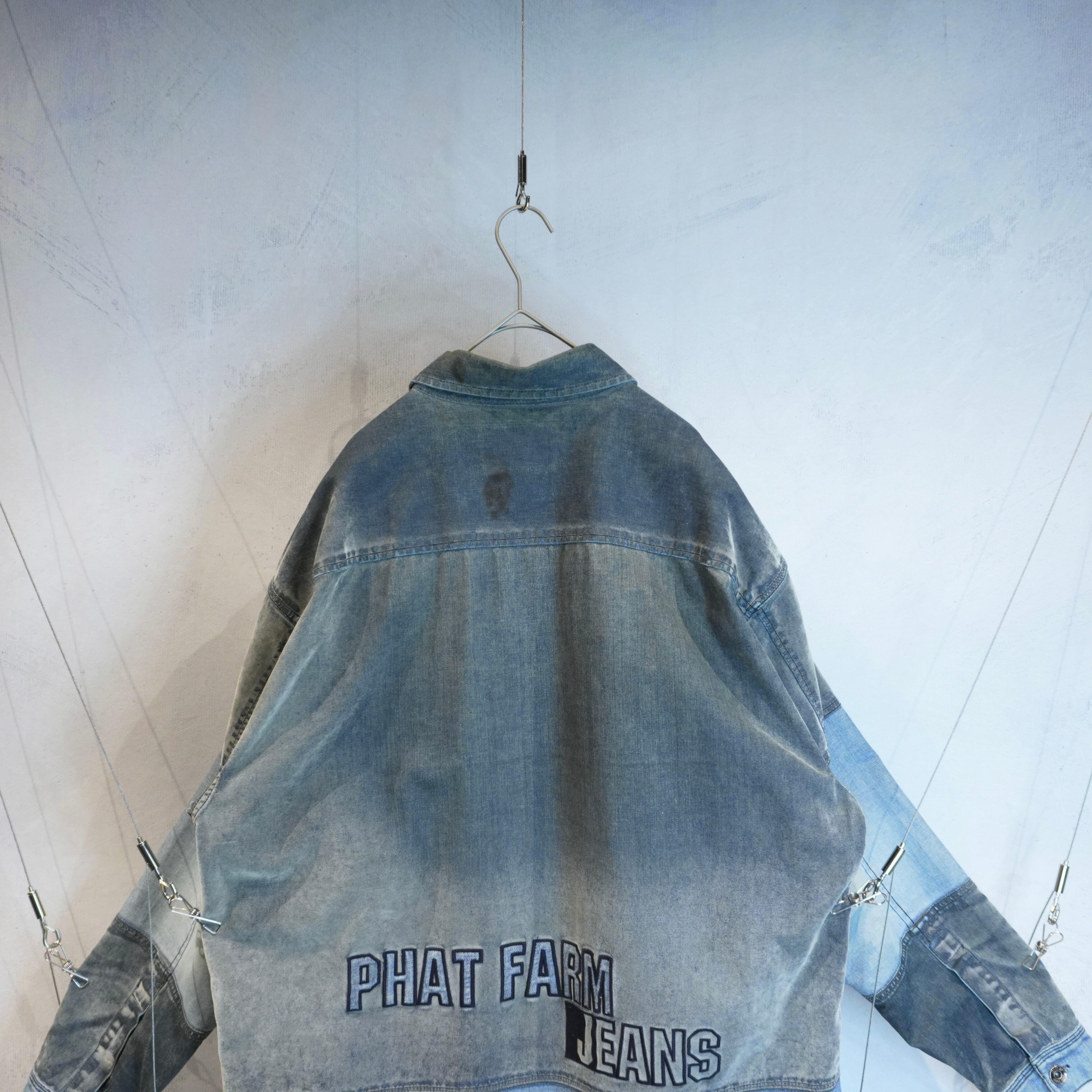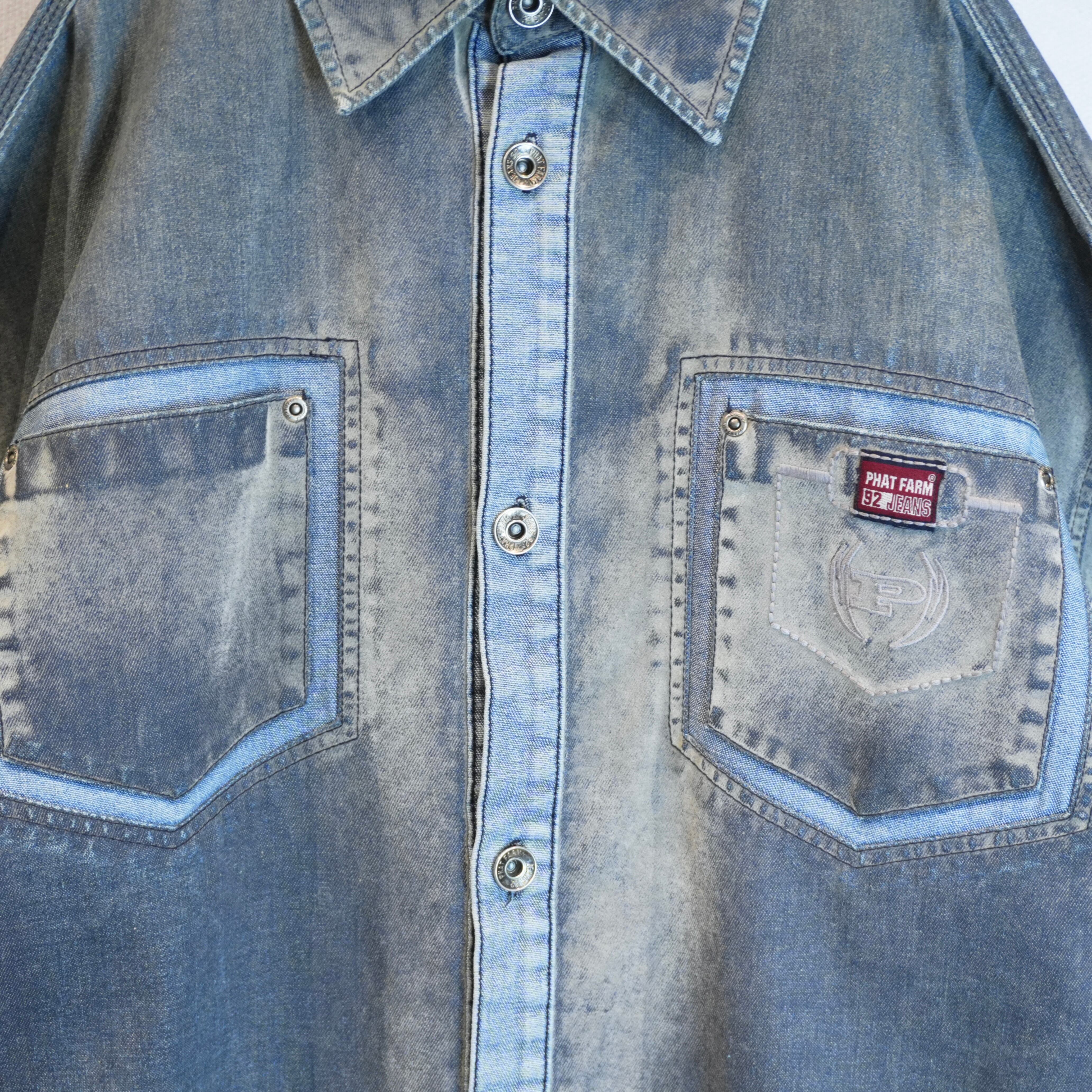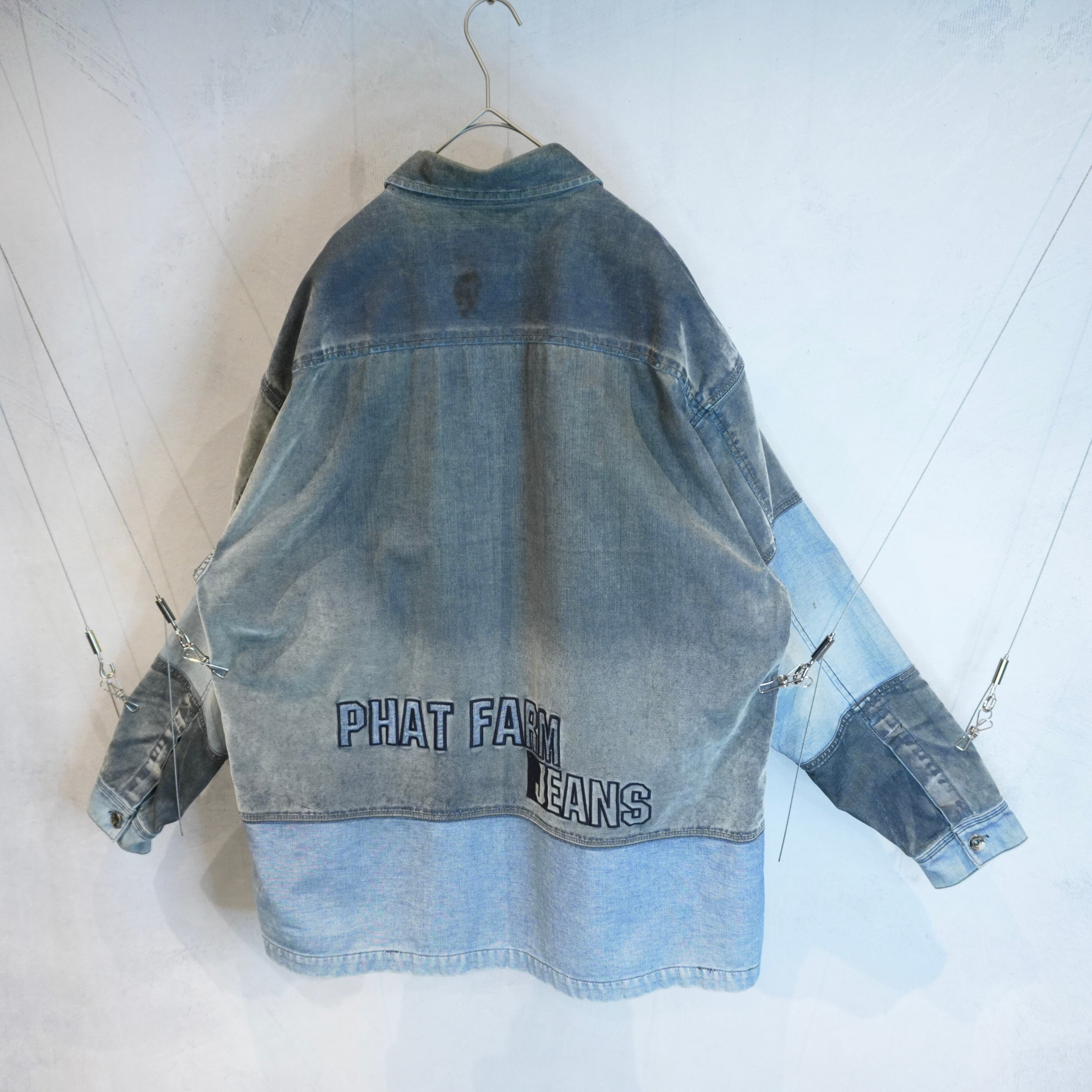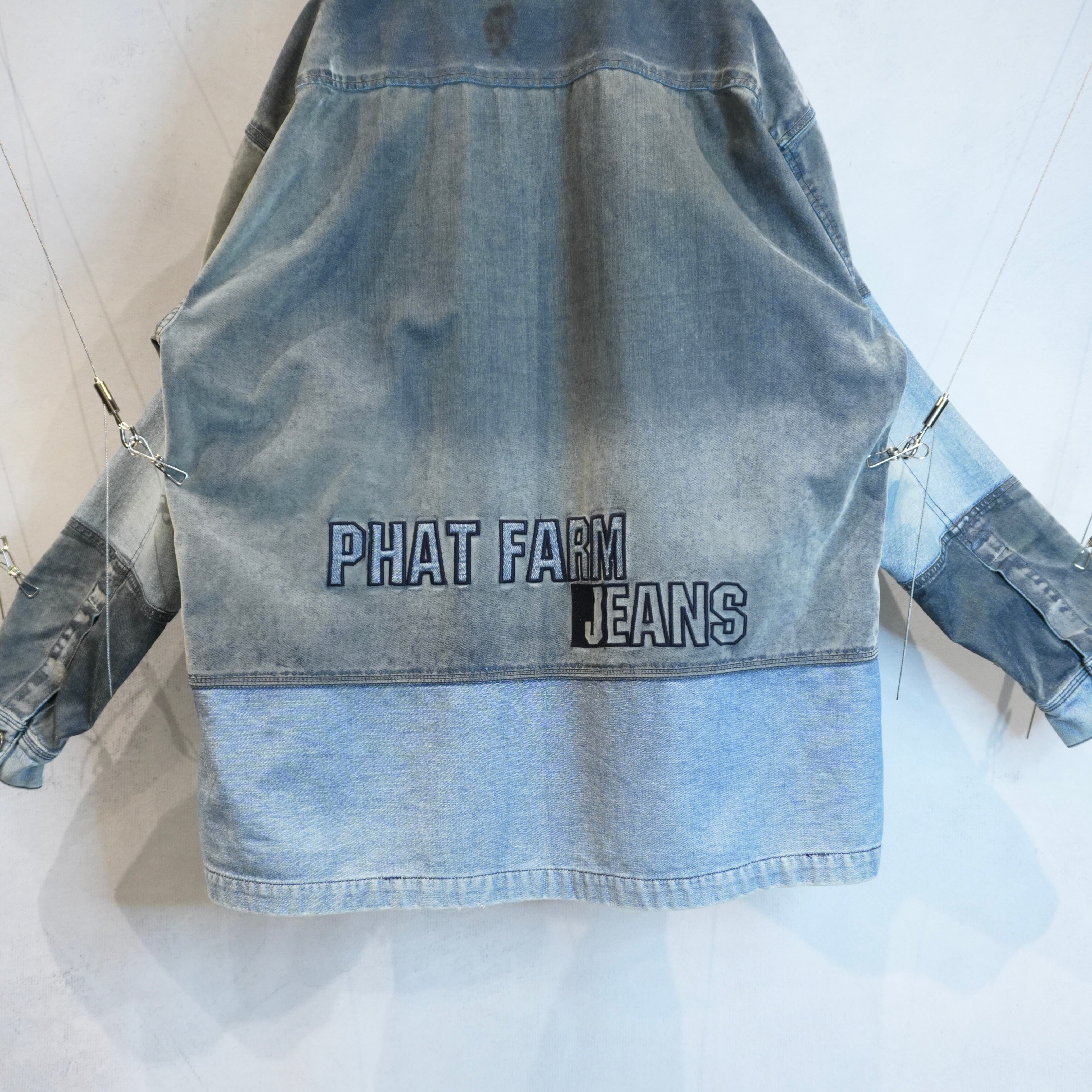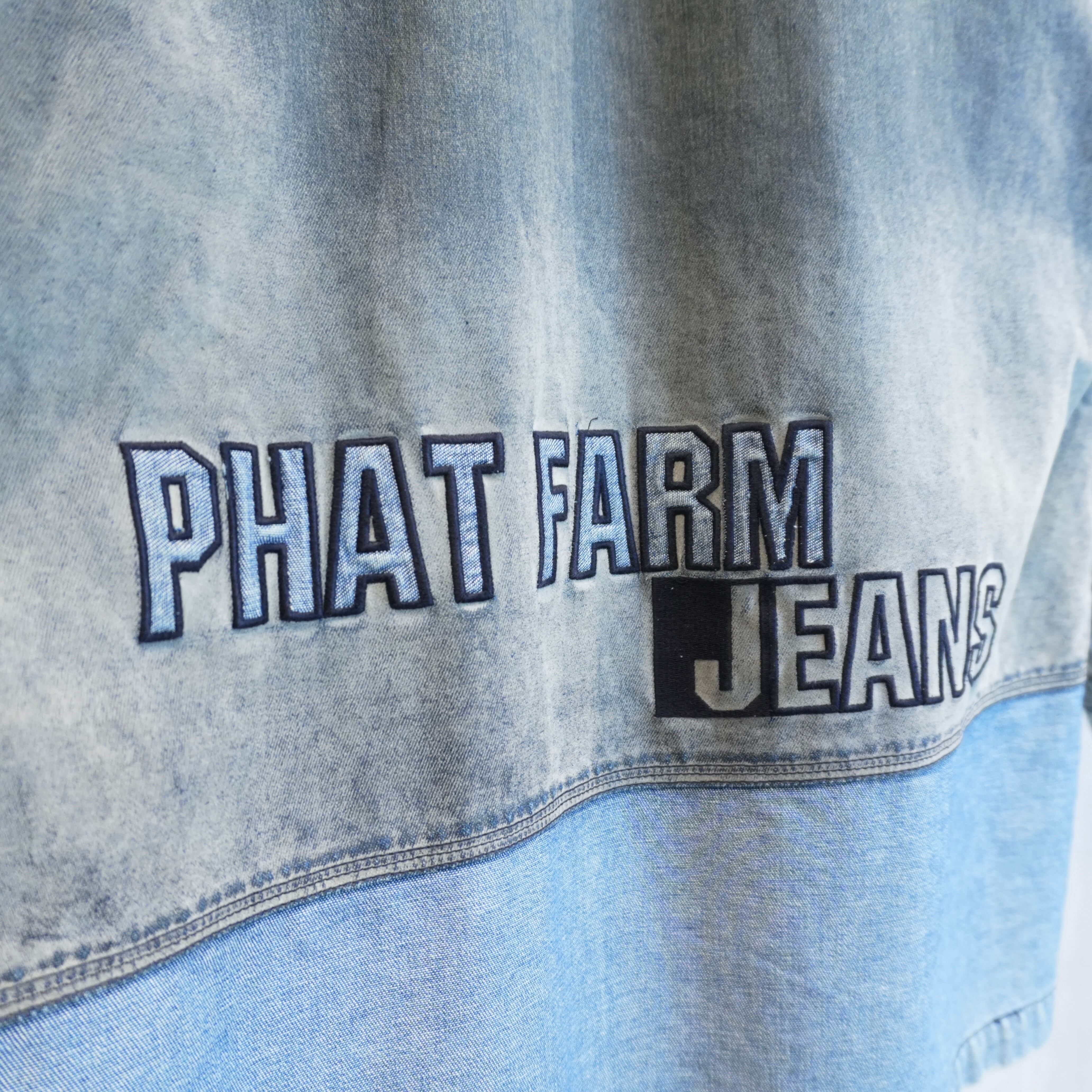 フロント部分はワークシャツのような無骨さがあり、バックには大胆に入る 'PHAT FARM JEANS' のロゴ刺繍.