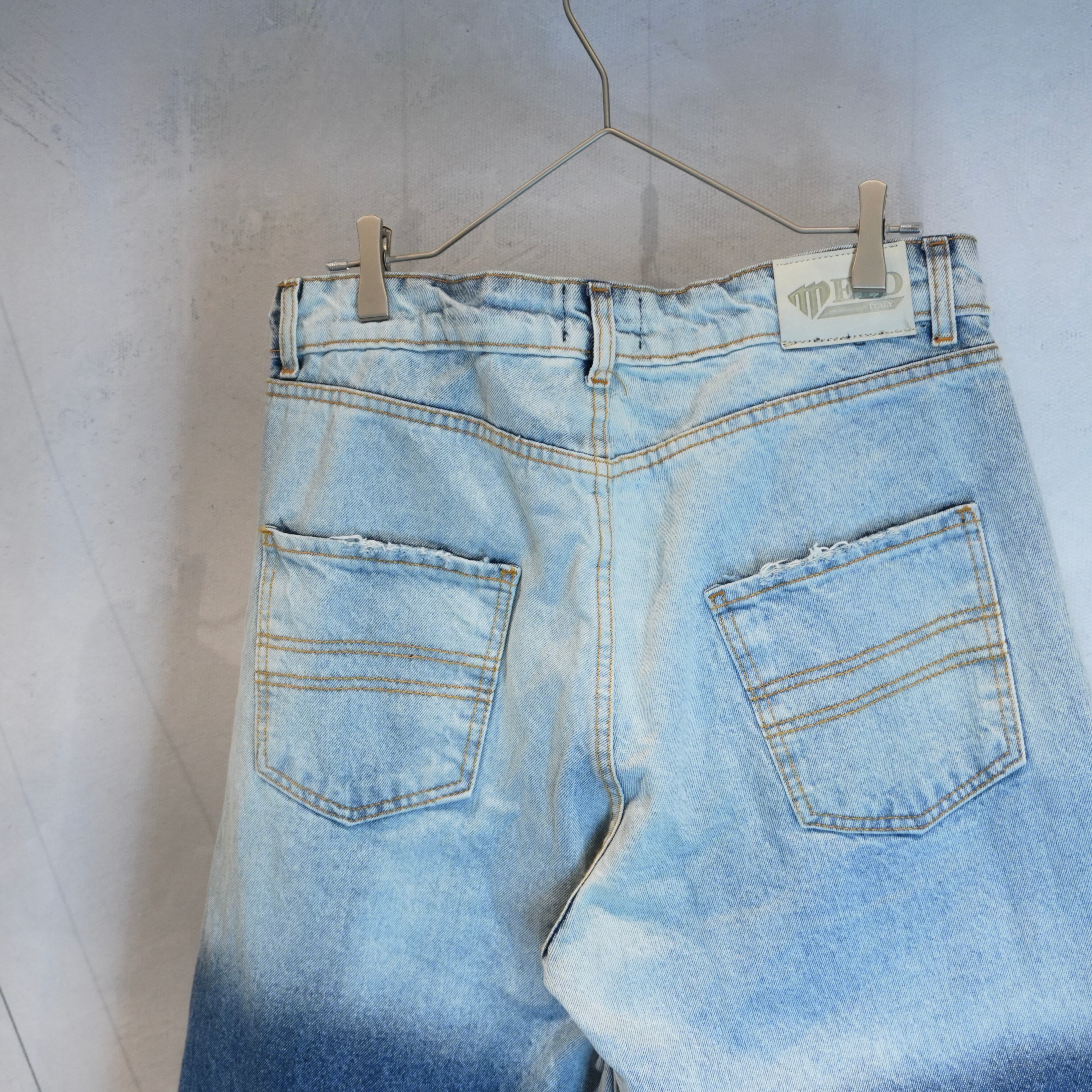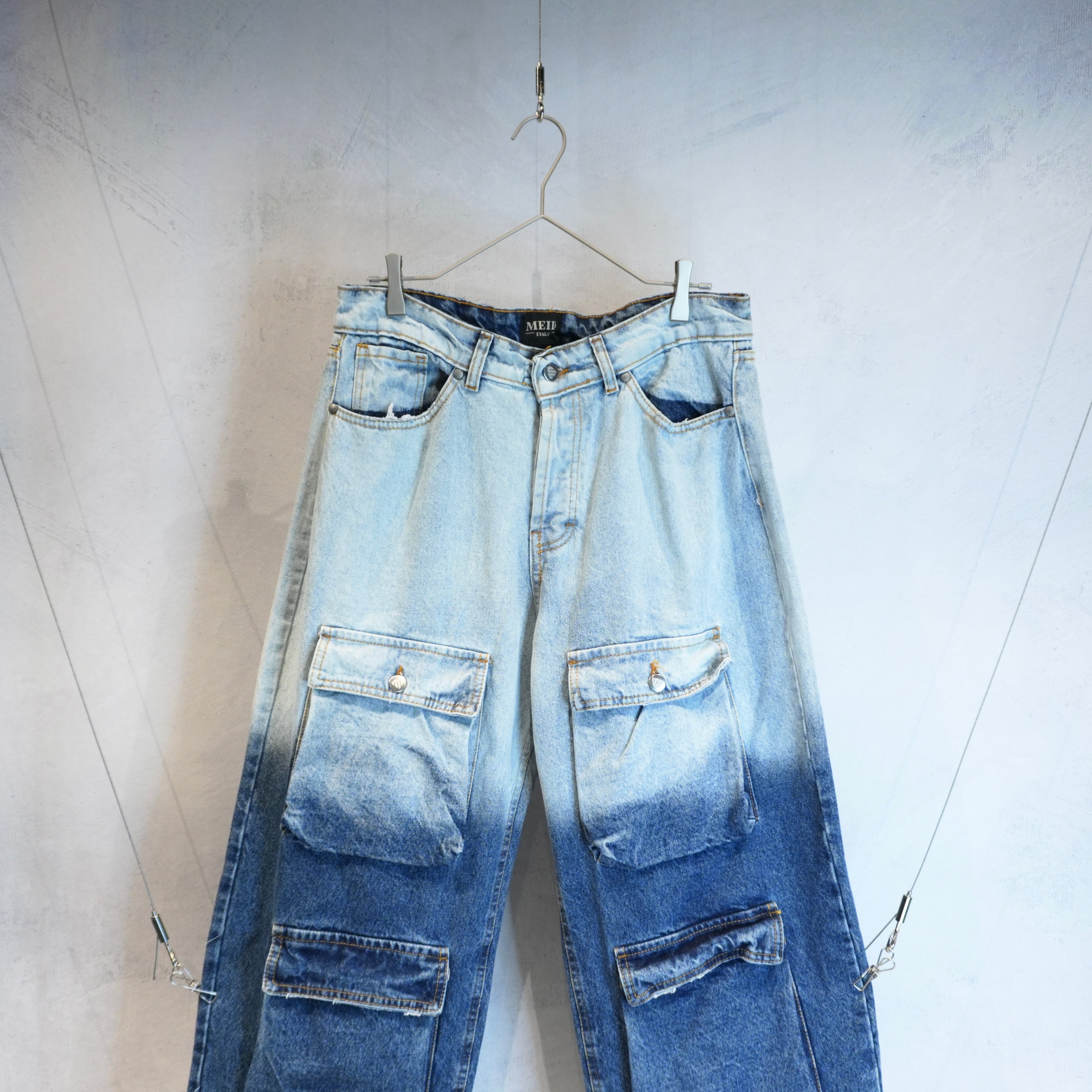 " 'MAID italy' wide silhouette 2-torn color mulch pocket denim pants "