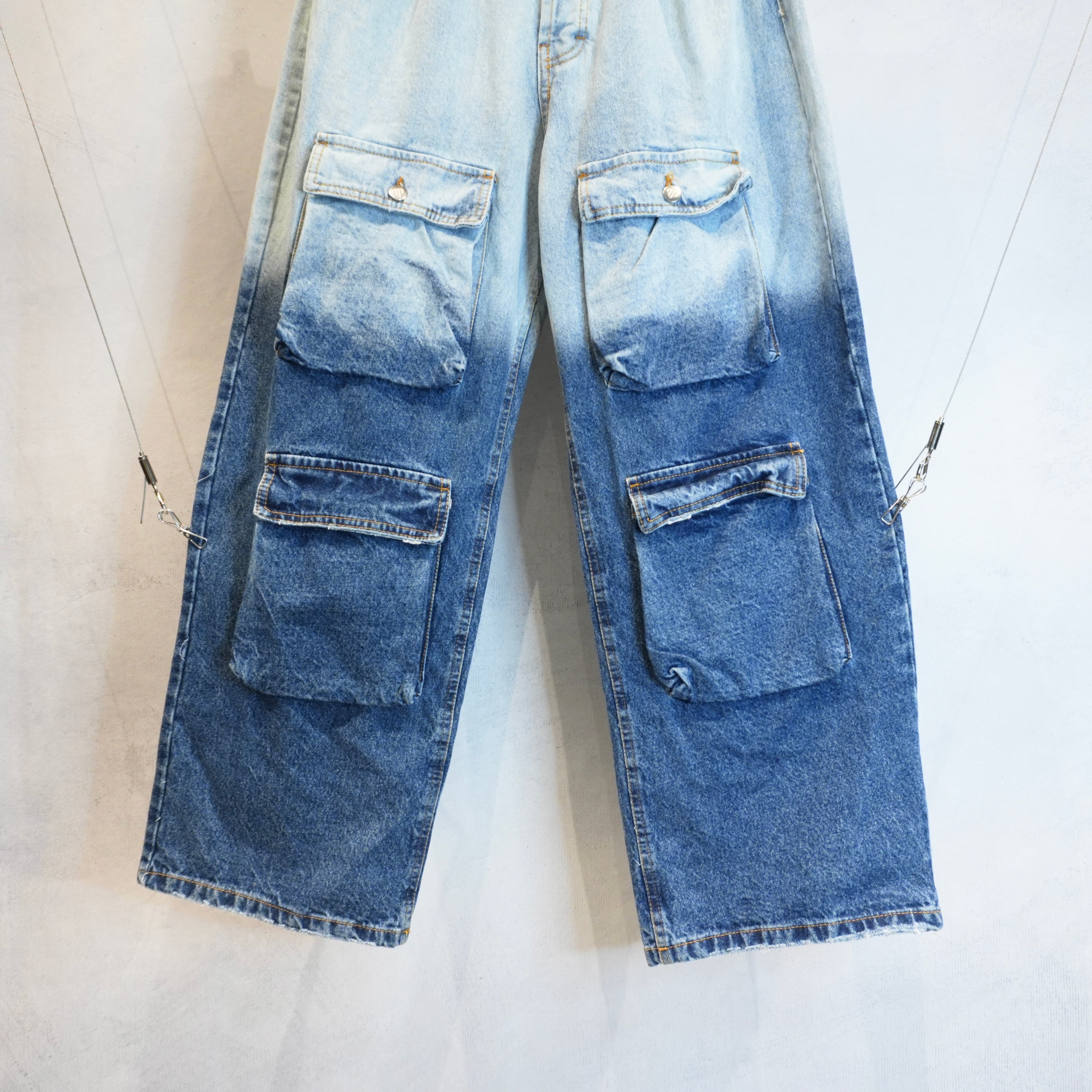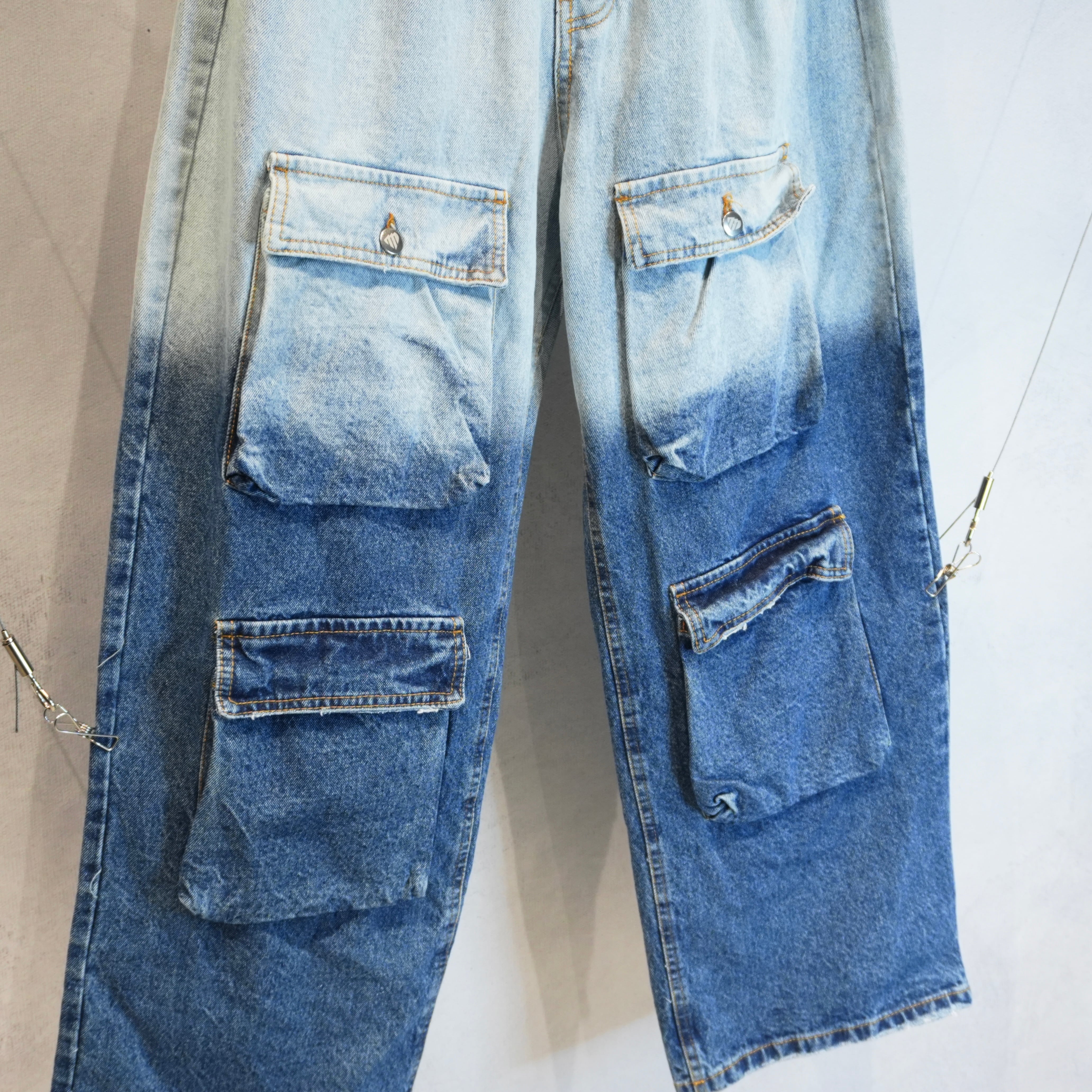 グラデーションカラーが特徴的なデザインマルチポケットワイドデニムの入荷.