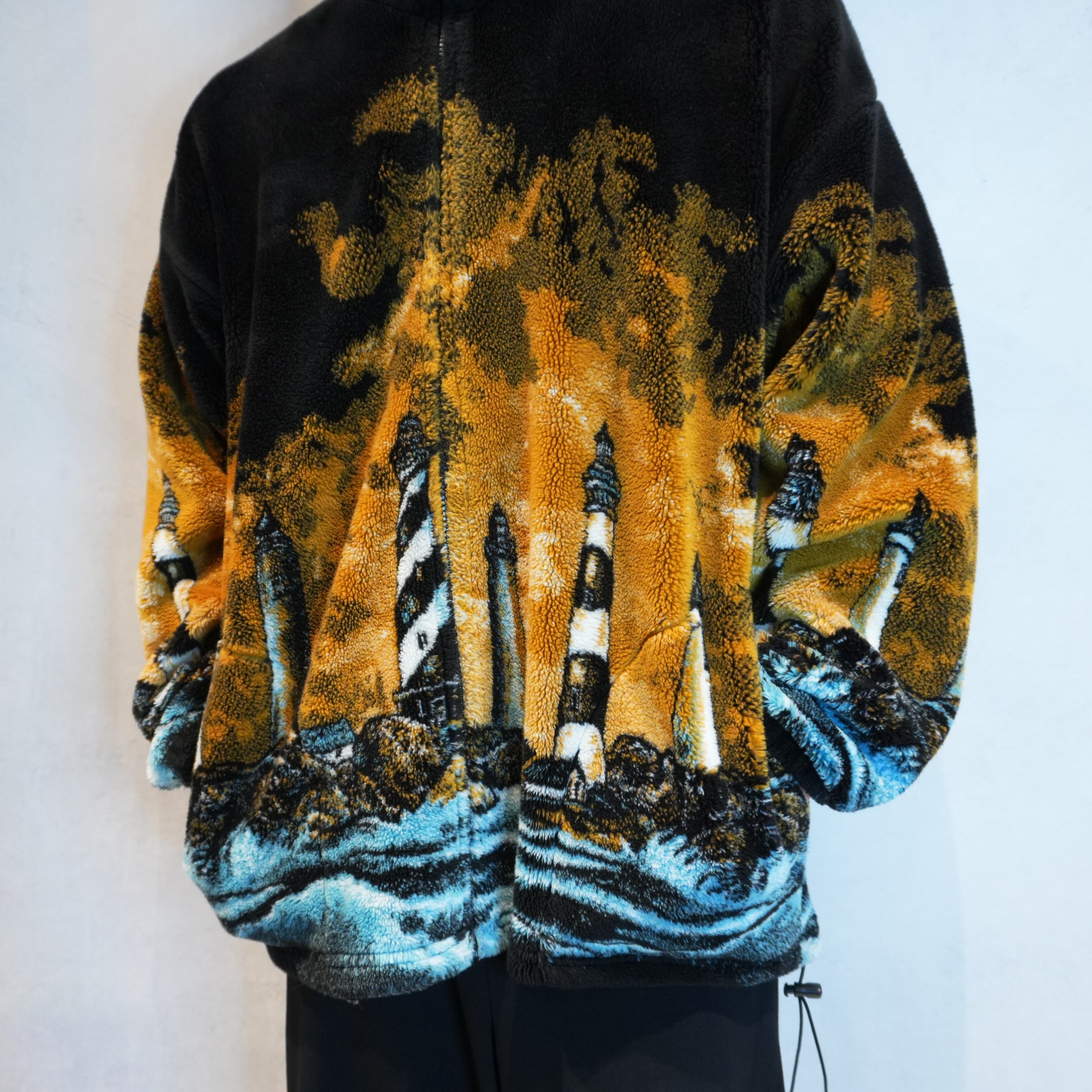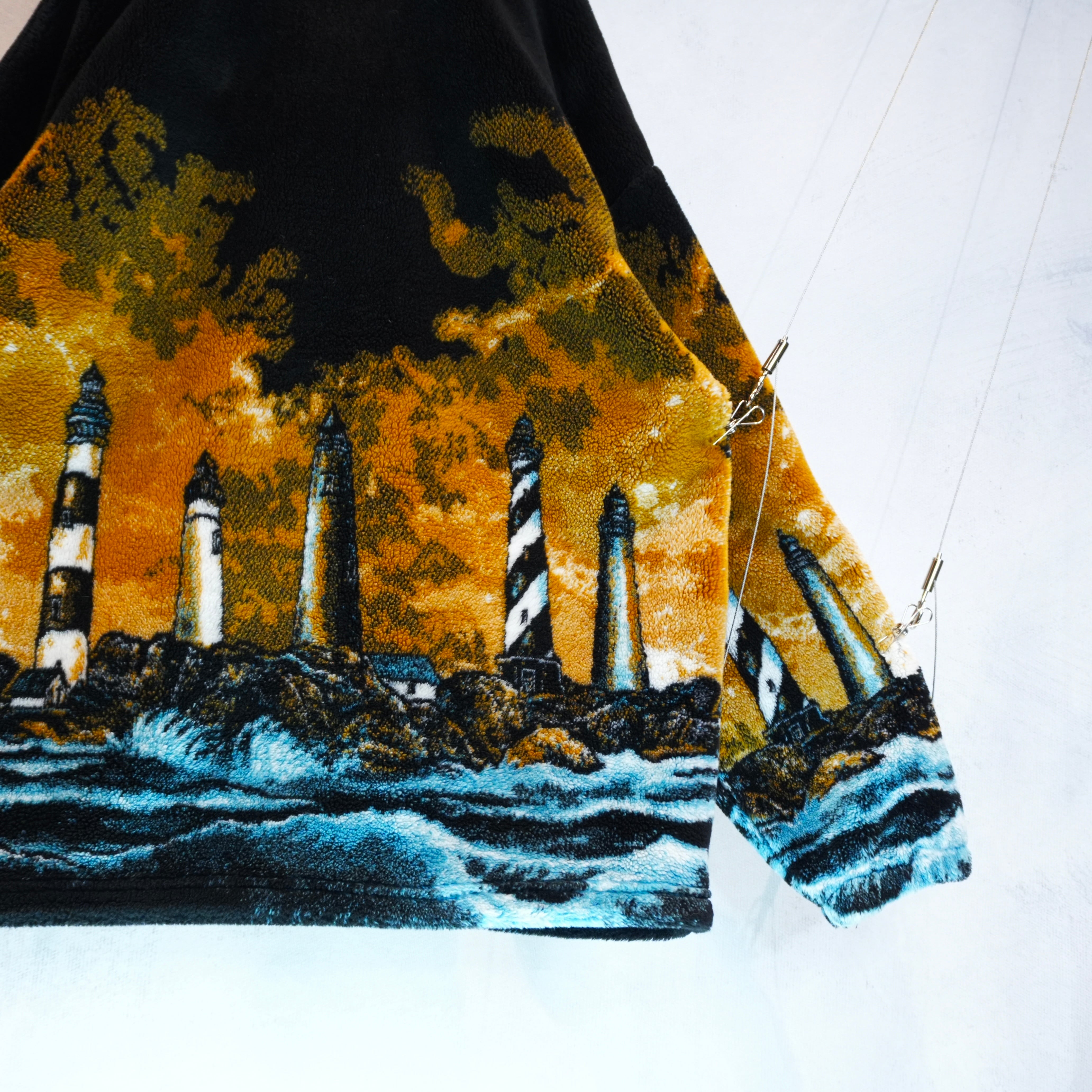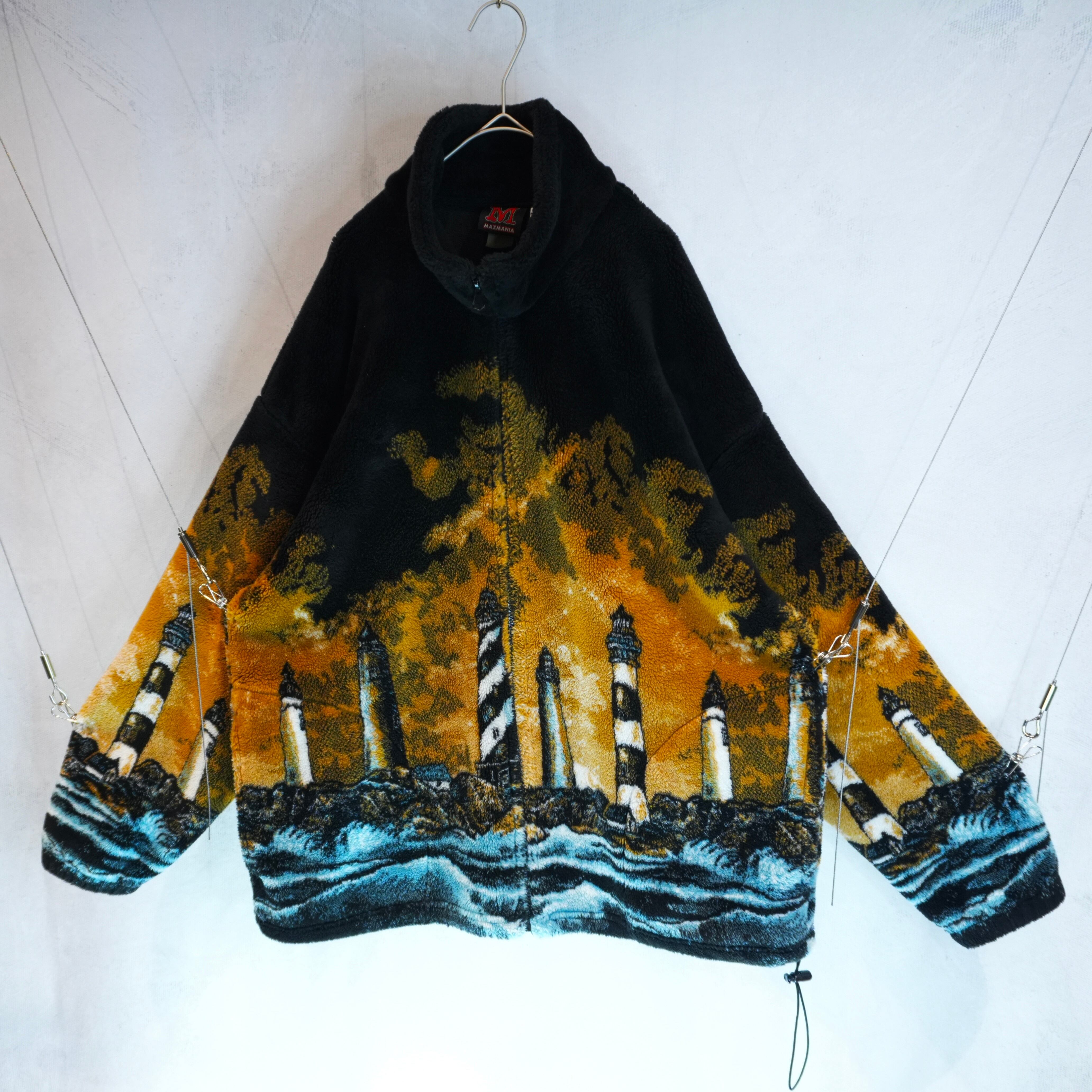 " 90s 'Mazmania' good silhouette ' lighthouse pattern ' design fleece jacket "