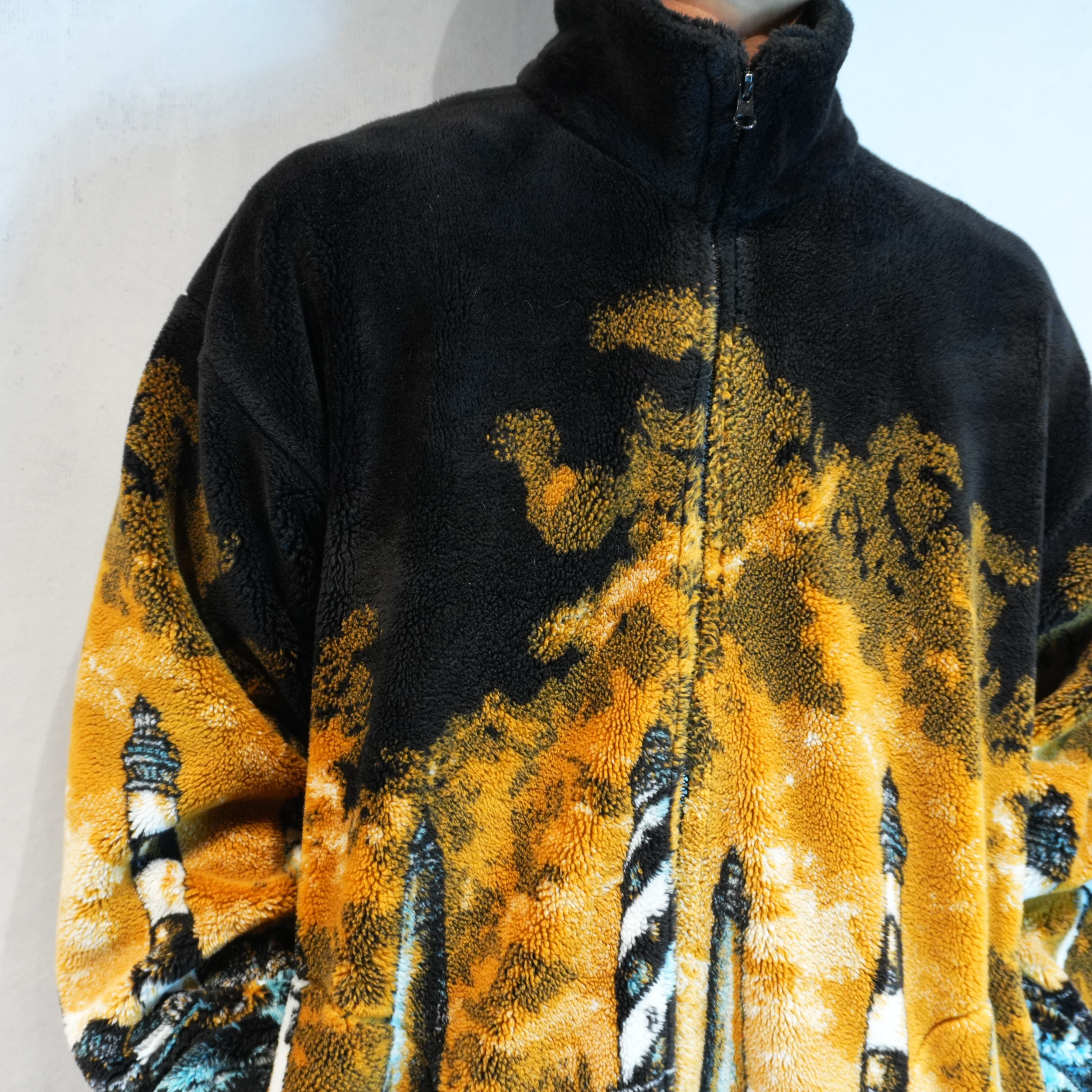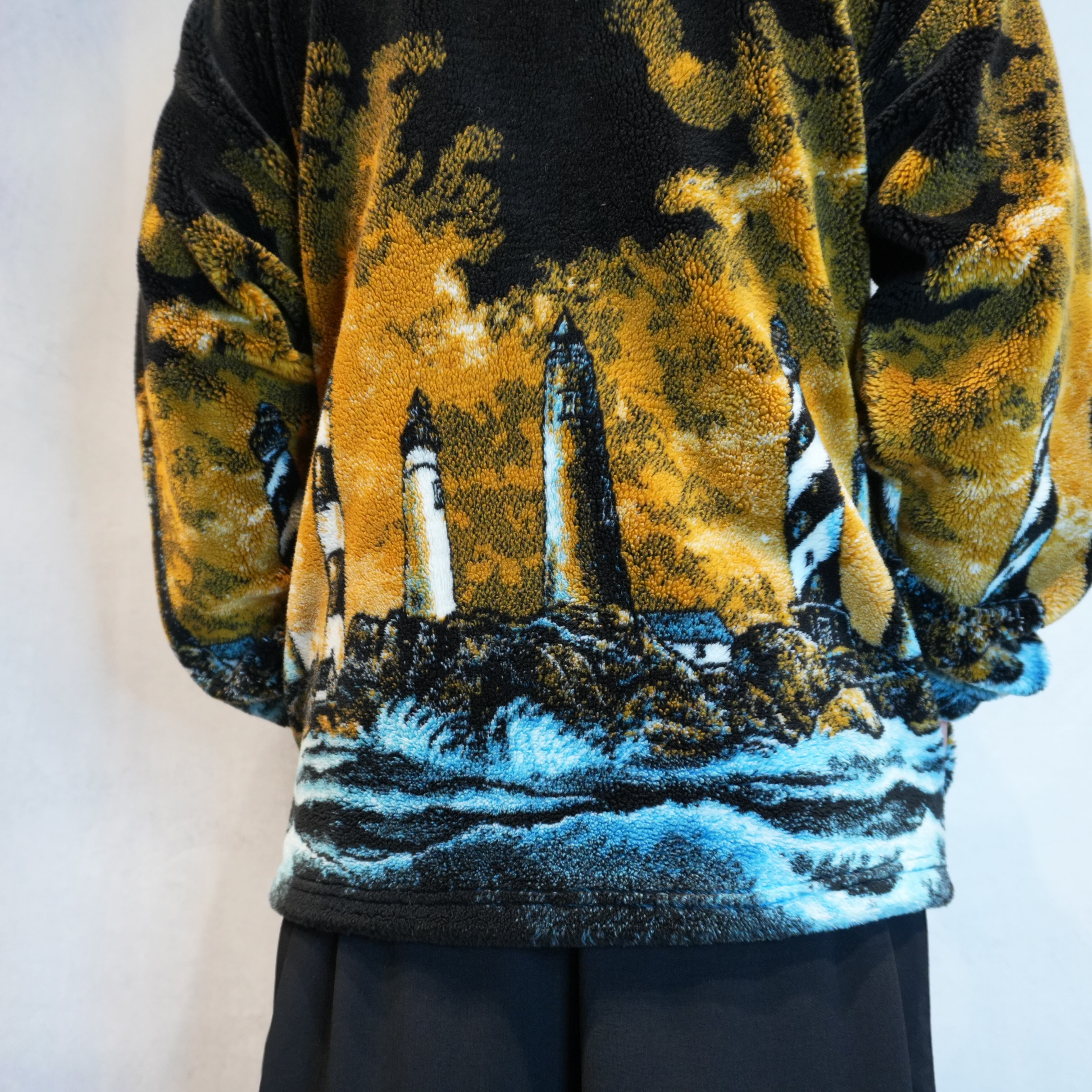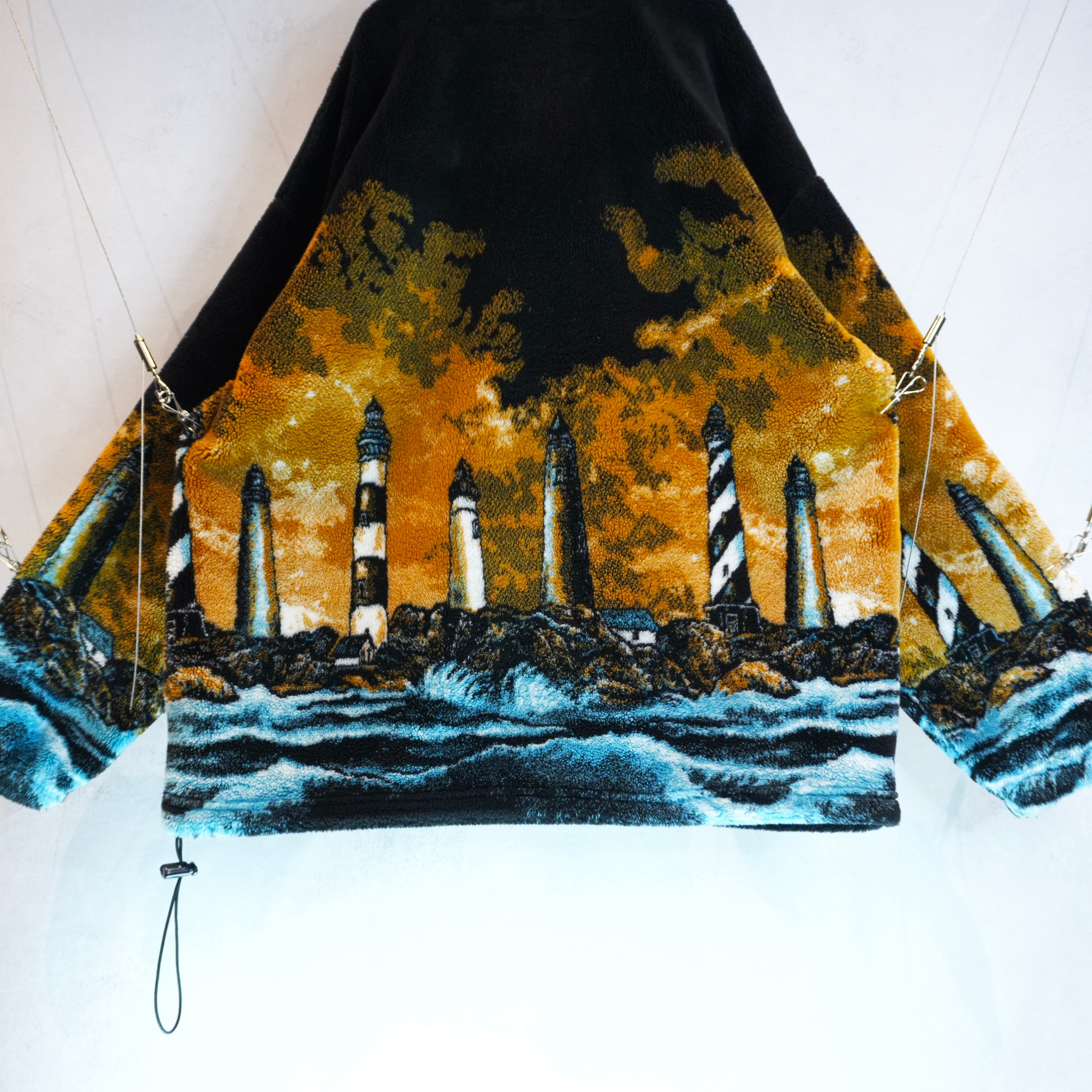 " 90s 'Mazmania' good silhouette ' lighthouse pattern ' design fleece jacket "