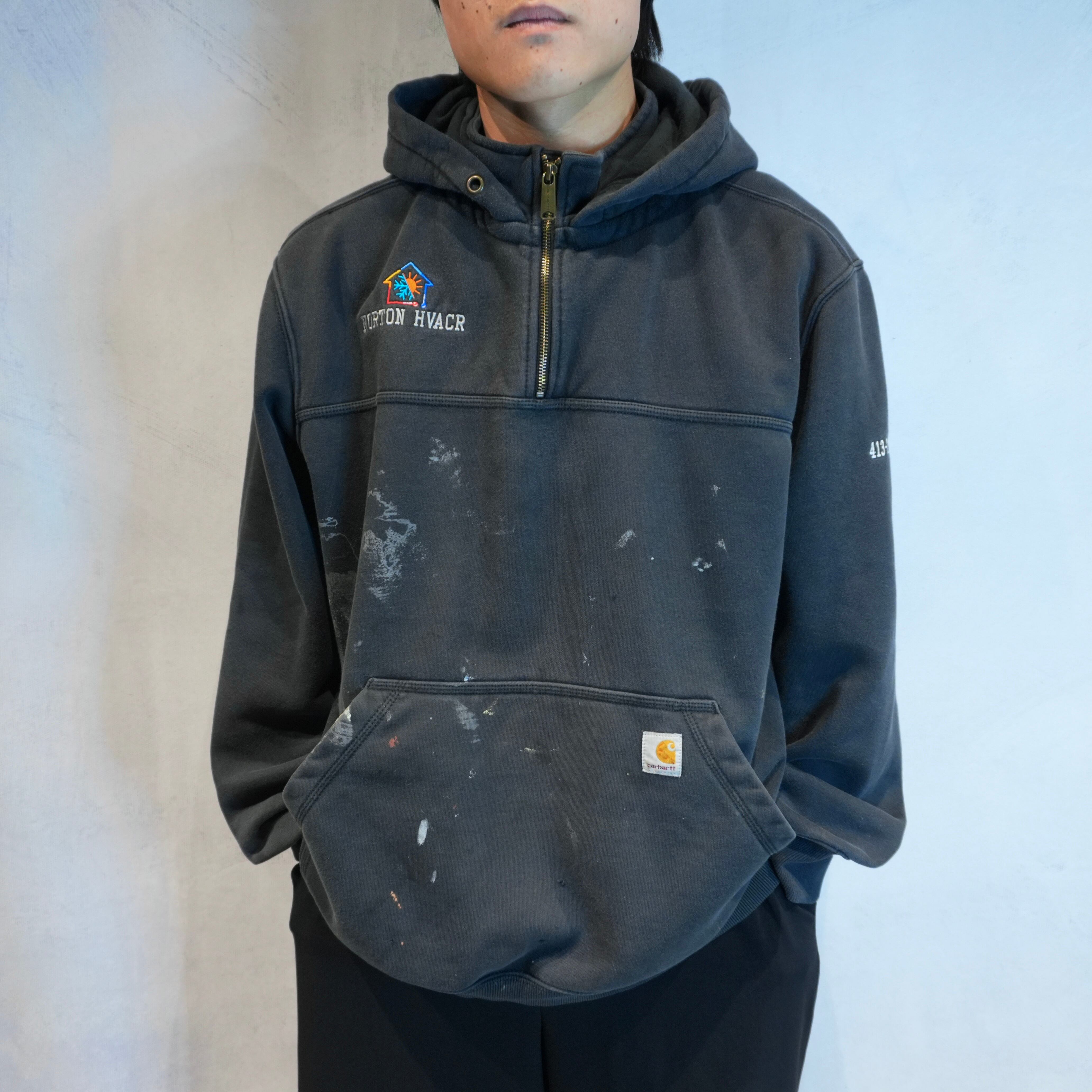 空調・暖房・冷房設備(HVAC)関連の企業ロゴが胸元に入った ' Carhartt ' ハーフジップパーカー.