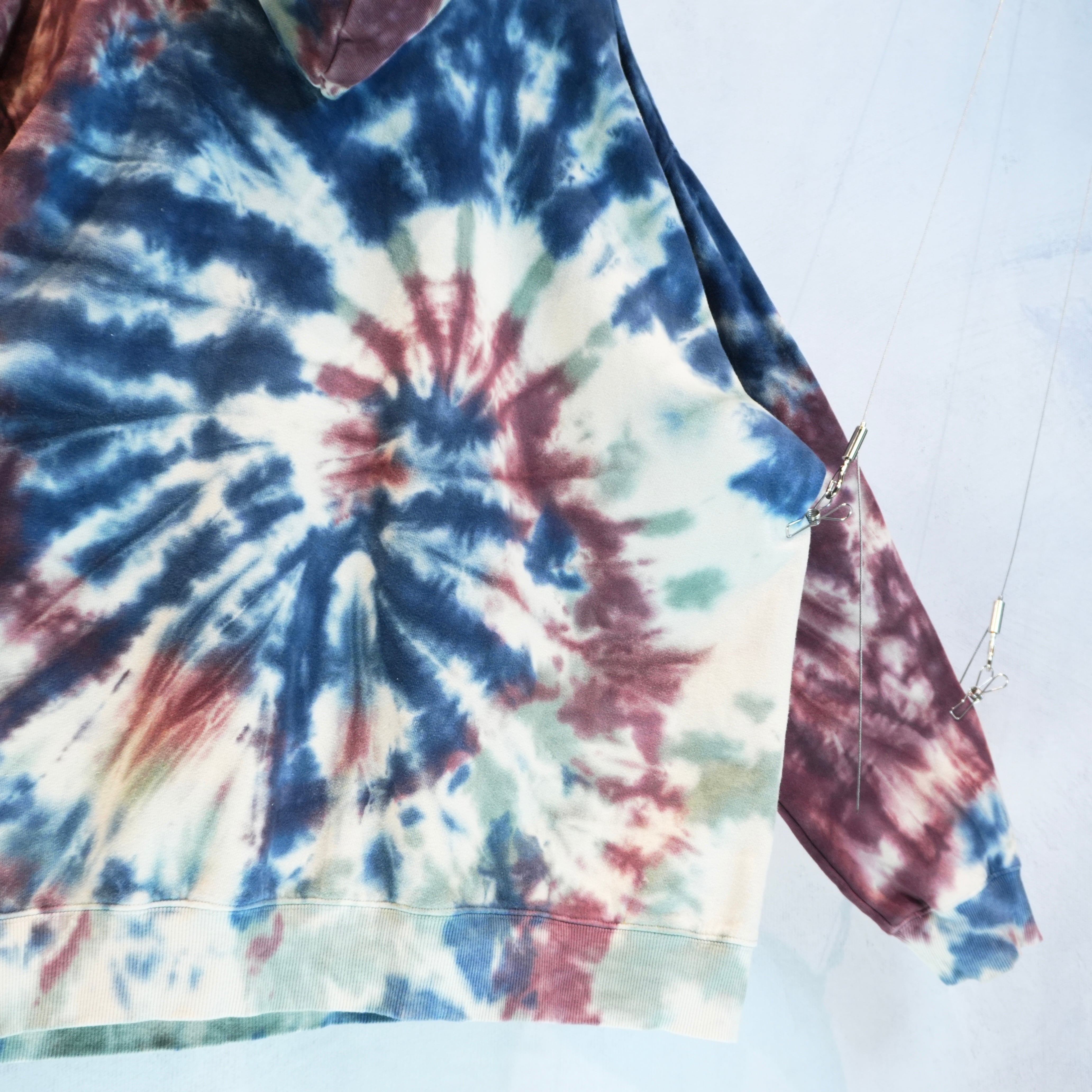 ブルー、ボルドー、グリーンを良い感じに染め上げた絶妙な配色で、1点1点表情が異なるのもタイダイならではの魅力ポイント.