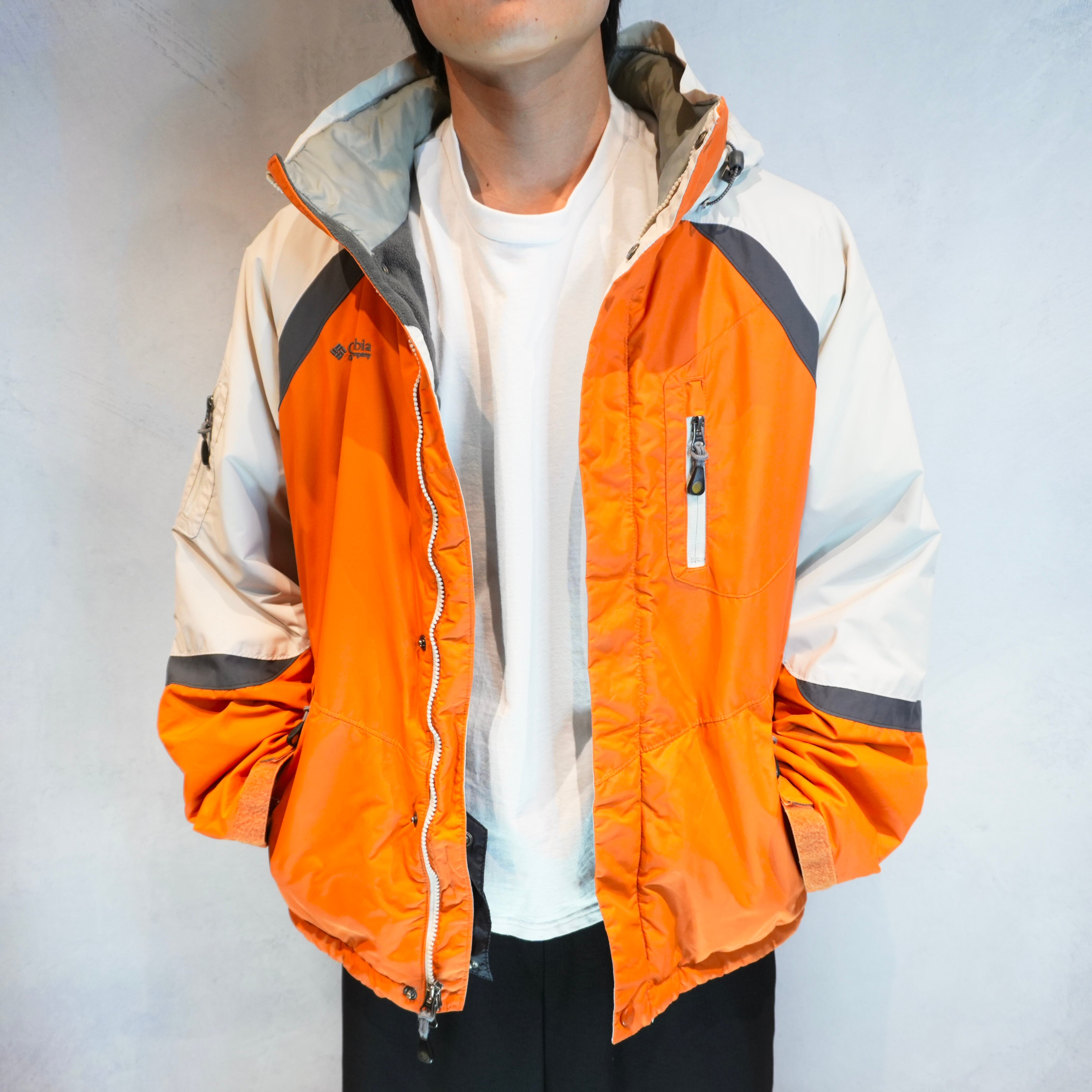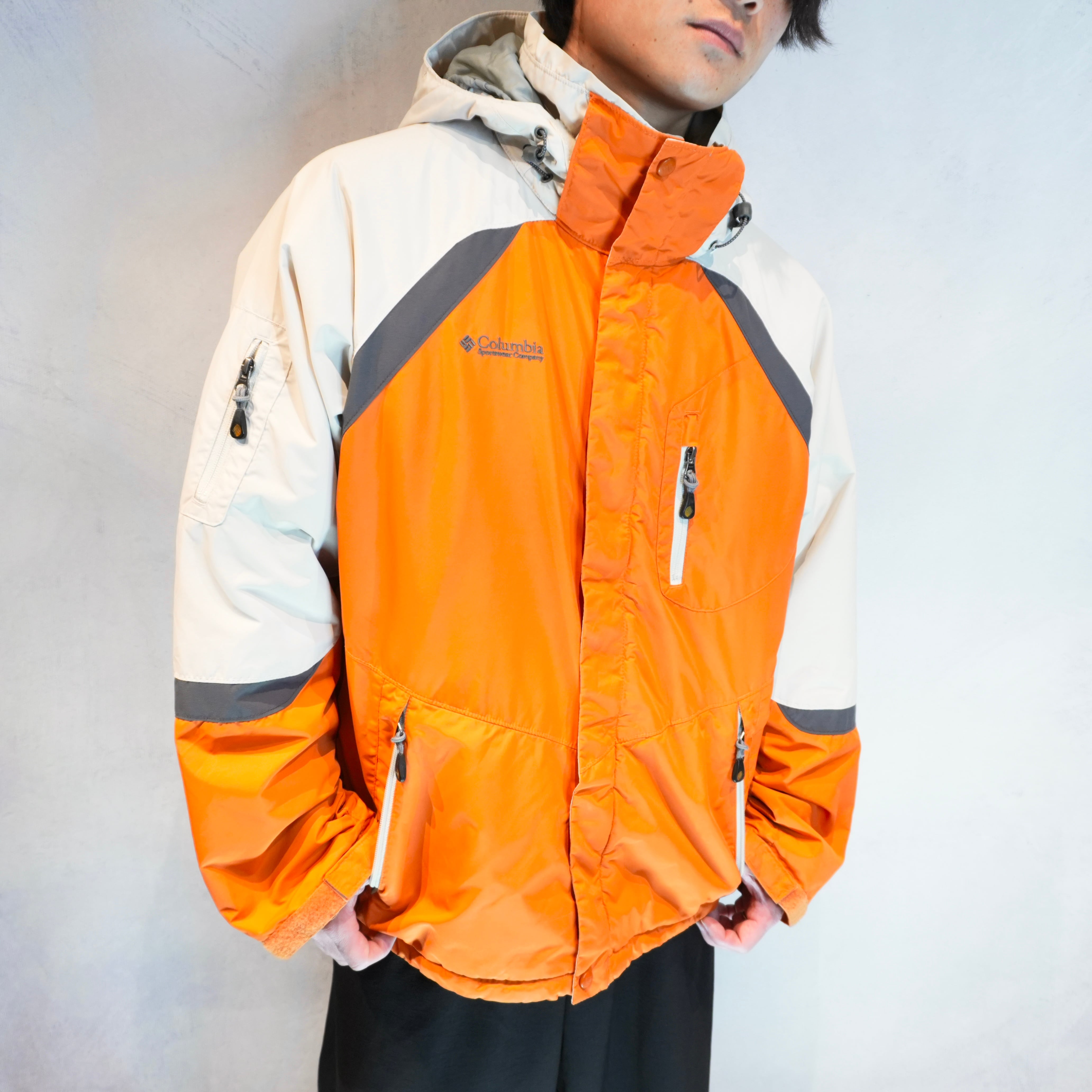 " 'Colmbia' good silhouette bi-color switching orange mountain jacket "