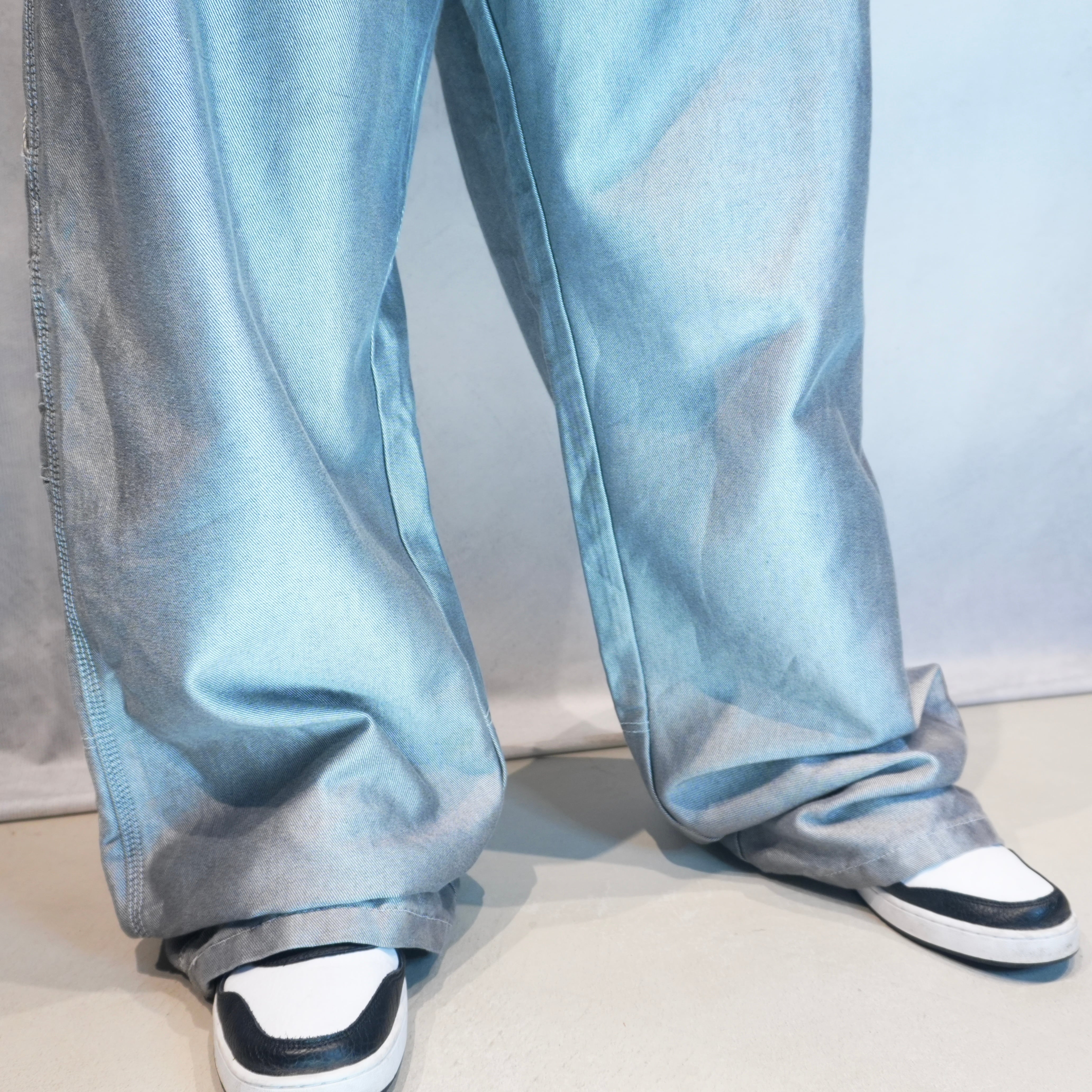 " wide & loose silhouette silver color painter pants "