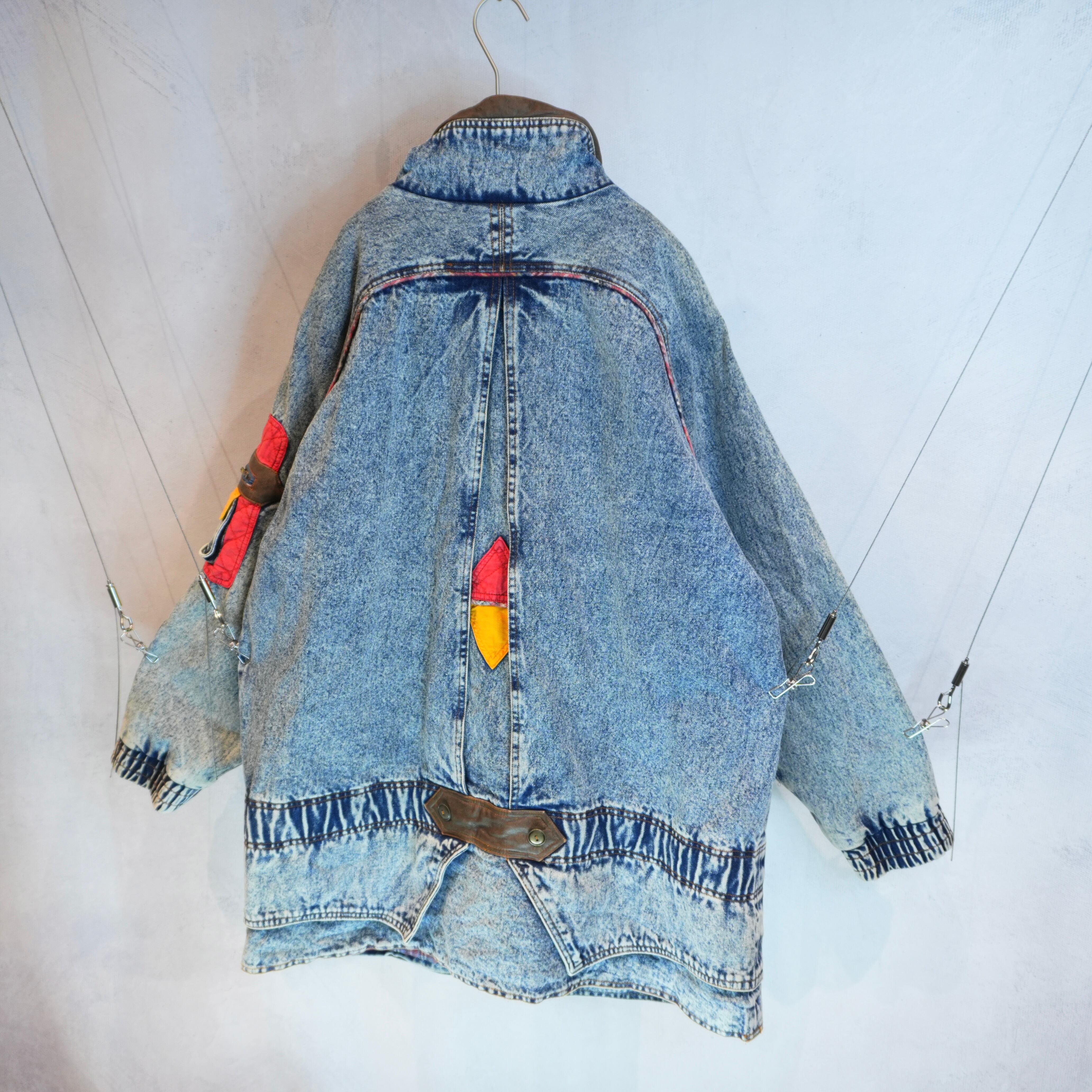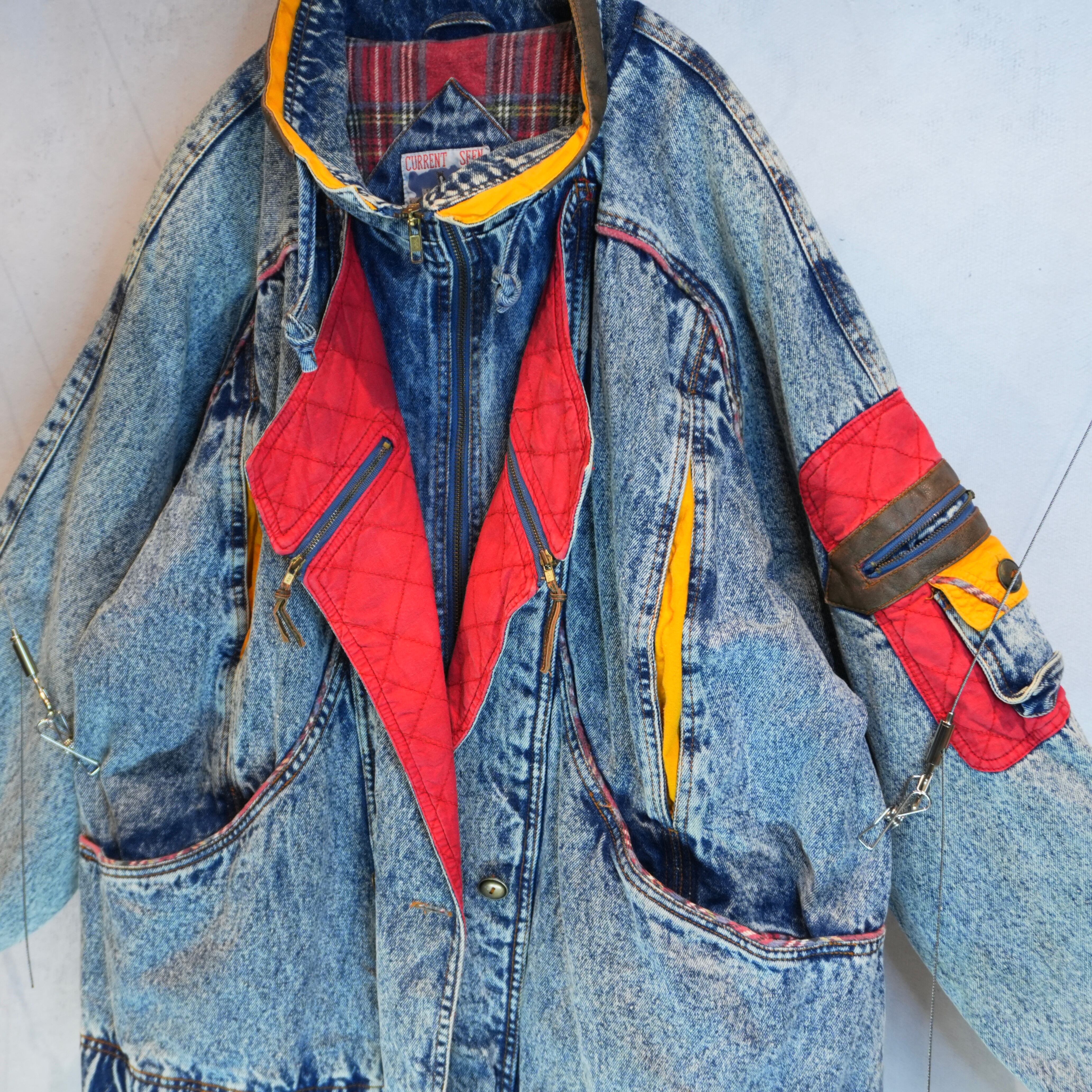 " 90s ' Current Seen ' good silhouette colorful color denim half-coat "