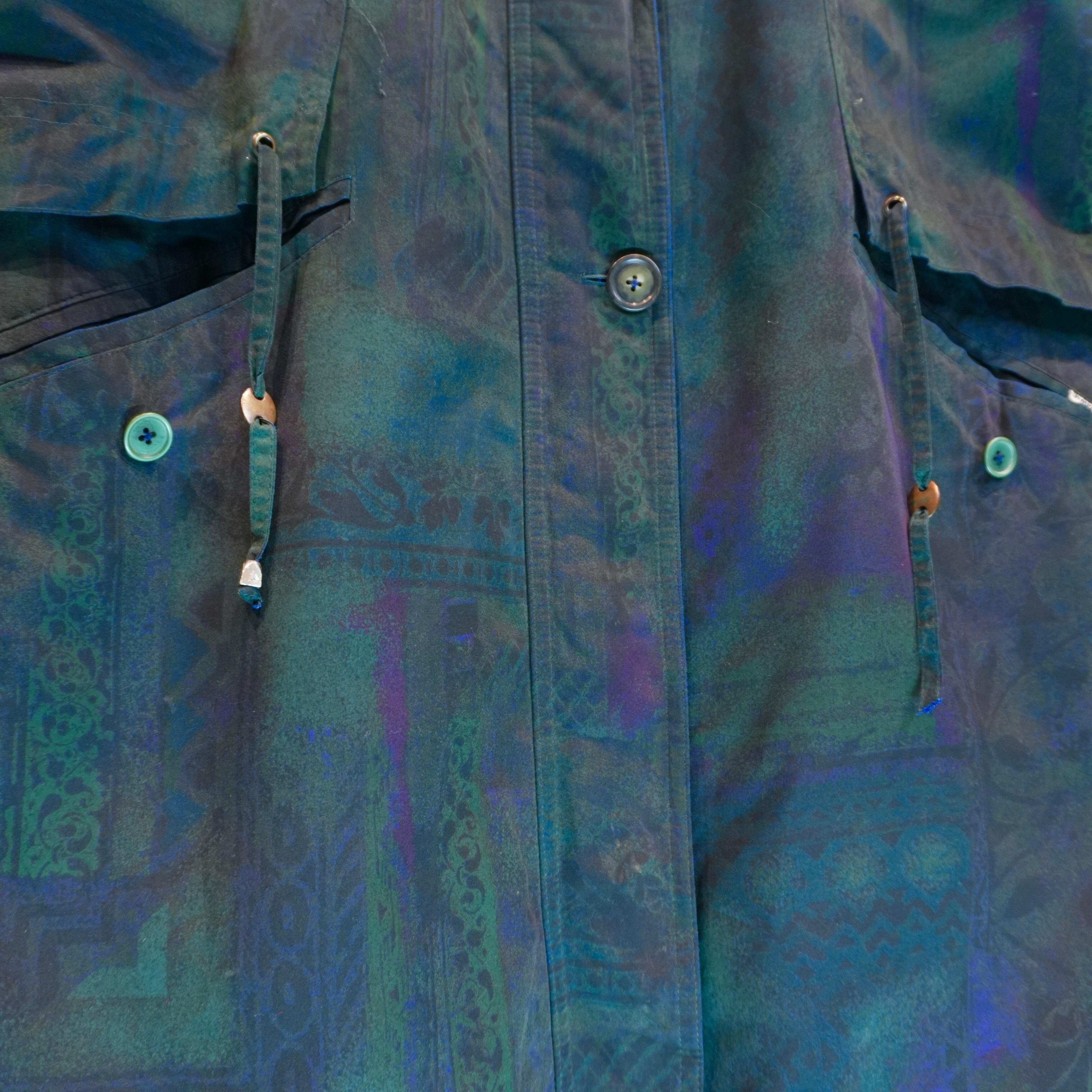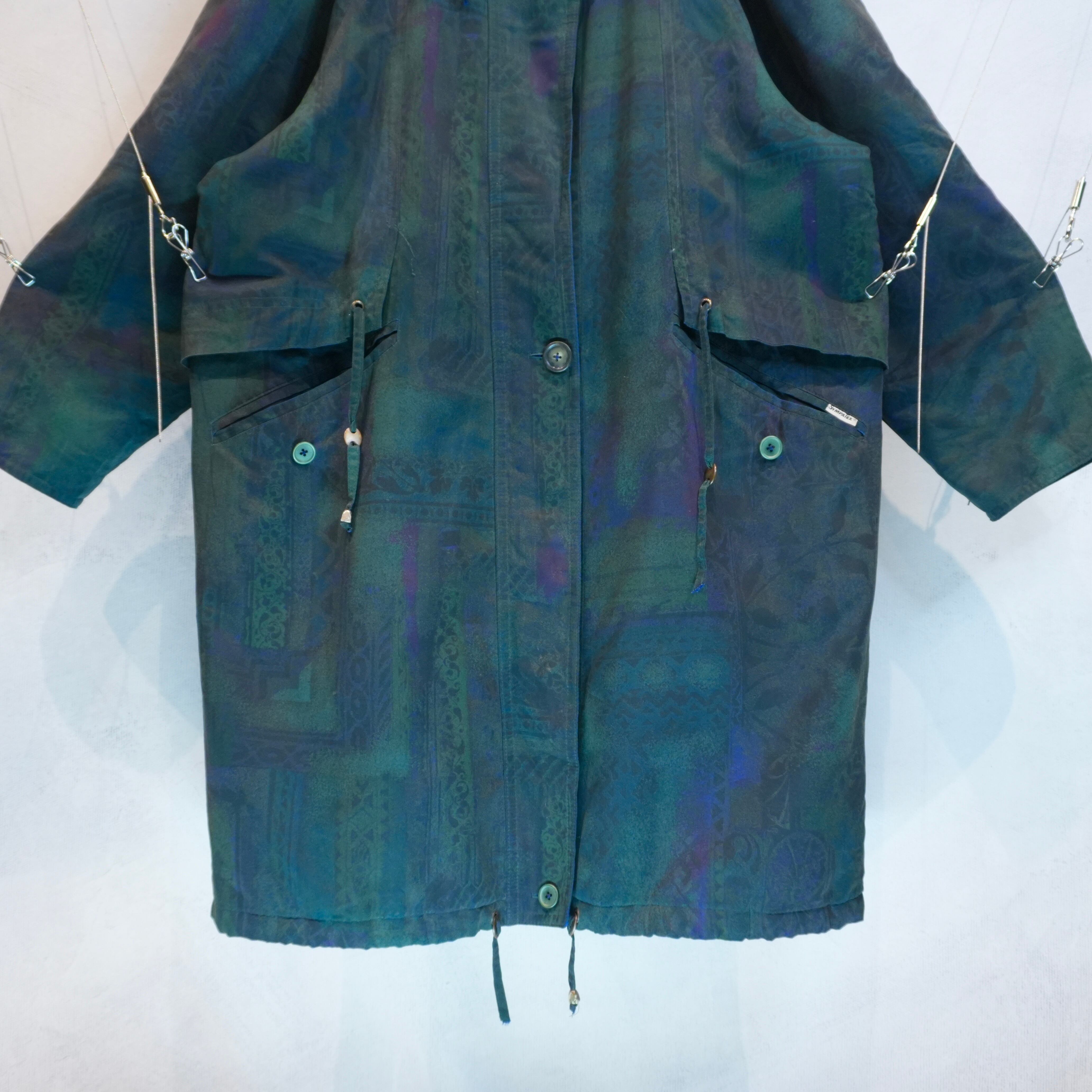 " 'Goldix' moss-green color geometric pattern design long-coat "