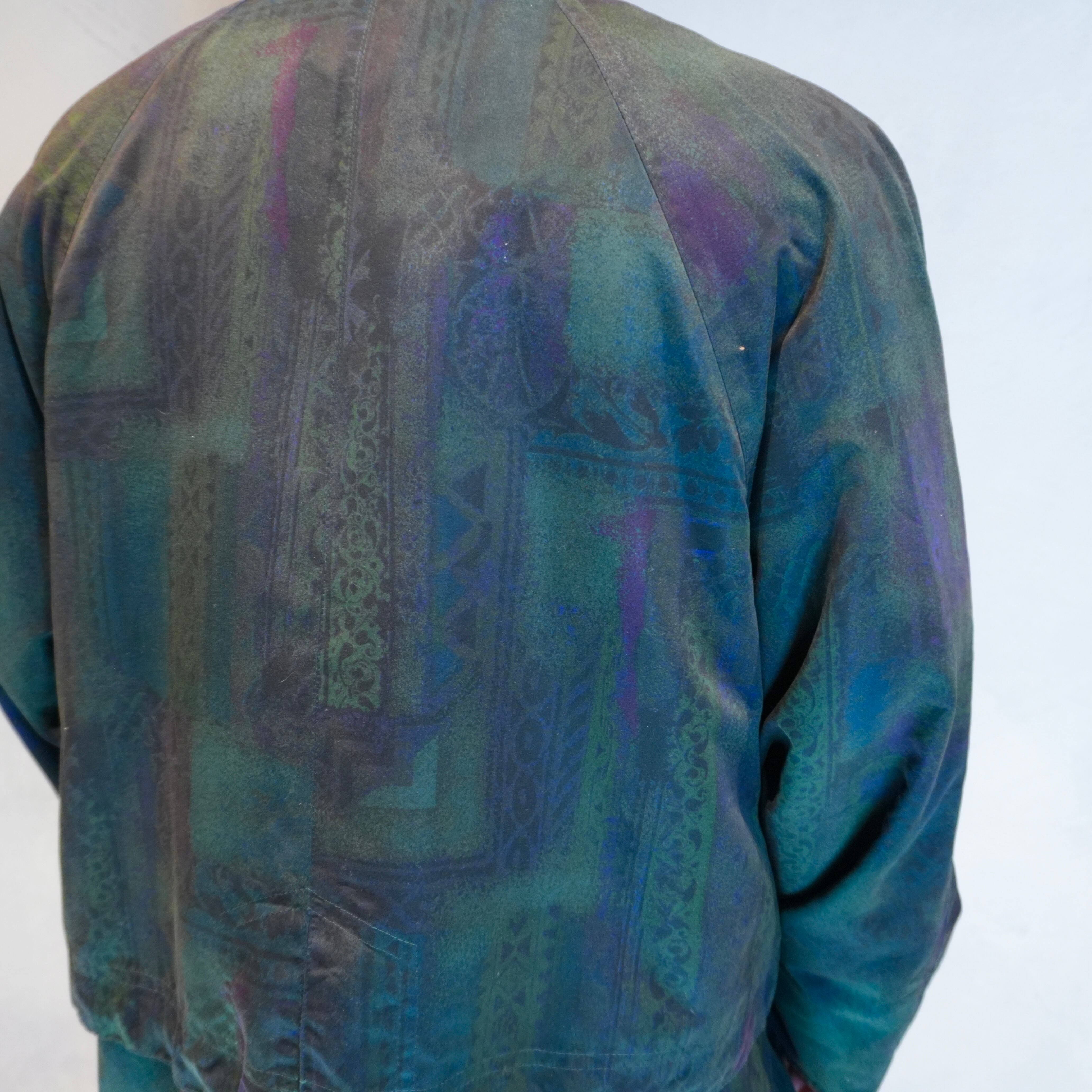深みのあるダークトーンにうっすらと浮かぶ幾何学的な総柄.