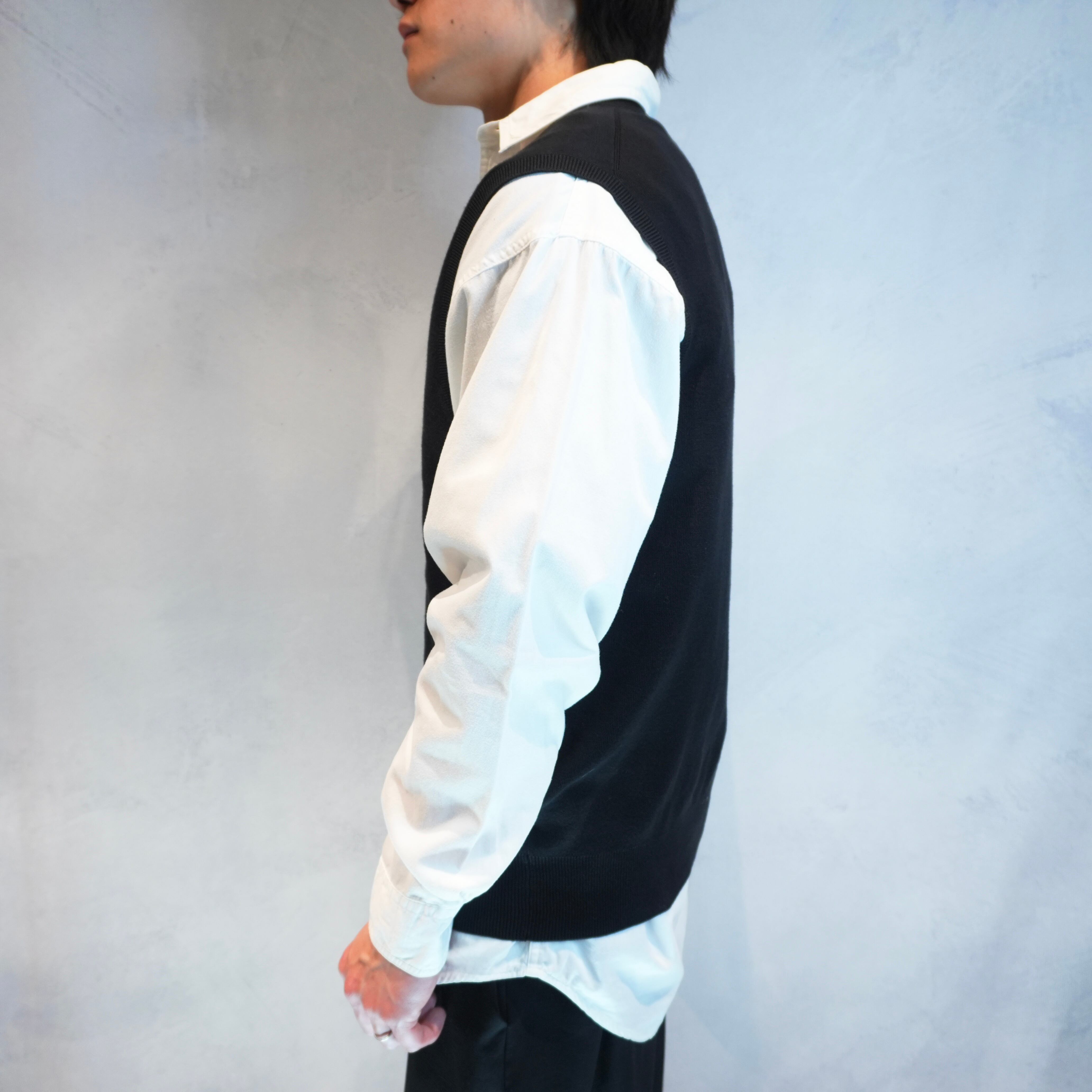 普段あまりベストを着ない方でも取り入れやすい一着.