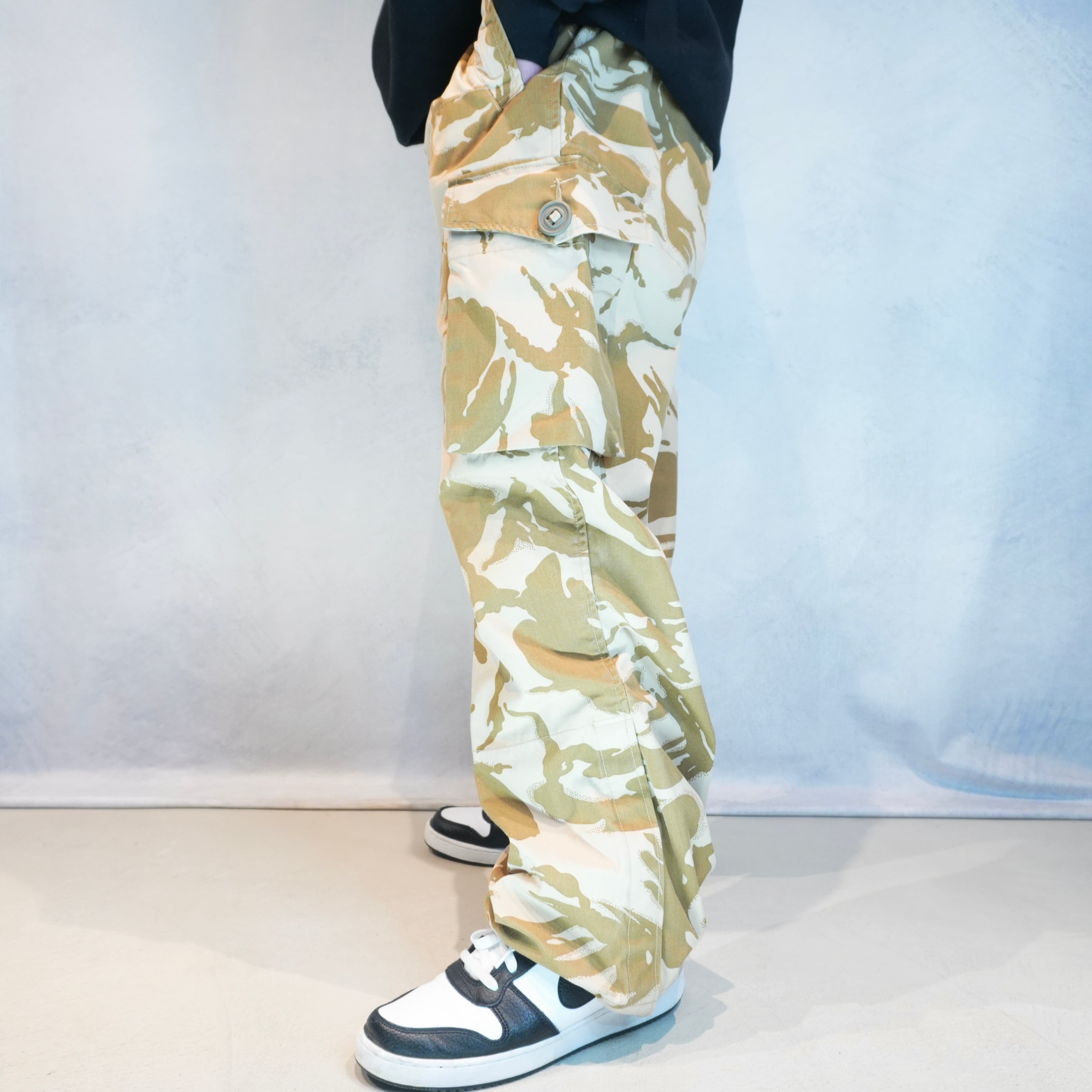 イギリス軍の実物放出品として知られる、デザートDPMカモ柄のコンバットパンツ.