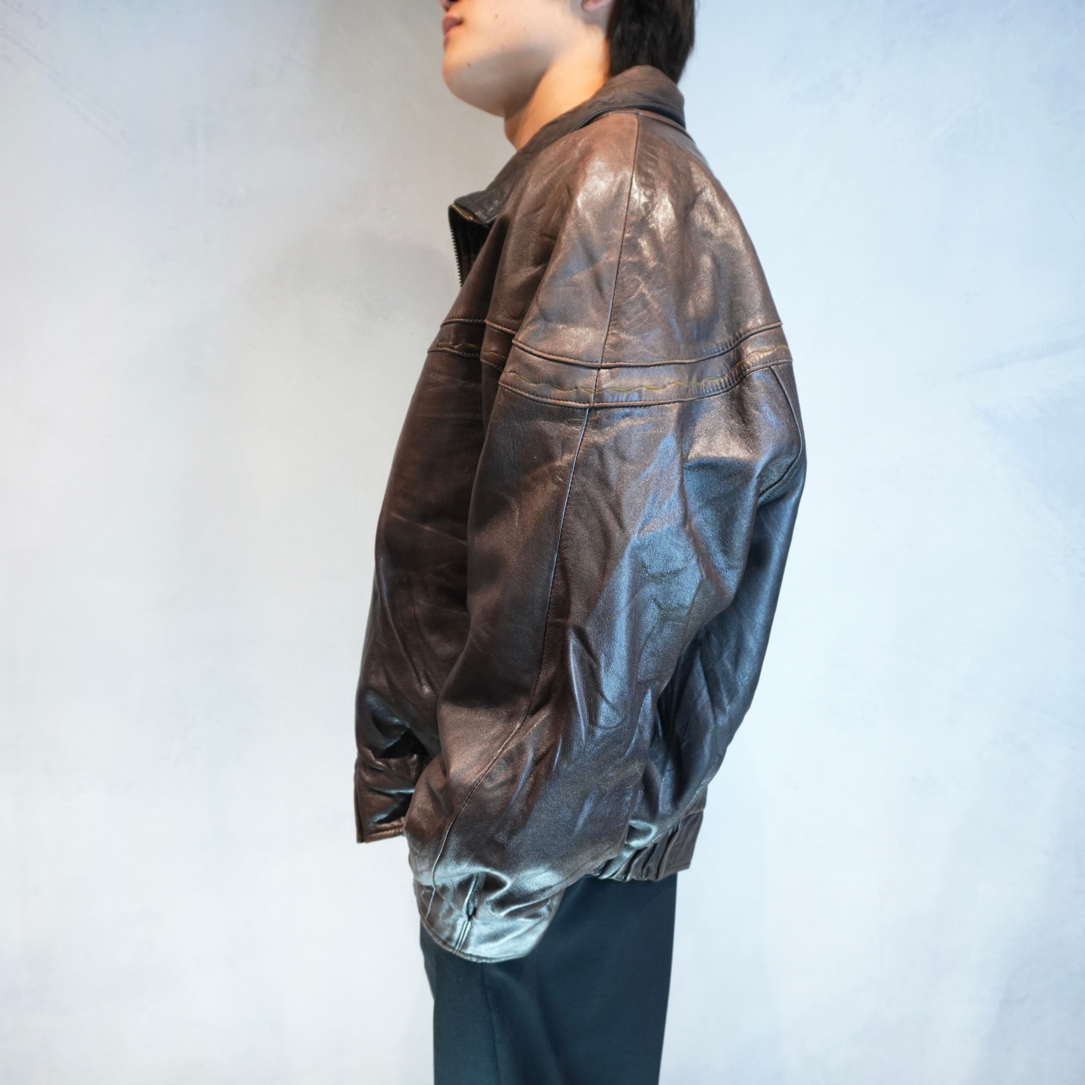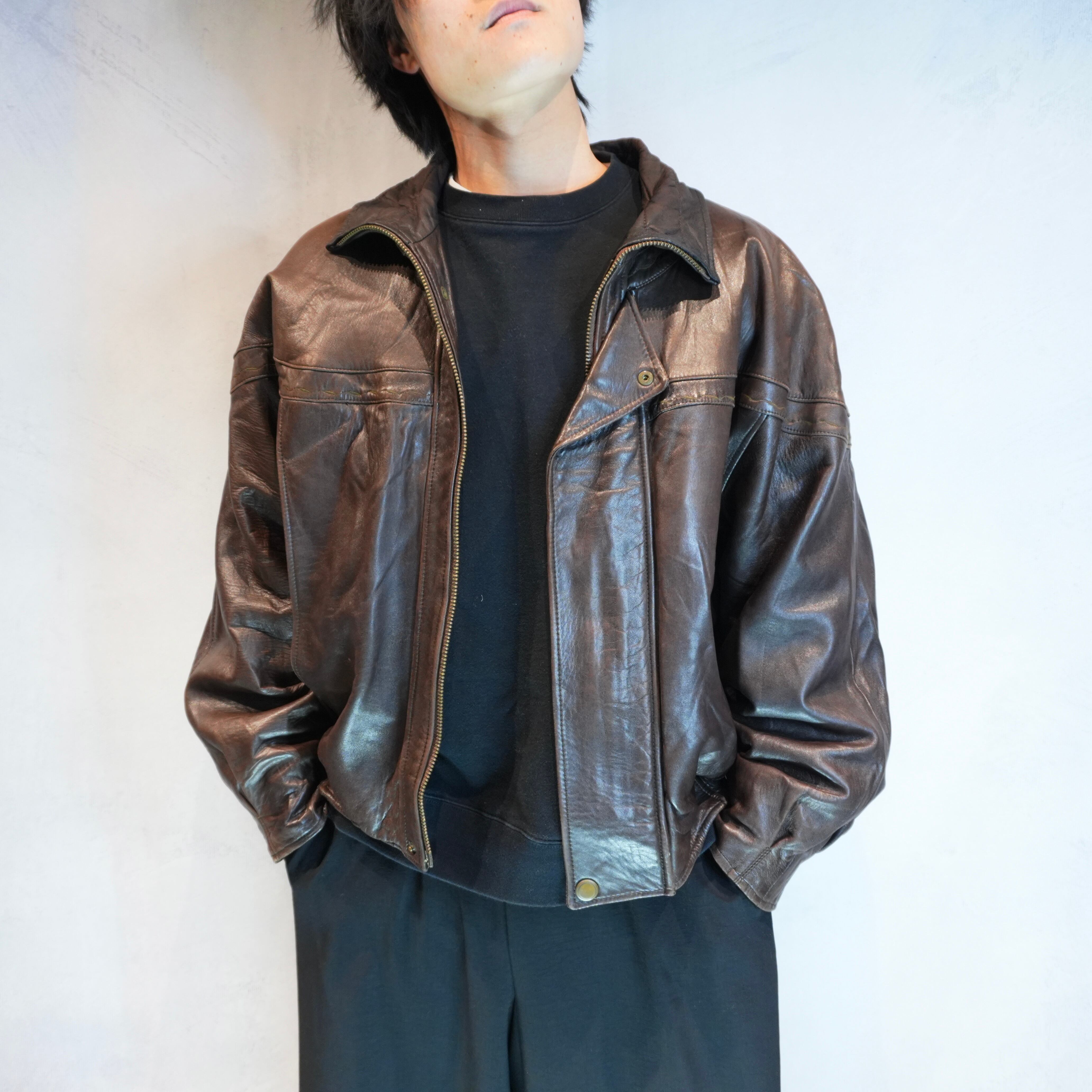 " good silhouette 'back yoke switching' design brown color leather blouson "